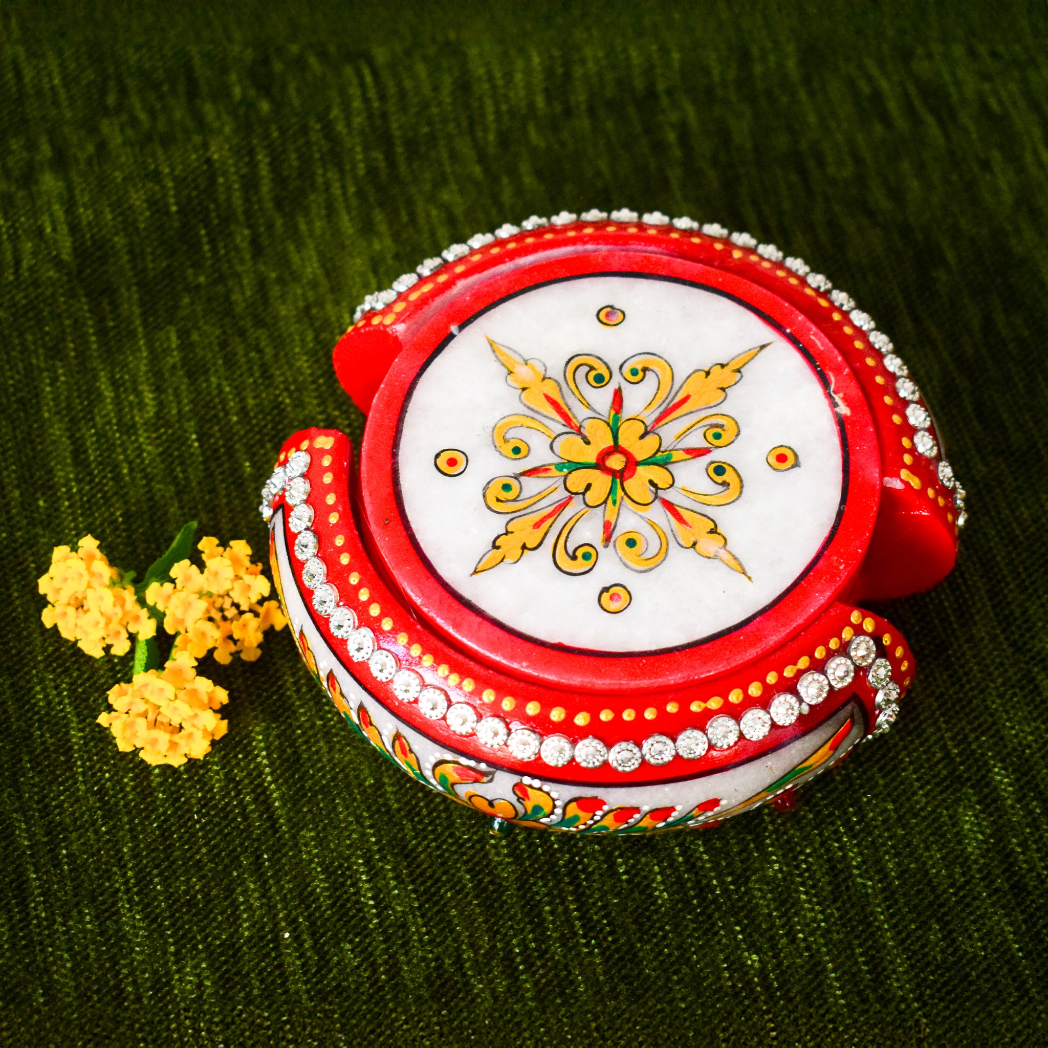 Kishangarh Marble Tea Coasters with Beautiful Floral & Red Accents
