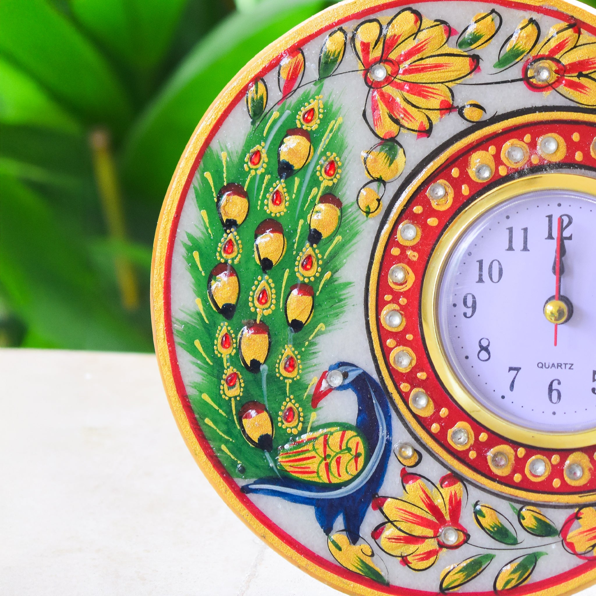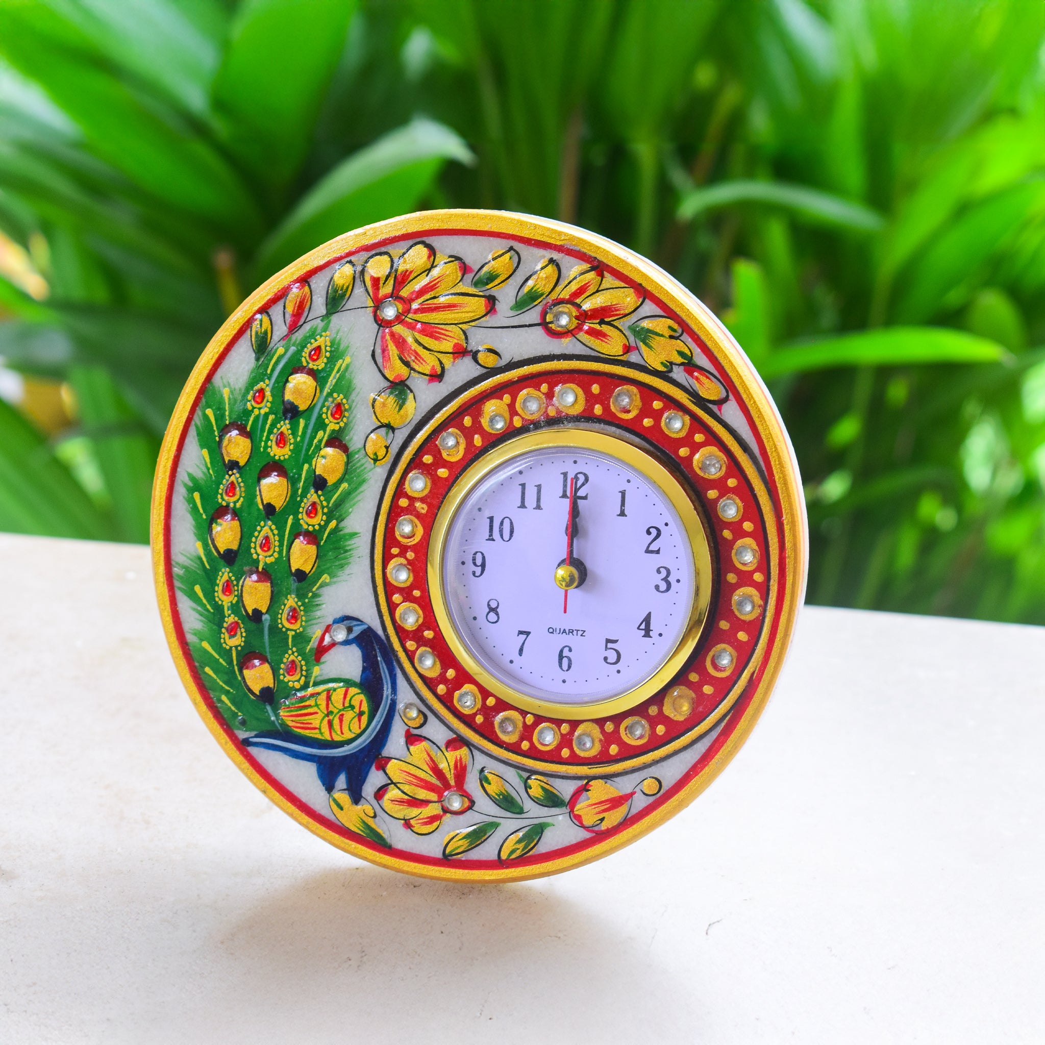 Kishangarh Marble Clock with Hand-Painted Peacock Motifs