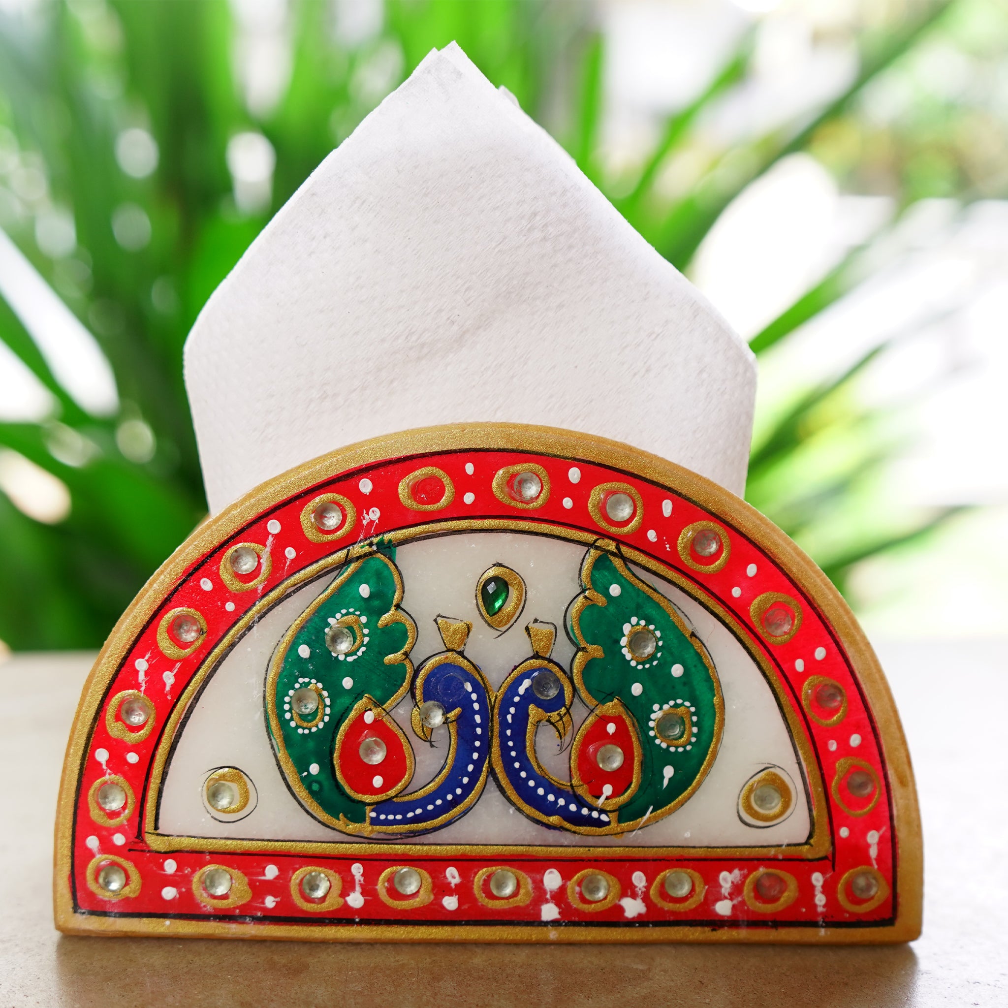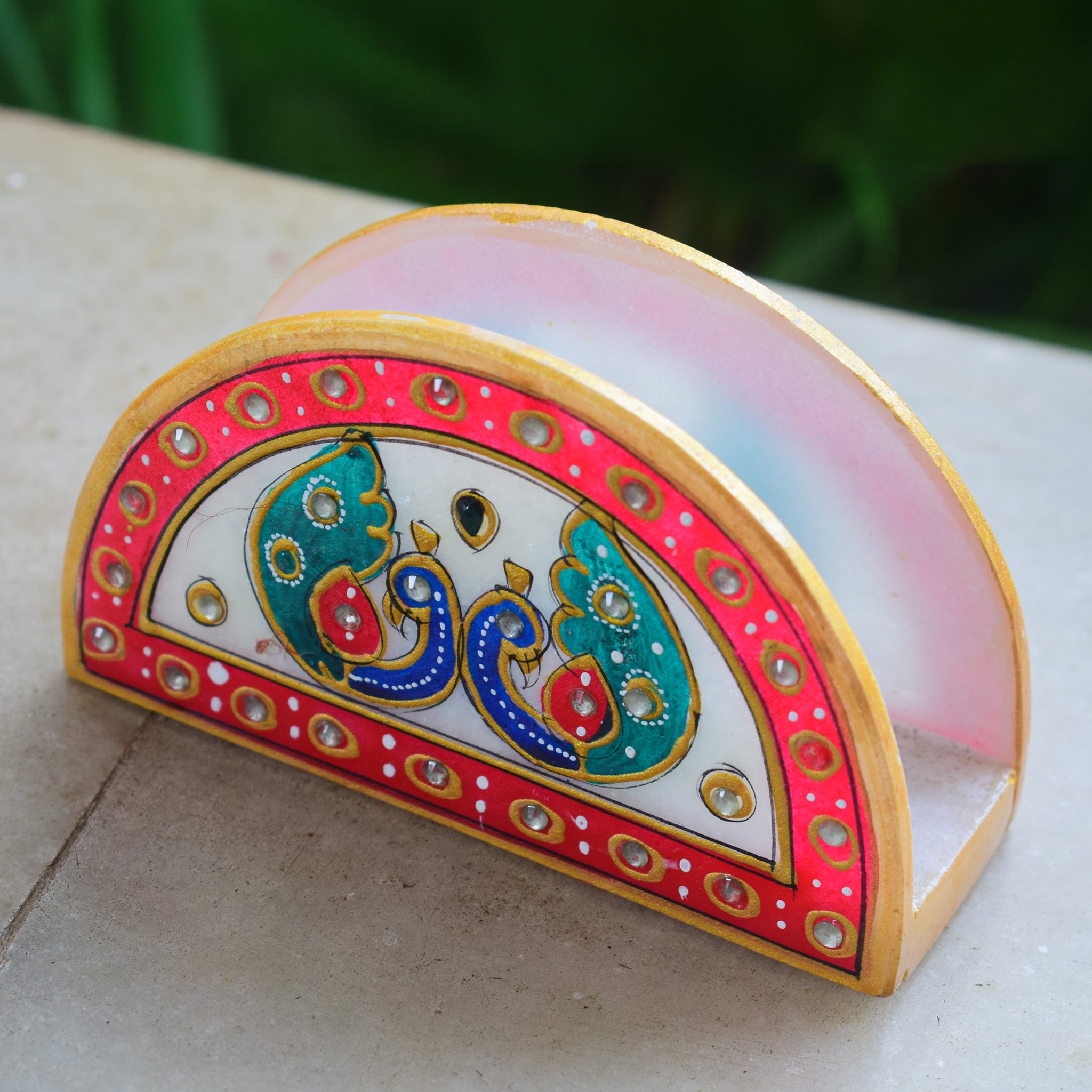 Kishangarh Marble Napkin Holder with Meenakari Peacocks
