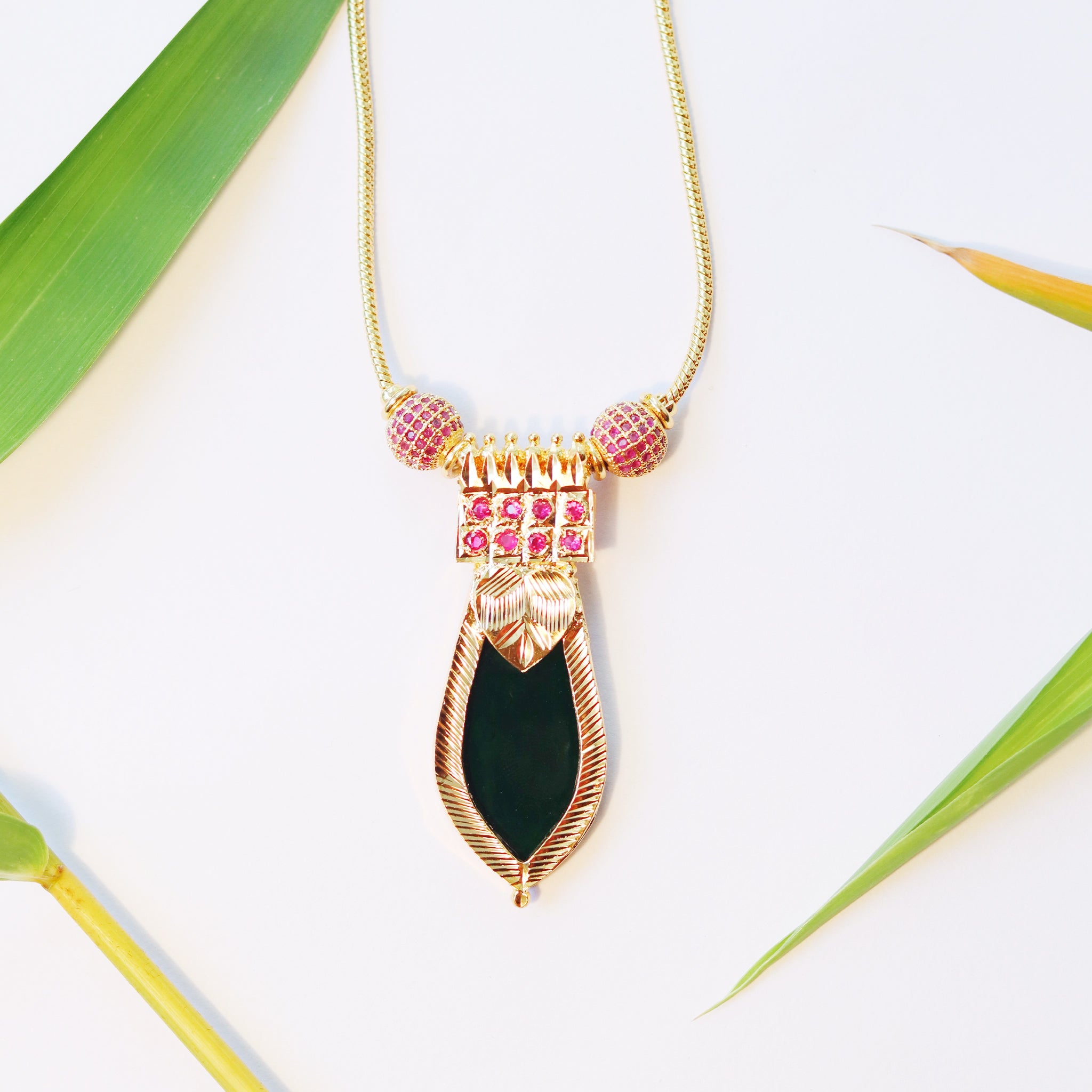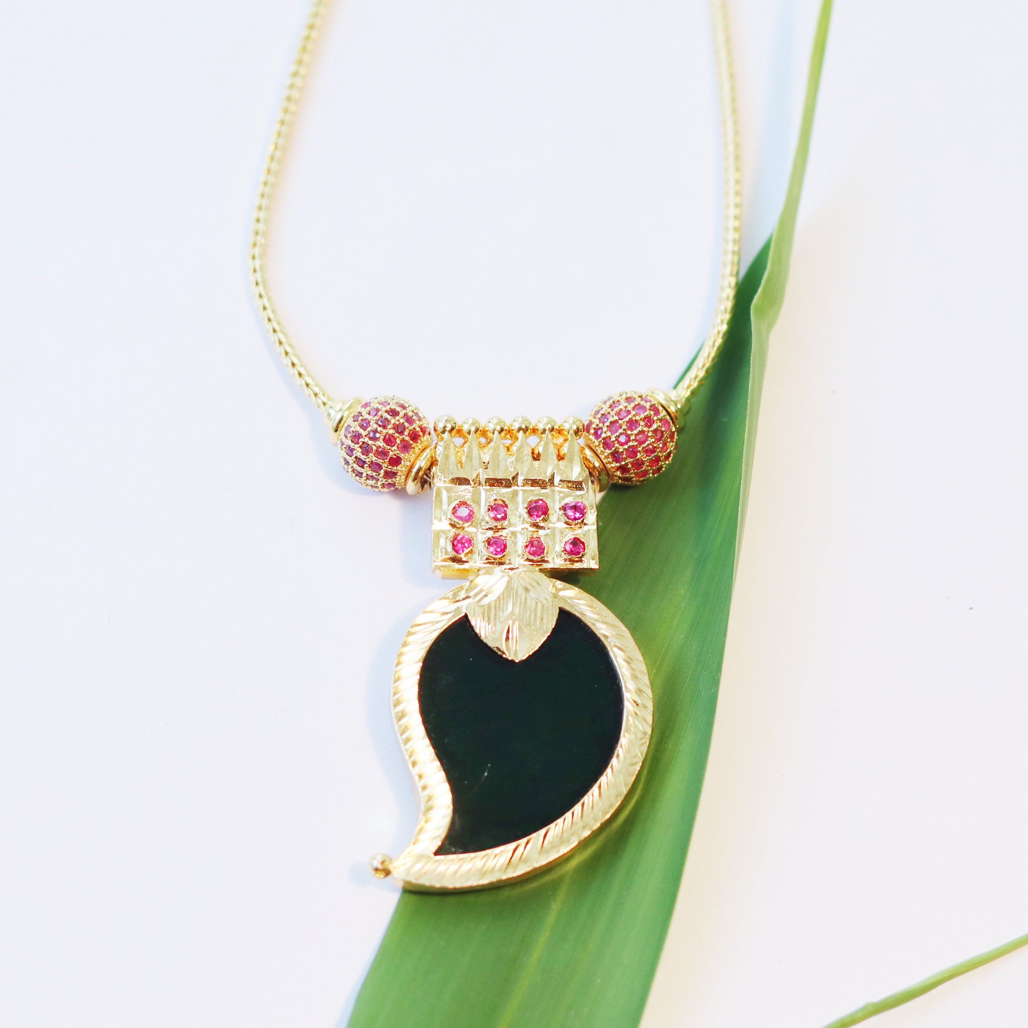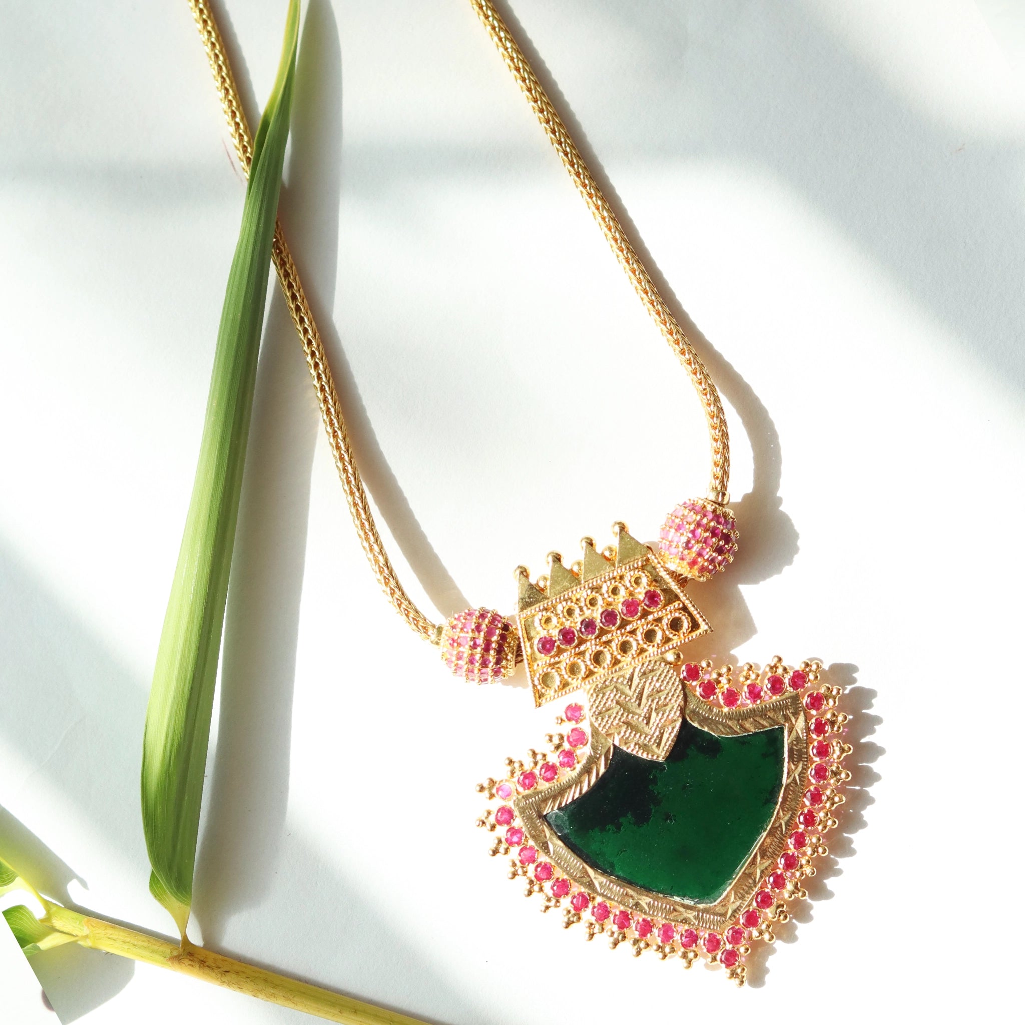 Kerala Palakka Necklace with Stone Studded Leaf shaped Pendant-Made to Order