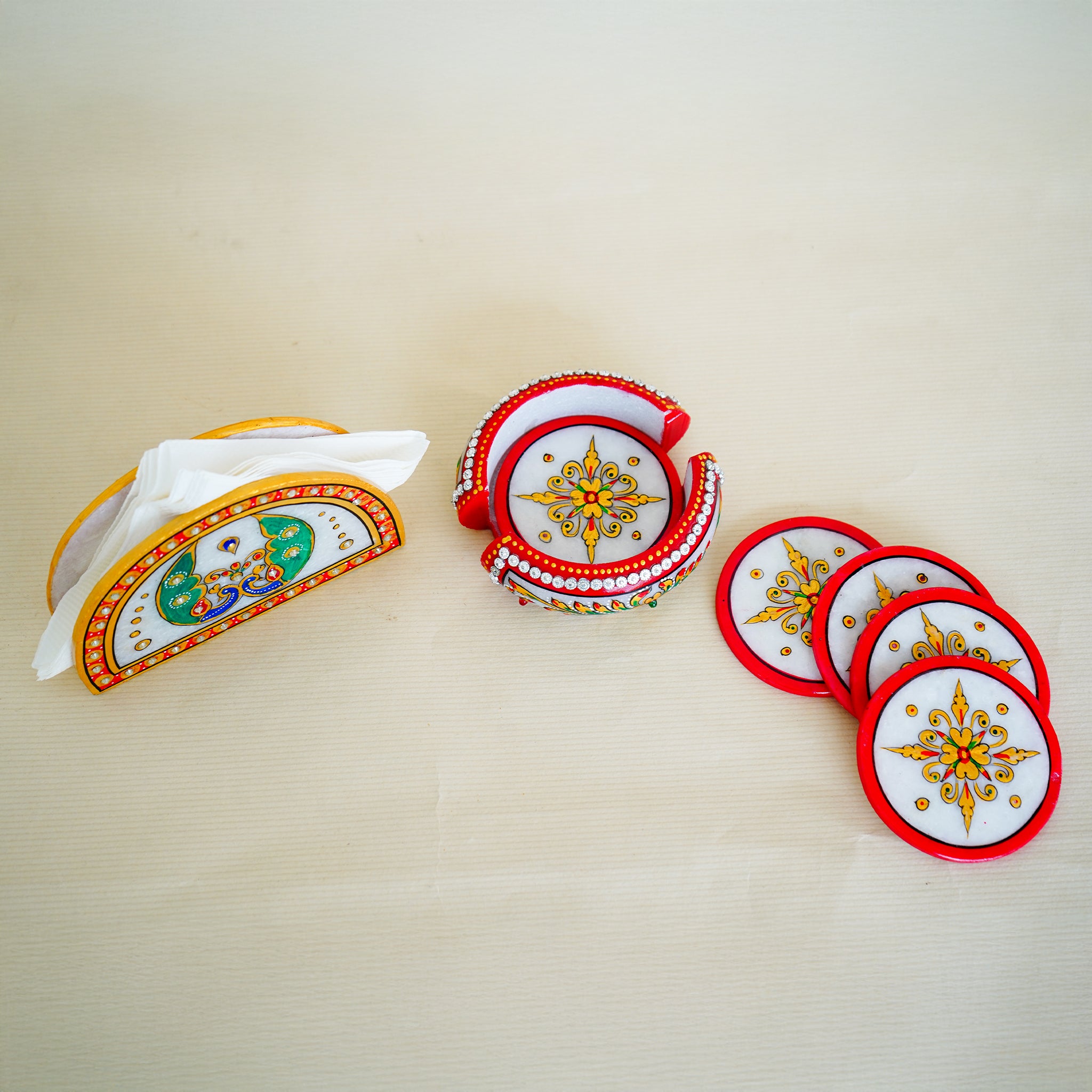 Kishangarh Marble Combo Pack Napkin Holder and Tea Coasters