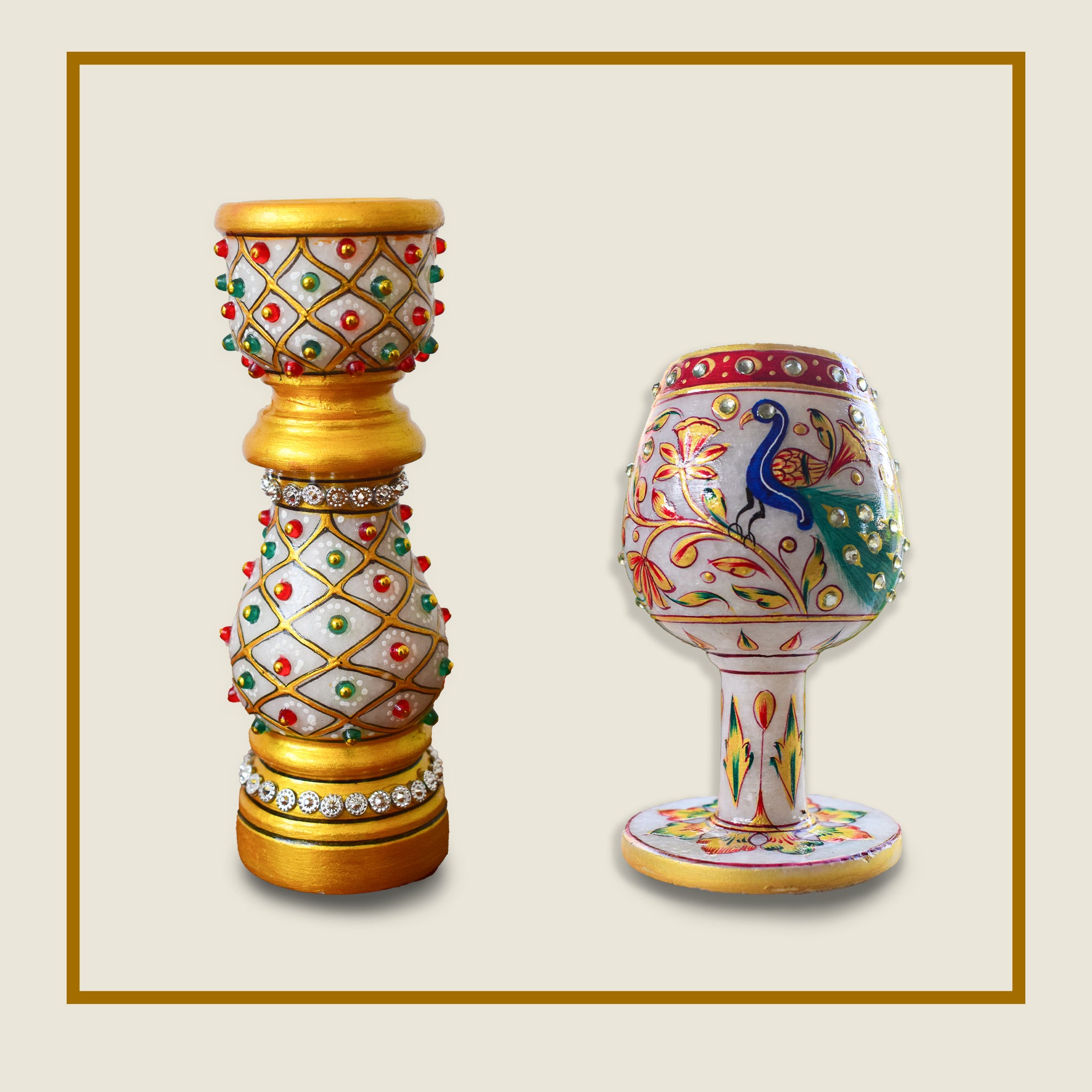 Kishangarh Marble Perfect Dinning Combo Candle Stand and Wine Glass