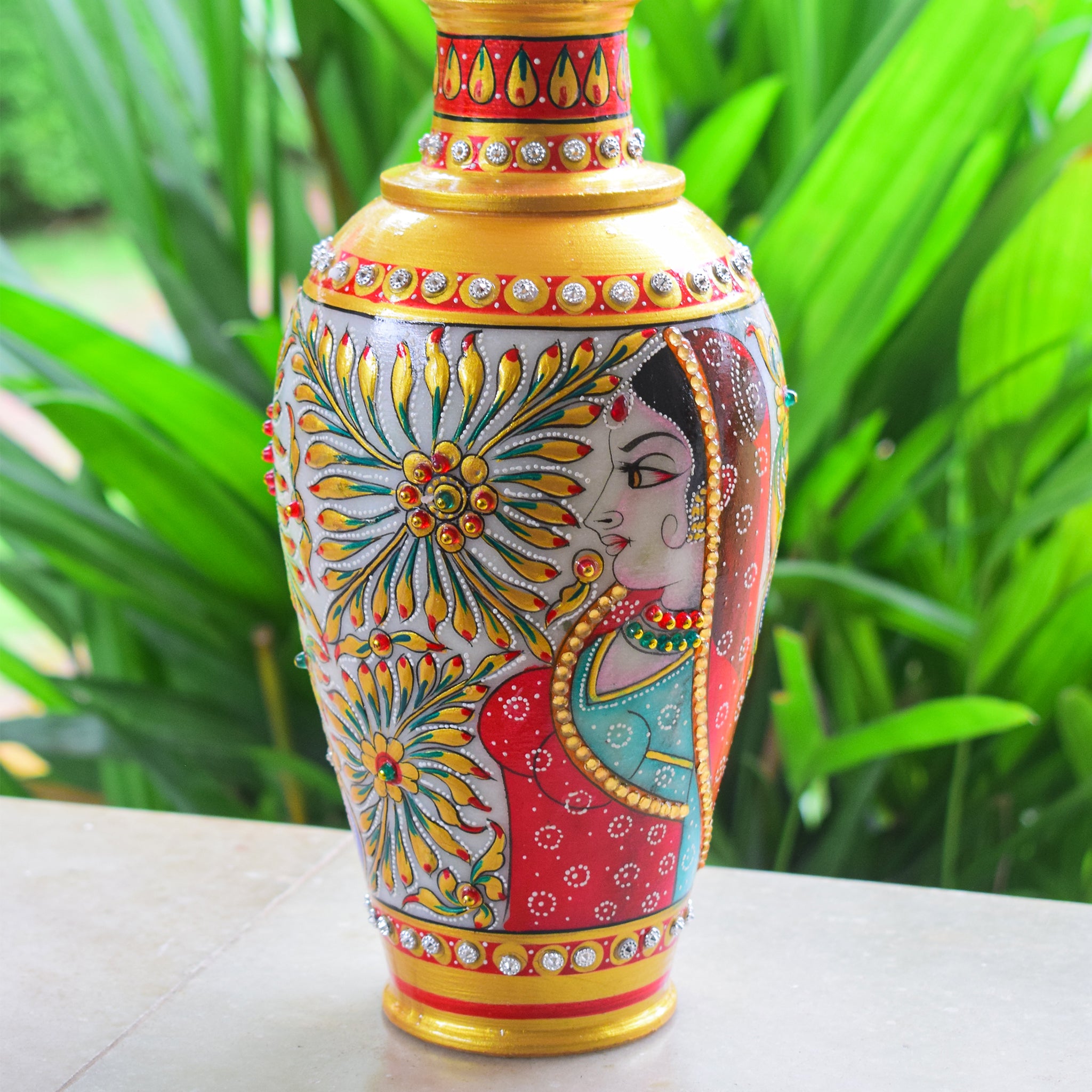 Kishangarh Marble Vase with Bani Tani Traditional Women Motifs