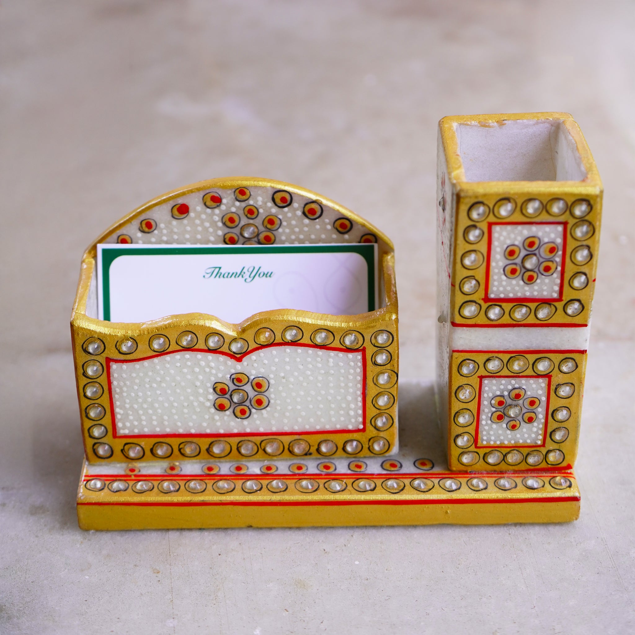 Kishangarh Marble Card Holder with Pen Stand