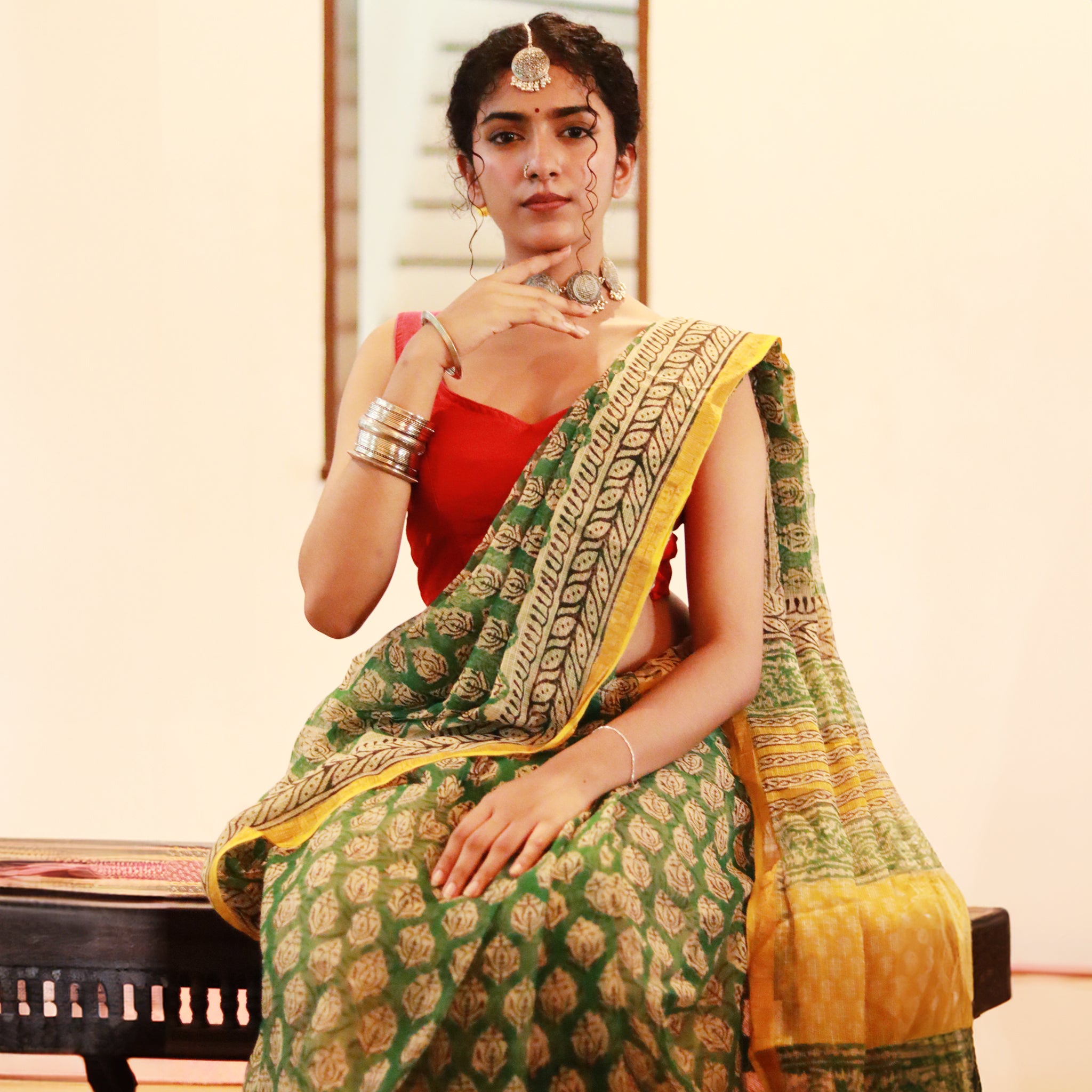 Kotadoria Saree: Block Print - Green