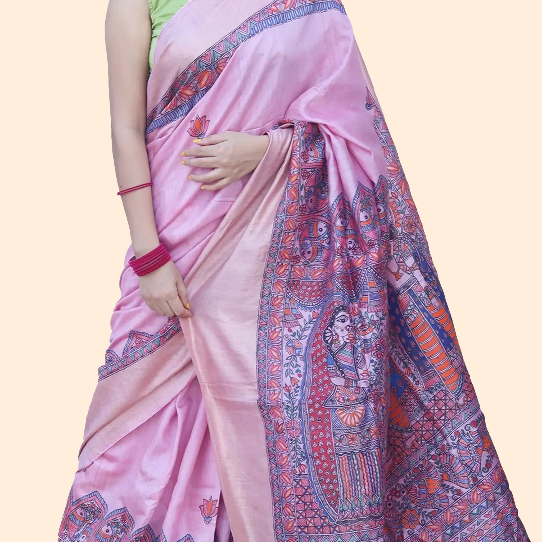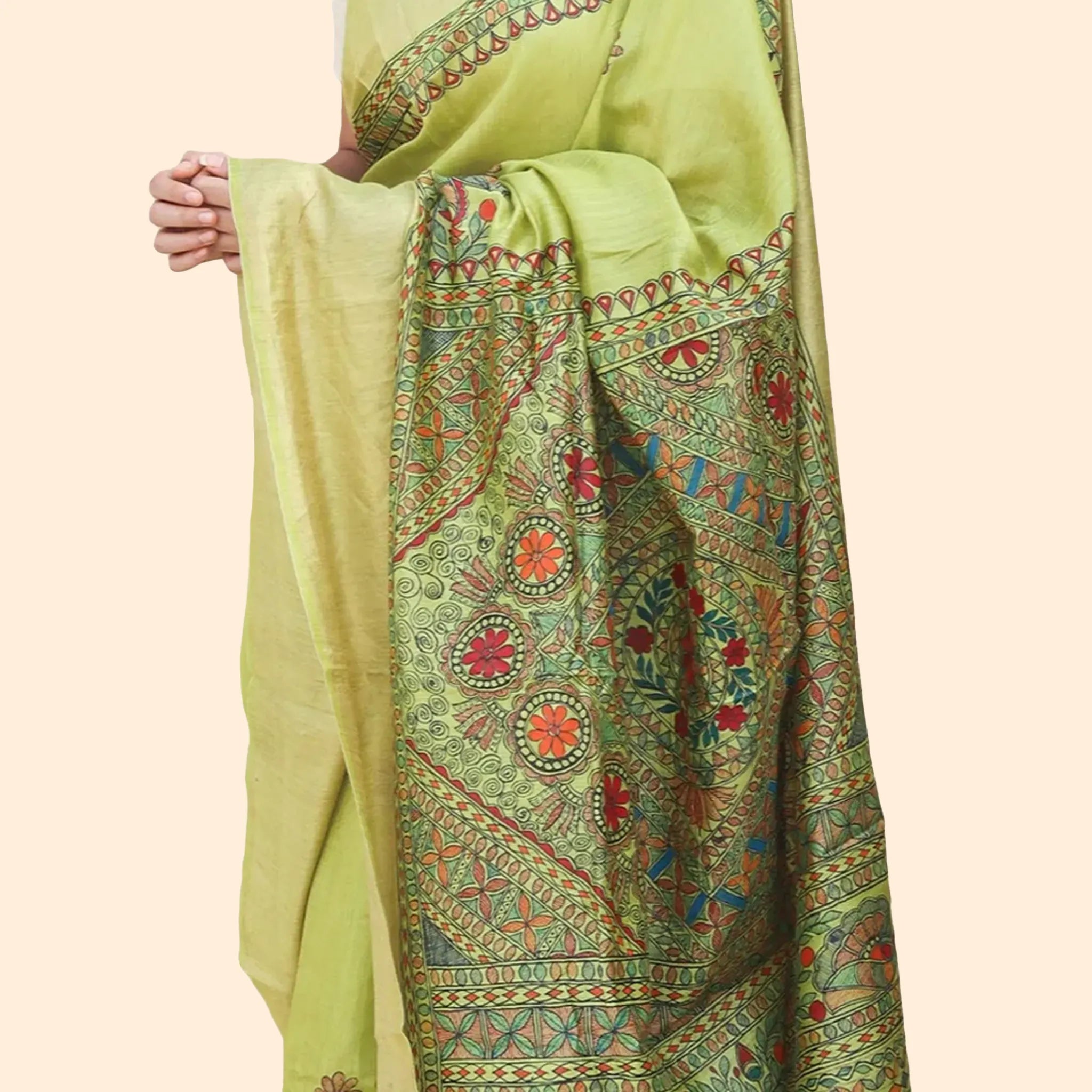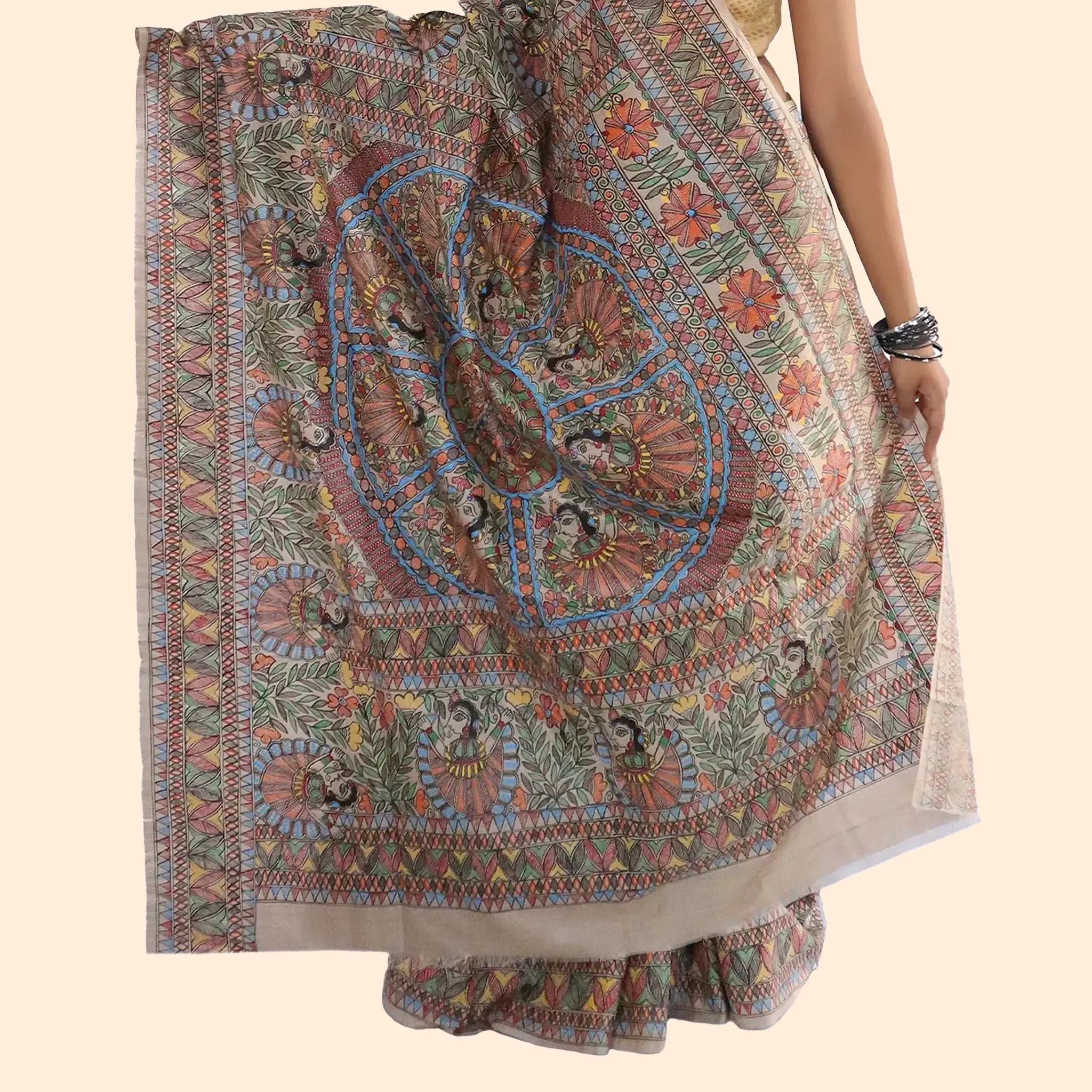 Madhubani Beige Pure Desi Tussar Saree Is A Stunning Blend Of Traditional Art-Made to Order