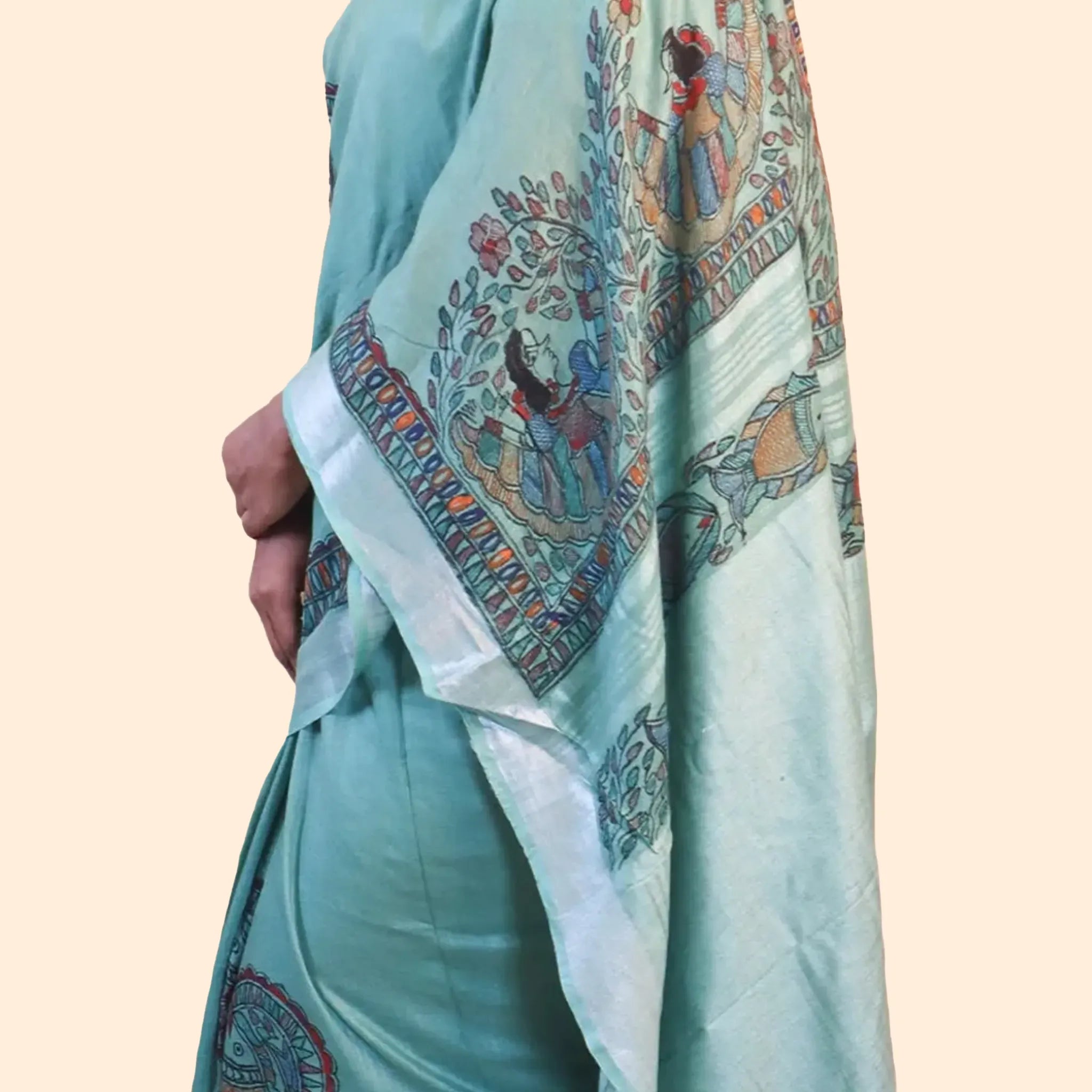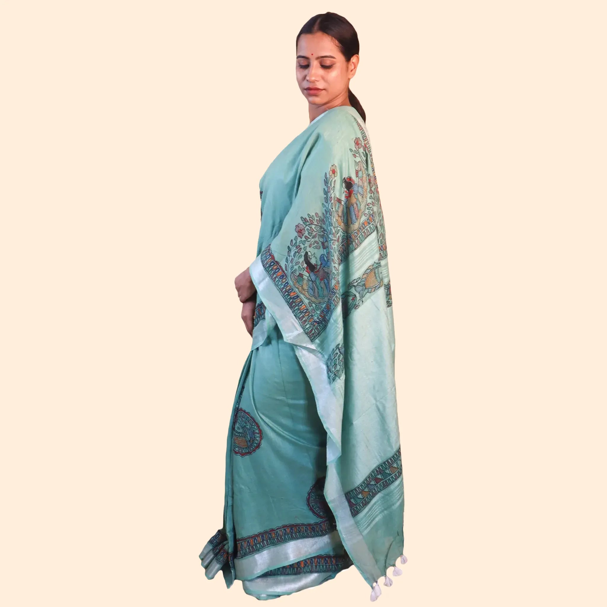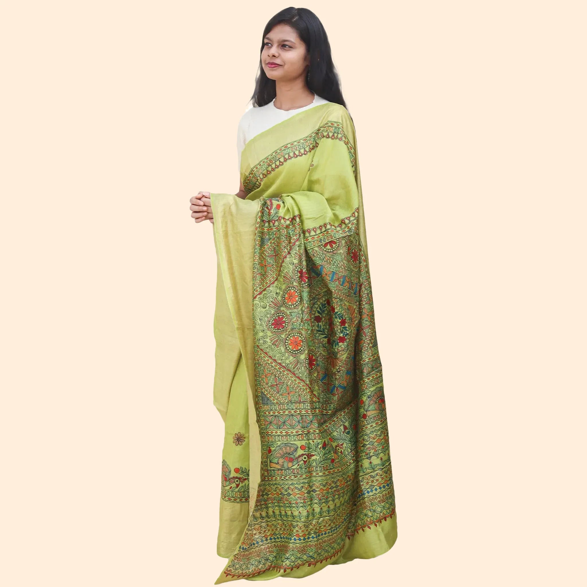 Madhubani Beige Pure Desi Tussar Saree Is A Stunning Blend Of Traditional Art-Made to Order
