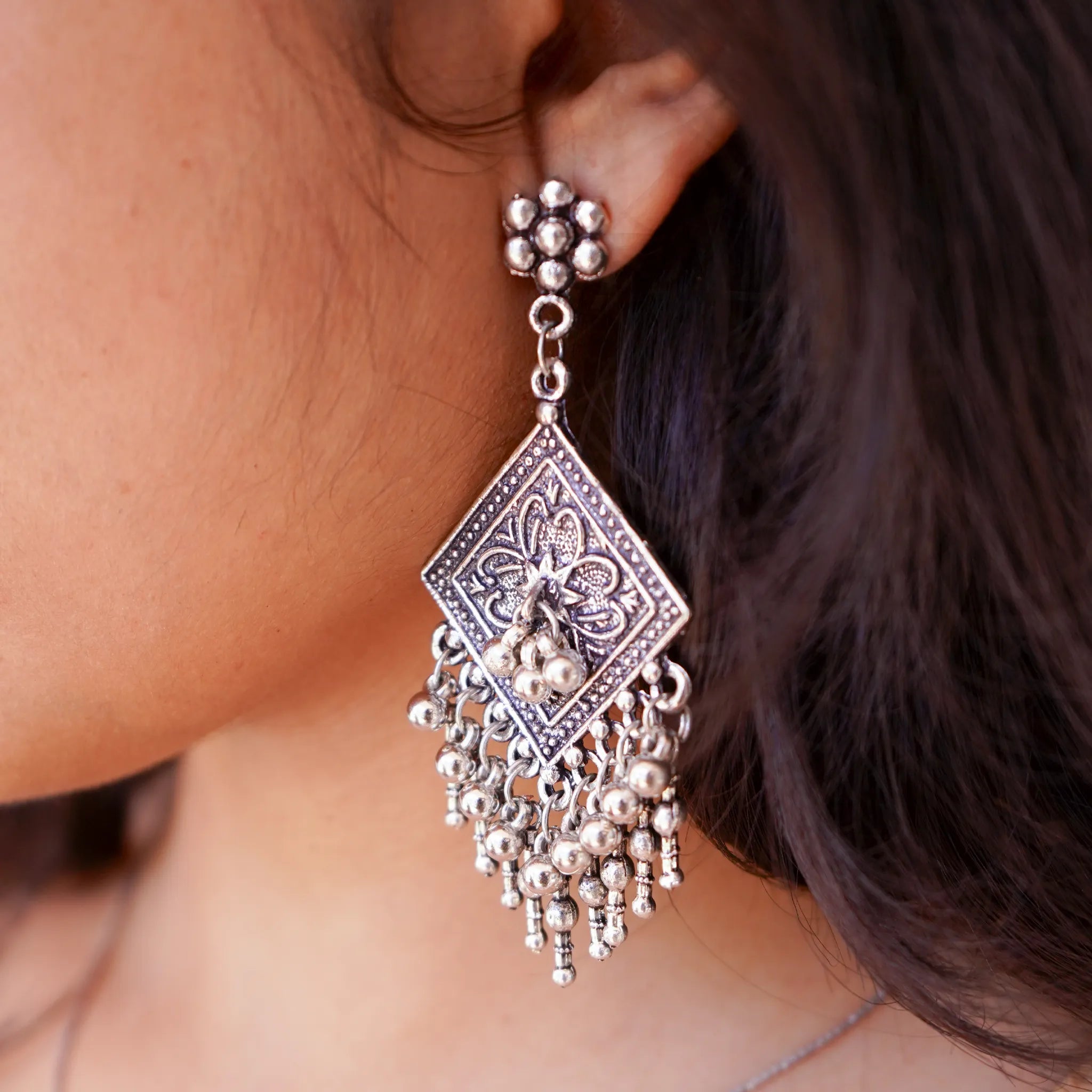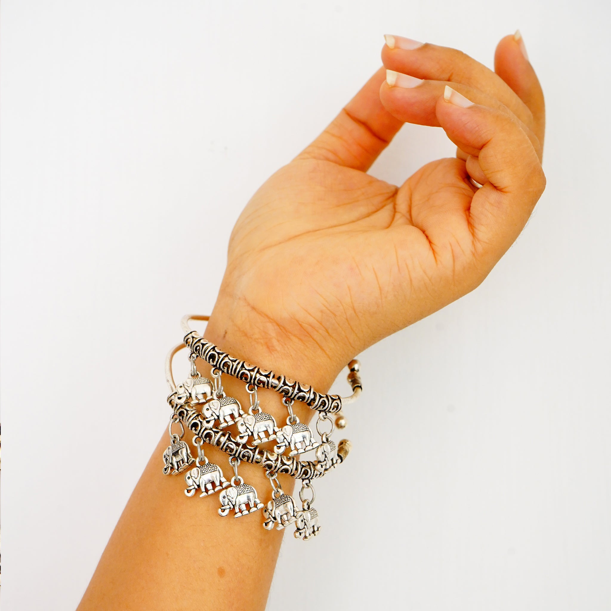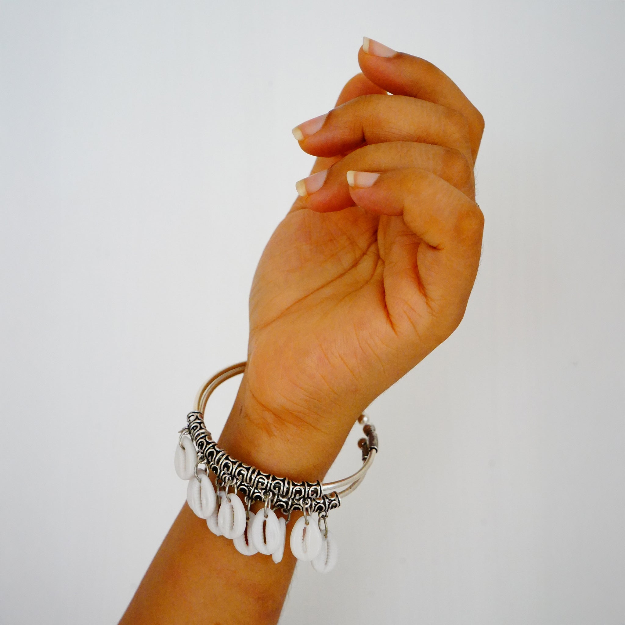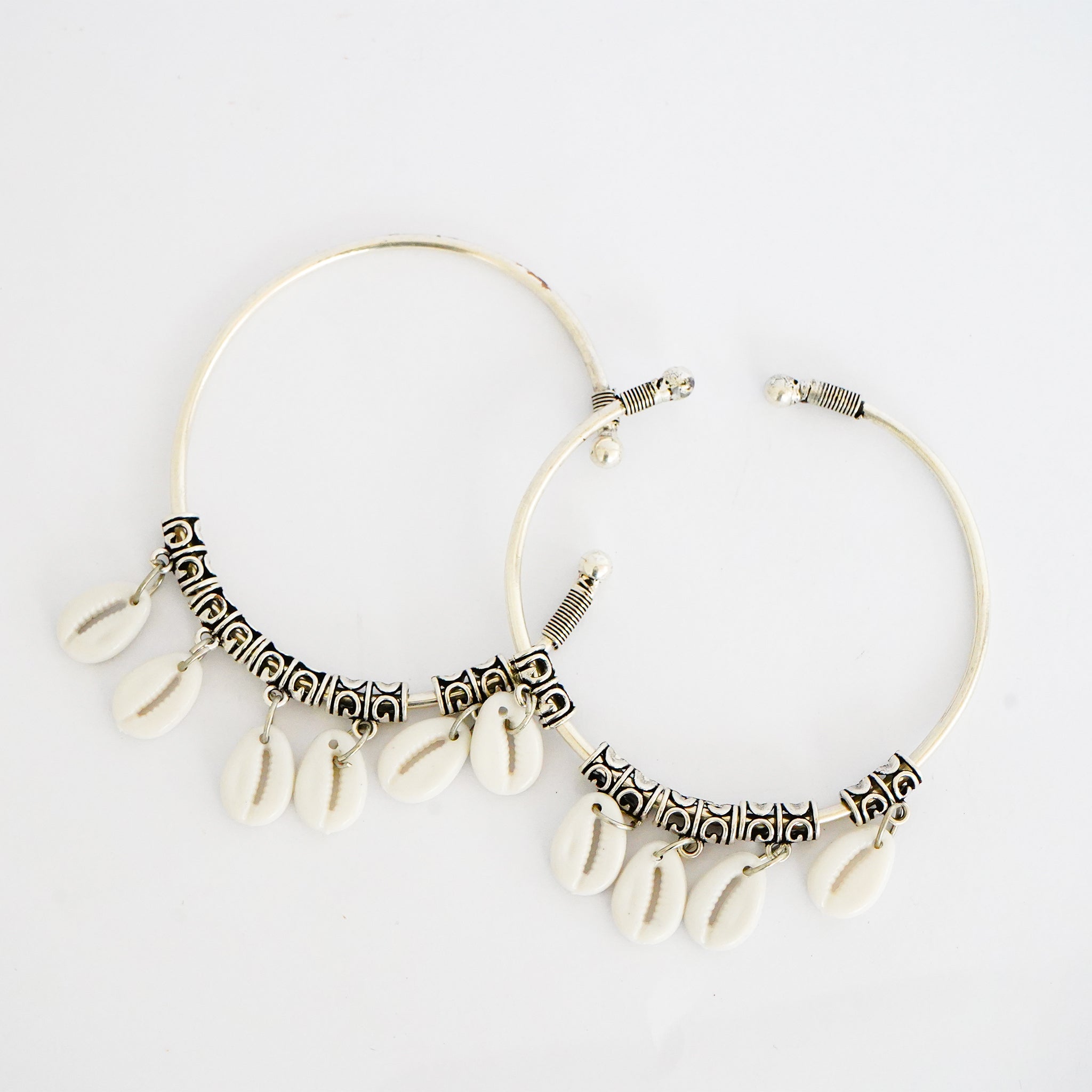 Oxidized German Silver Bangles with Dangling Conch(Set of 2)