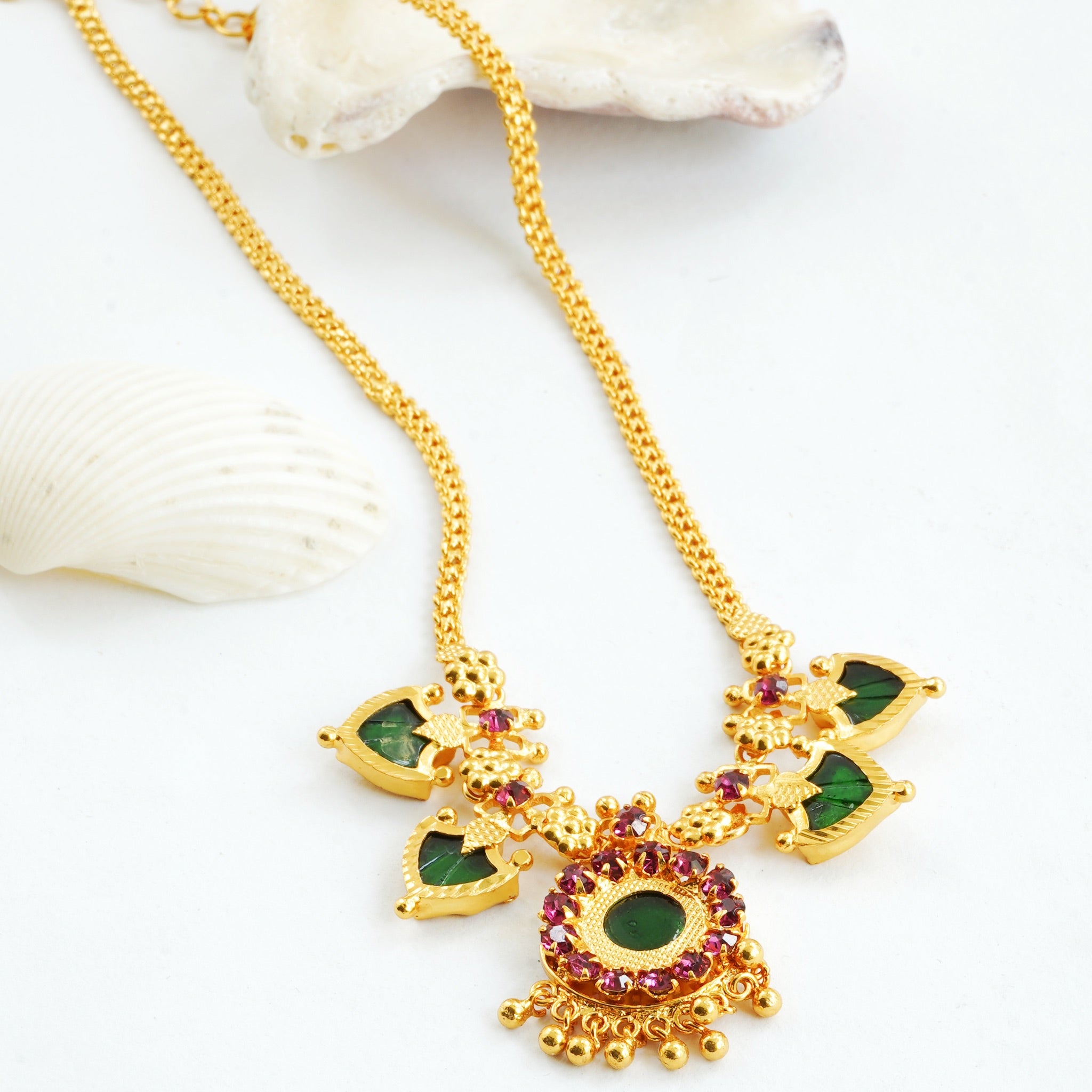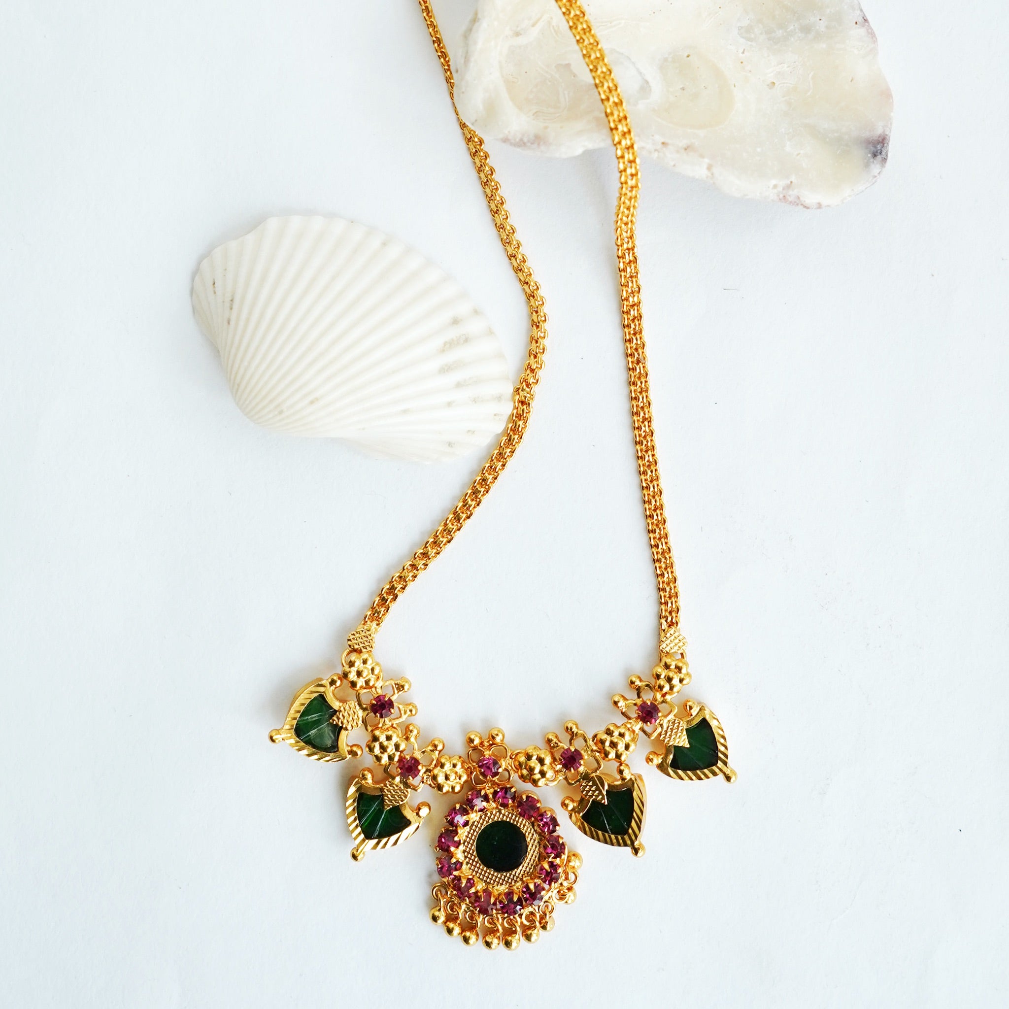 Palakka Necklace Circular-shaped Pendant with mini leaf shaped pendants