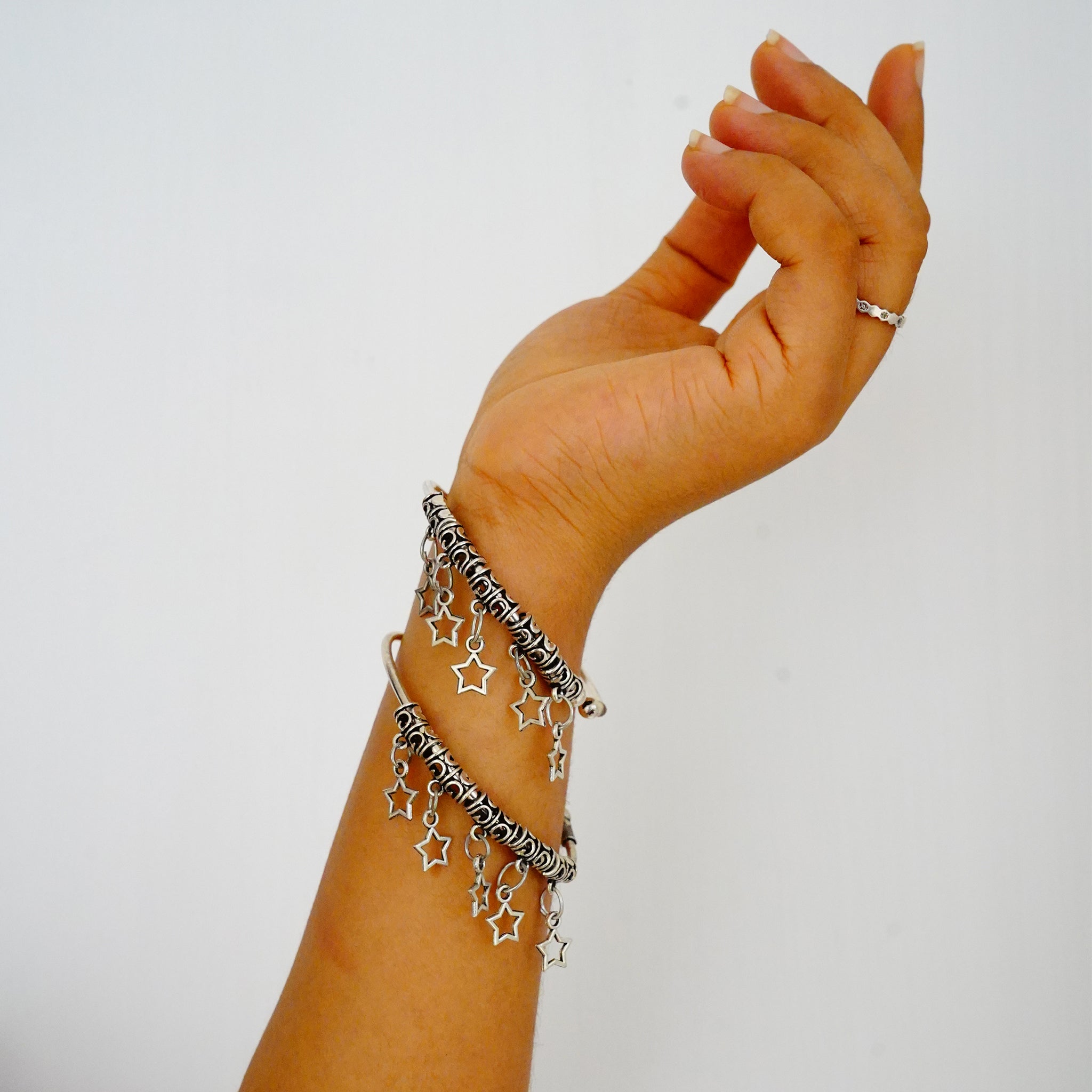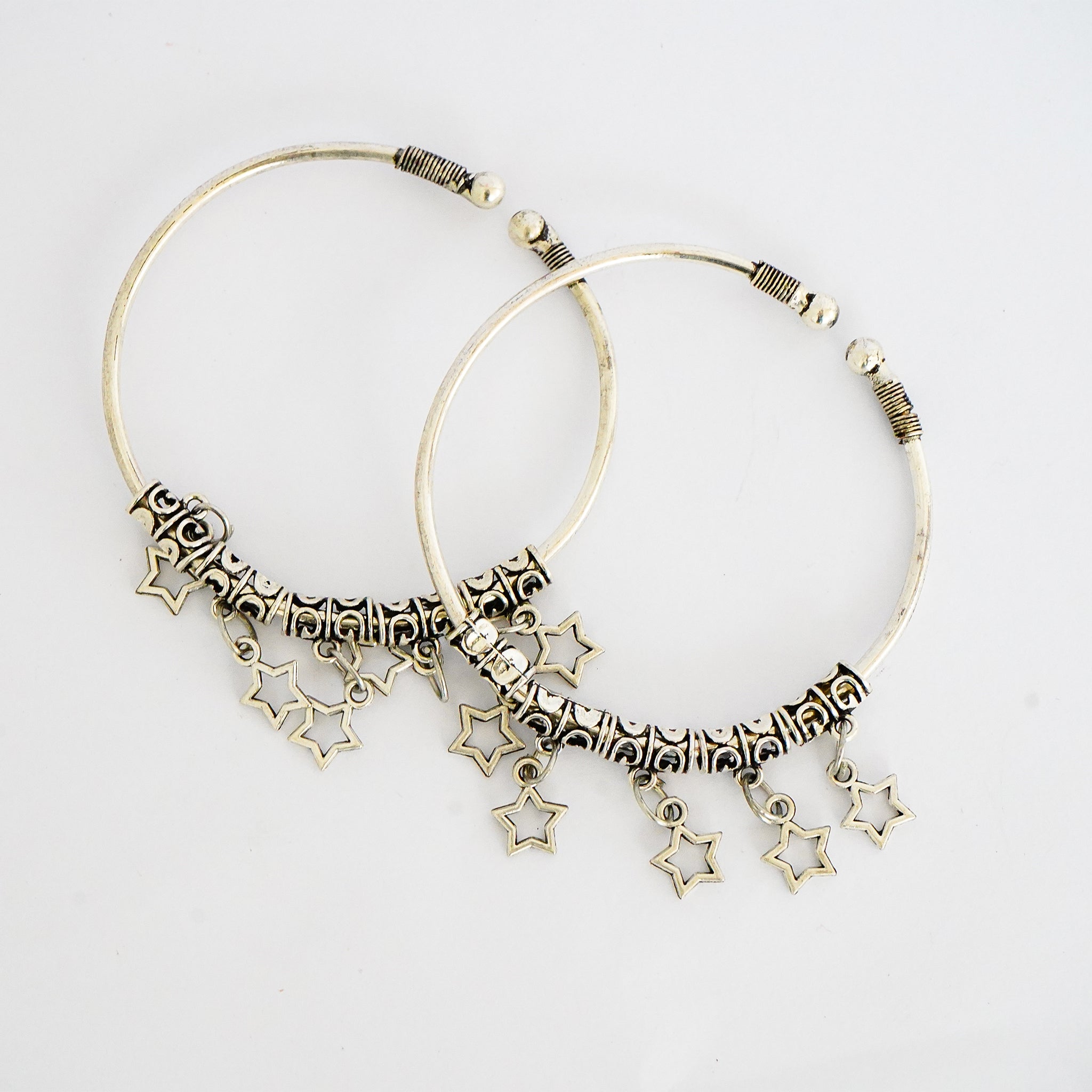Oxidized German Silver Bangles with Dangling Stars(Set of 2)