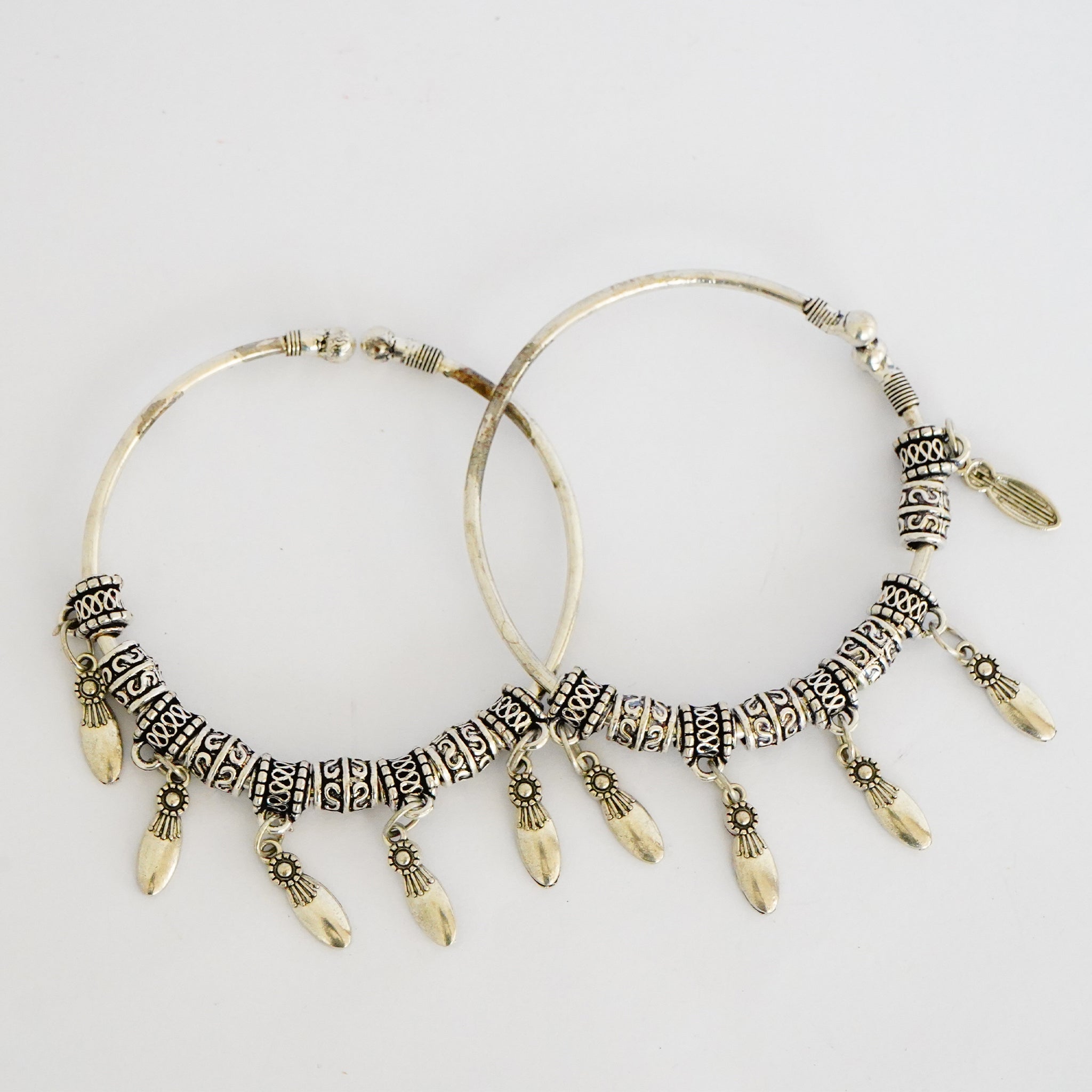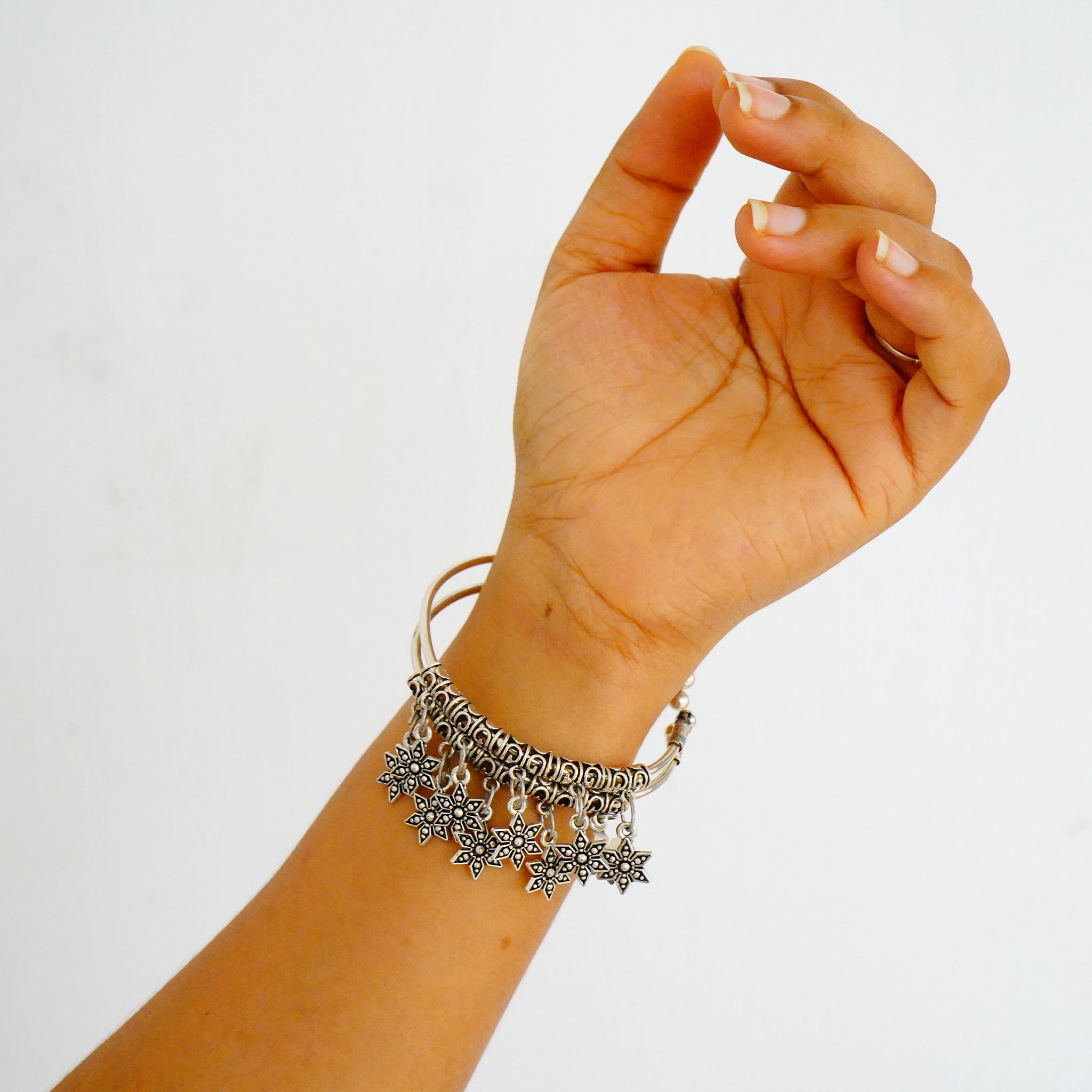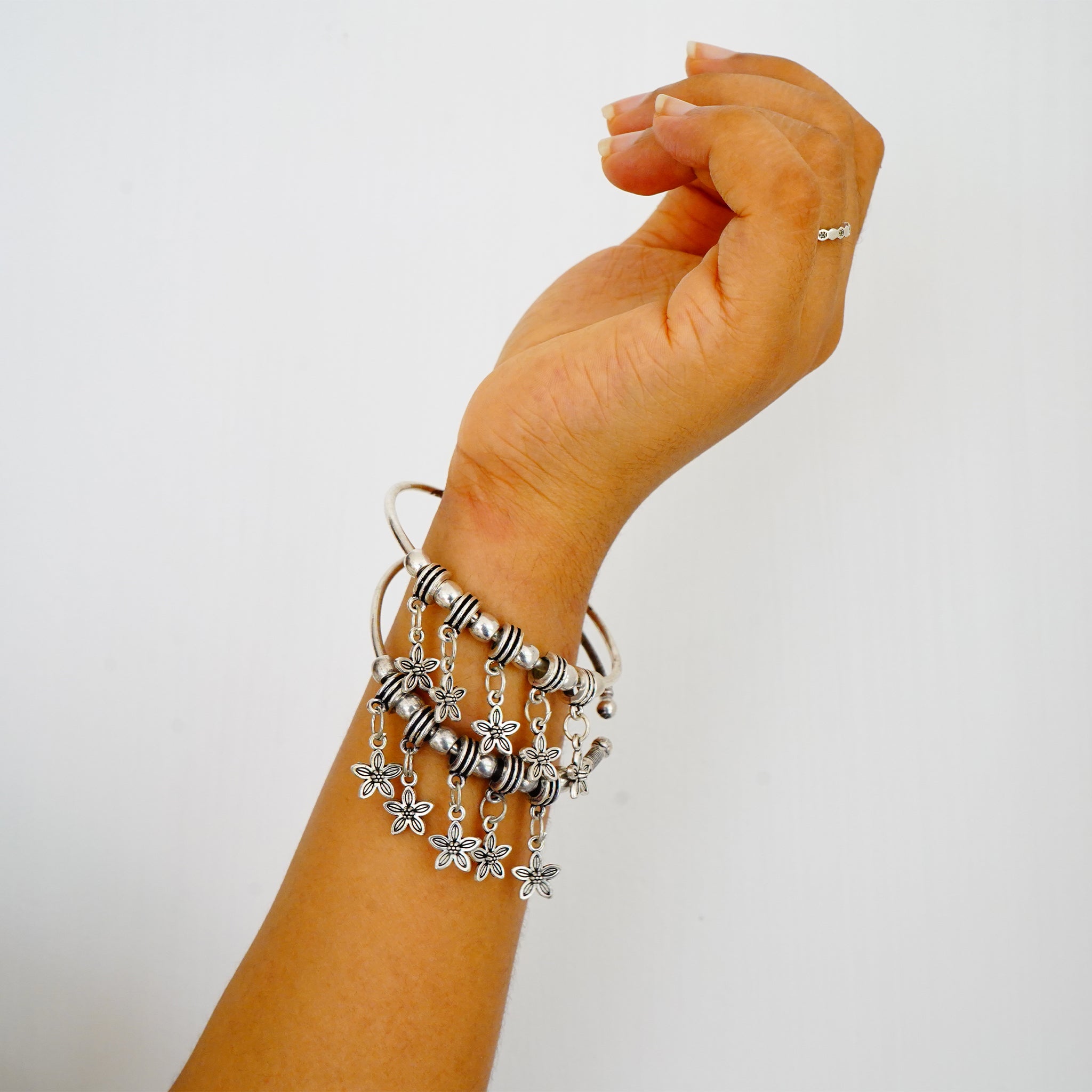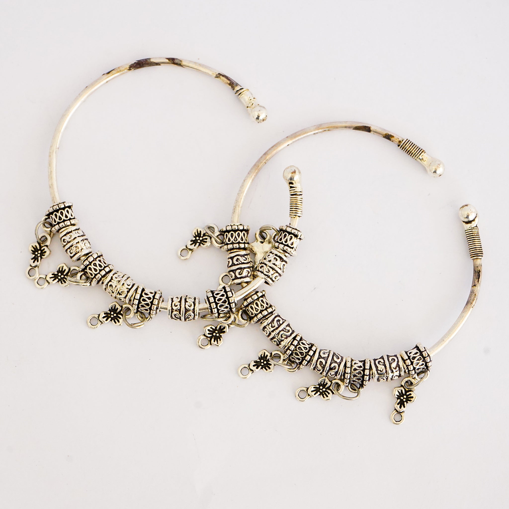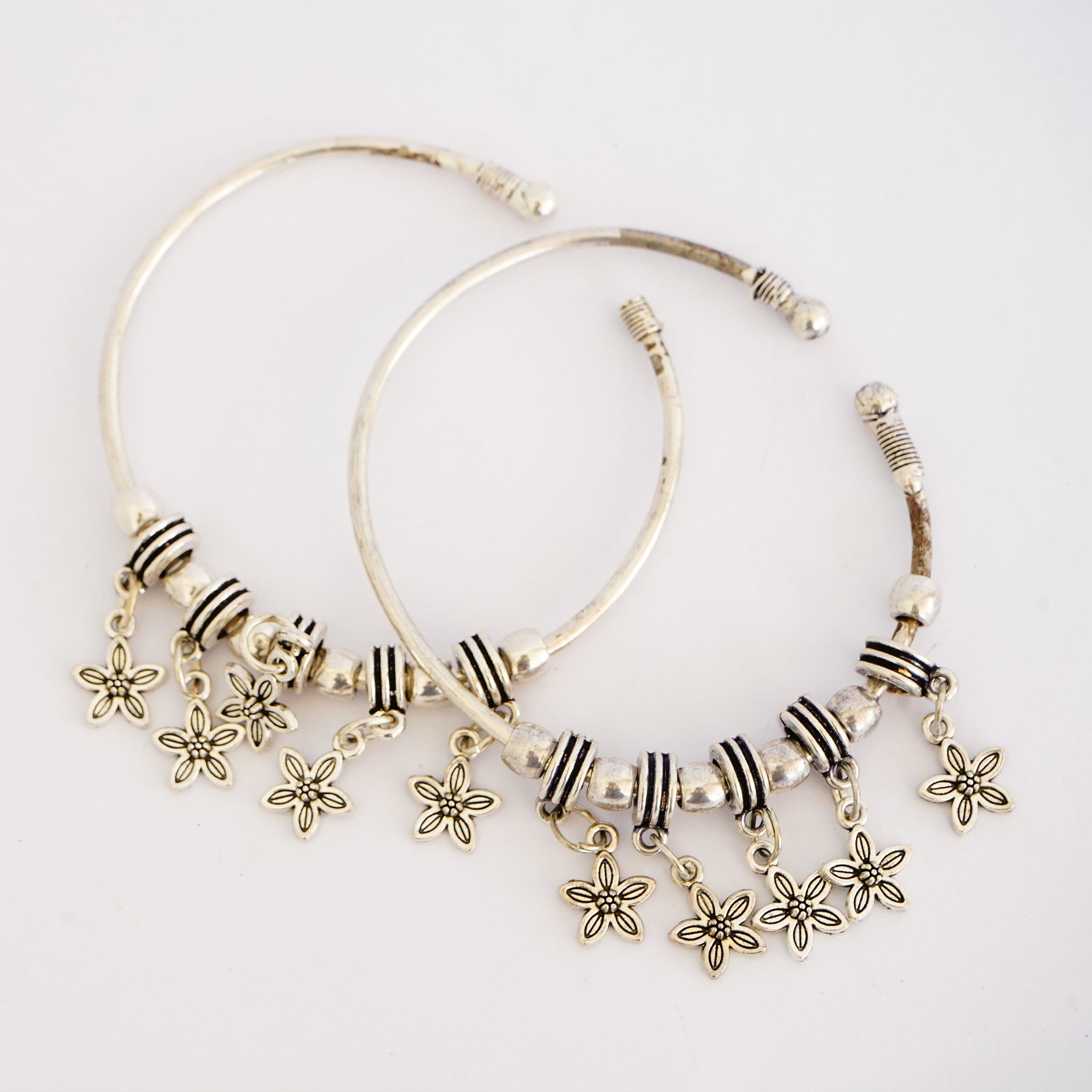 Oxidized German Silver Bangles with Dangling Petals(Set of 2)