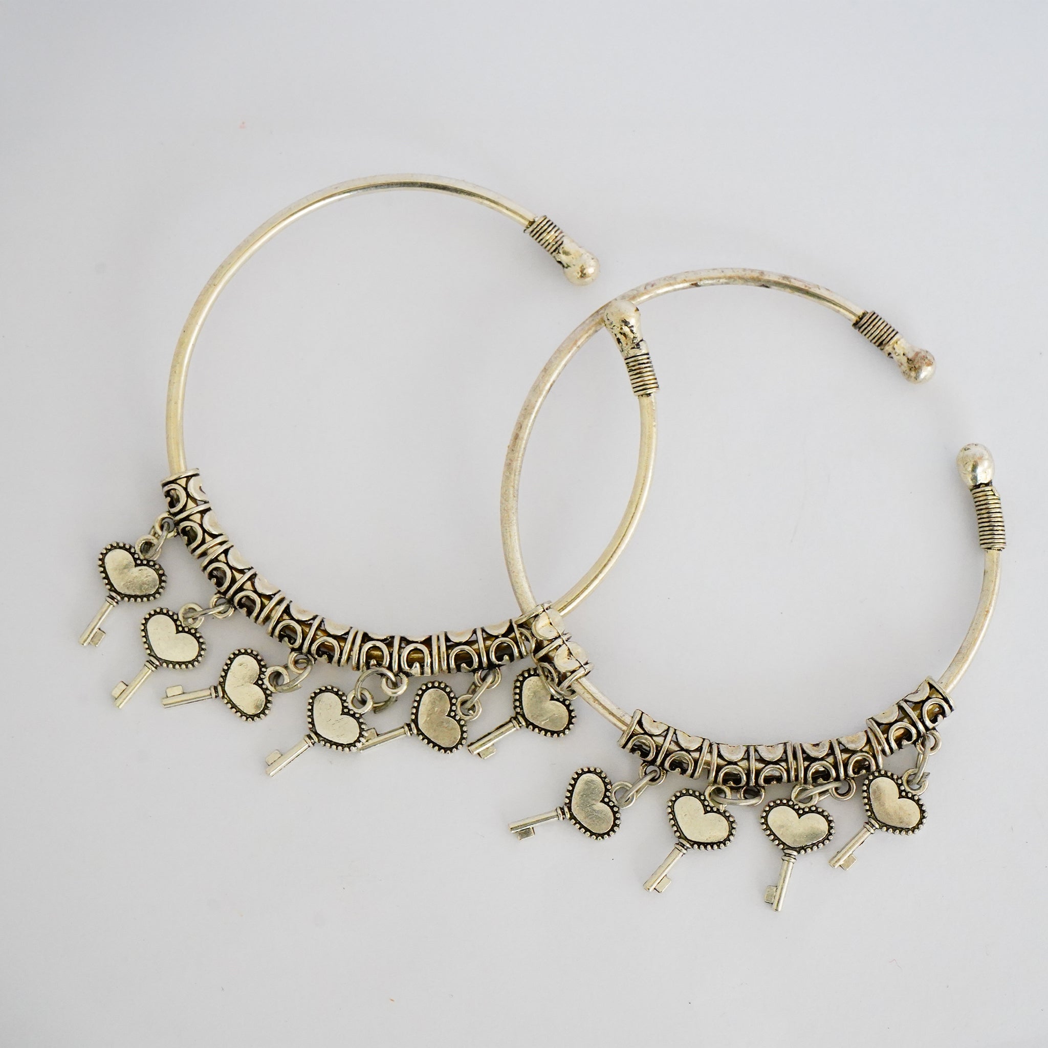 Oxidized German Silver Bangles with Dangling Heart Key(Set of 2)