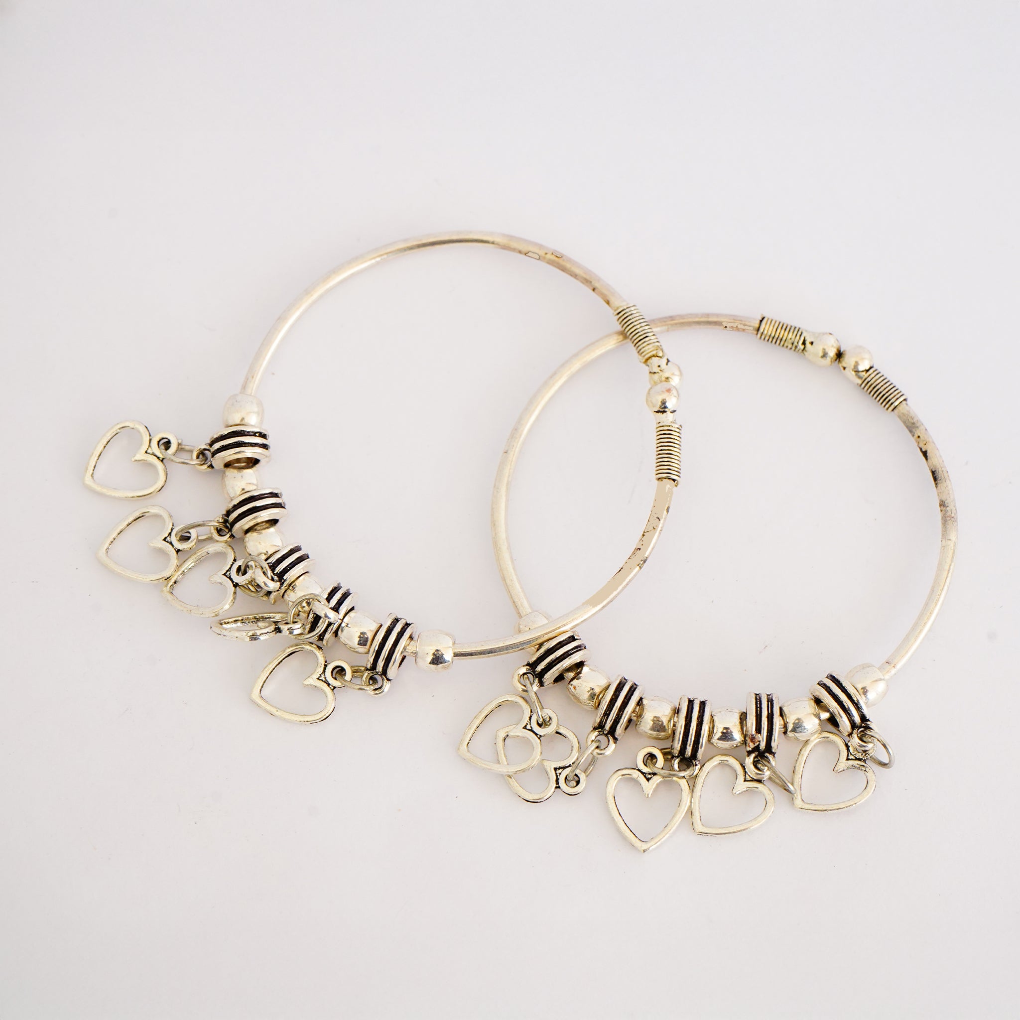 Oxidized German Silver Bangles with Dangling Heart(Set of 2)