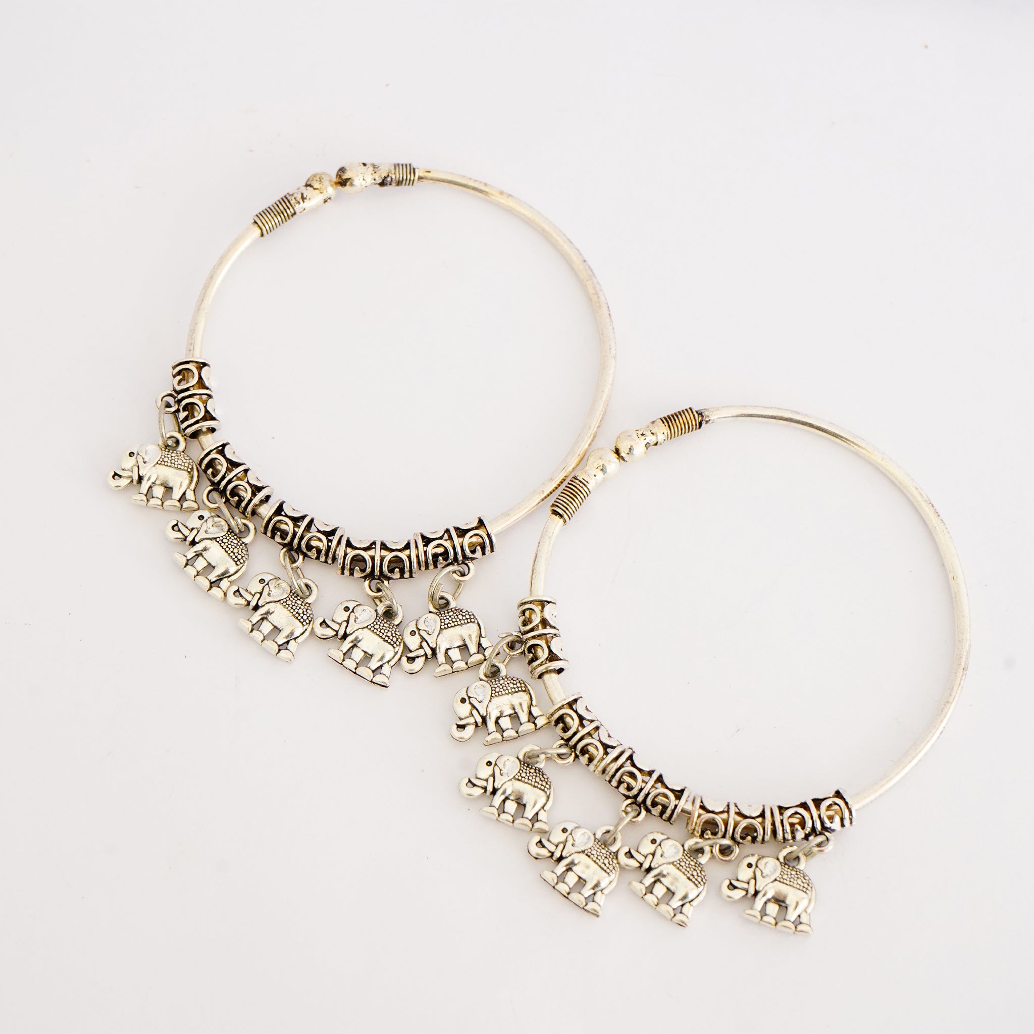 Oxidized German Silver Bangles with Dangling Elephants(Set of 2)
