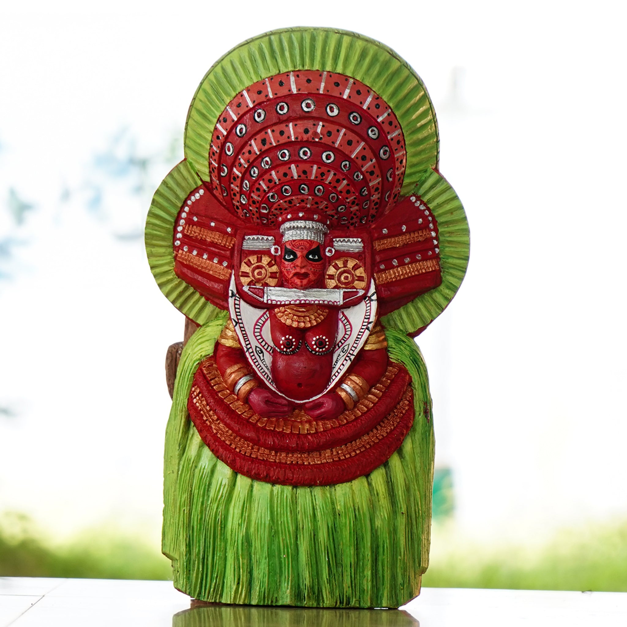 Handcrafted Chamundi Theyyam Wooden Decor-Made to Order