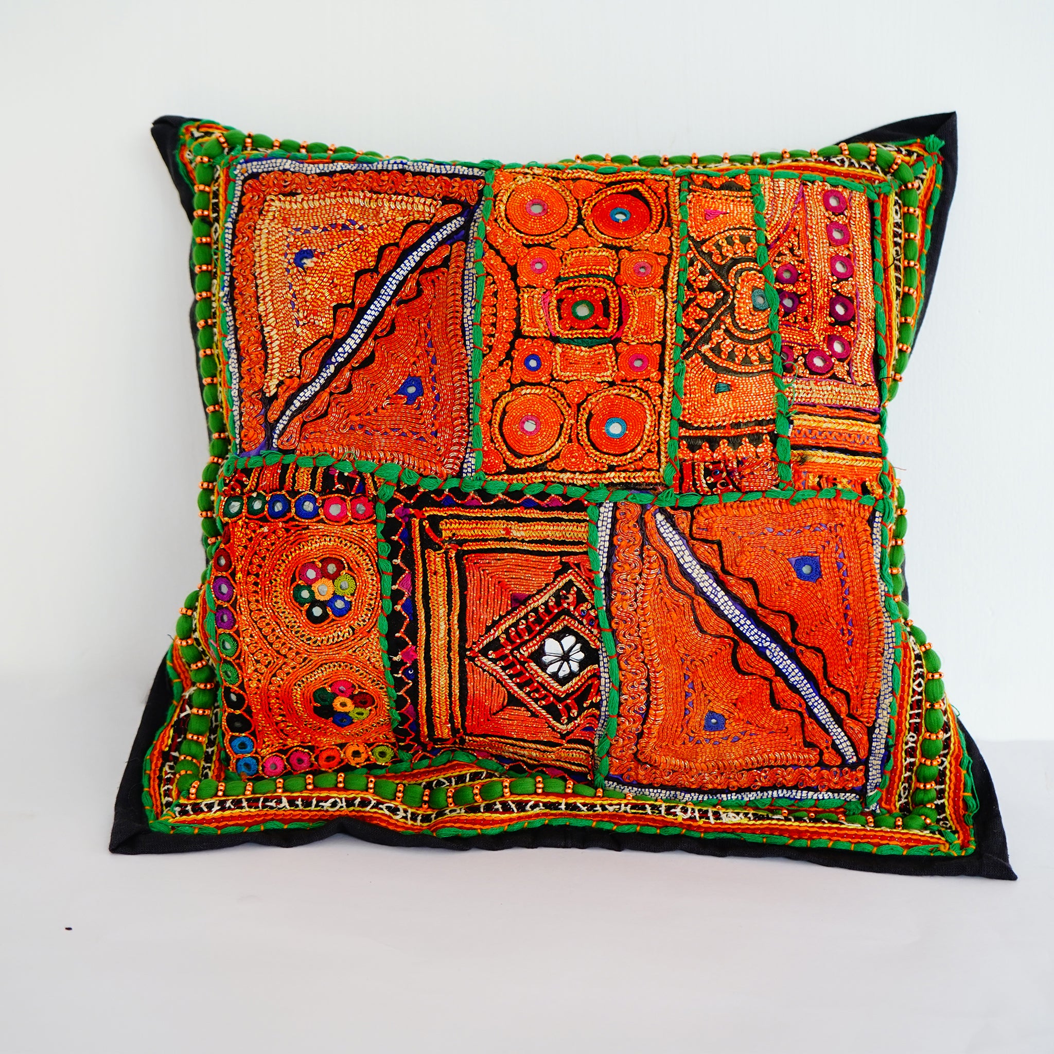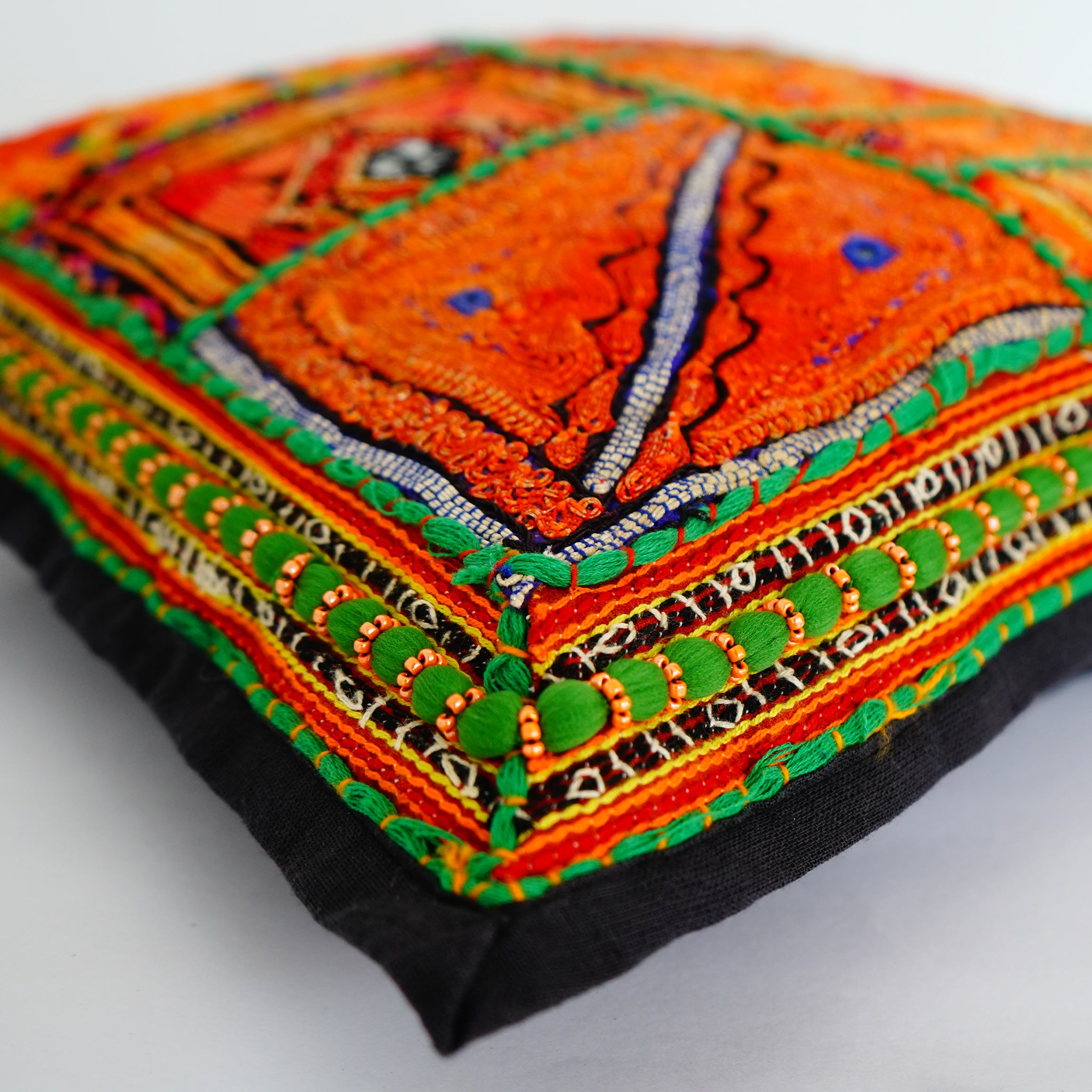 Handcrafted Banjara Embroidery Pillow Cover Vibrant Tribal Decor Piece