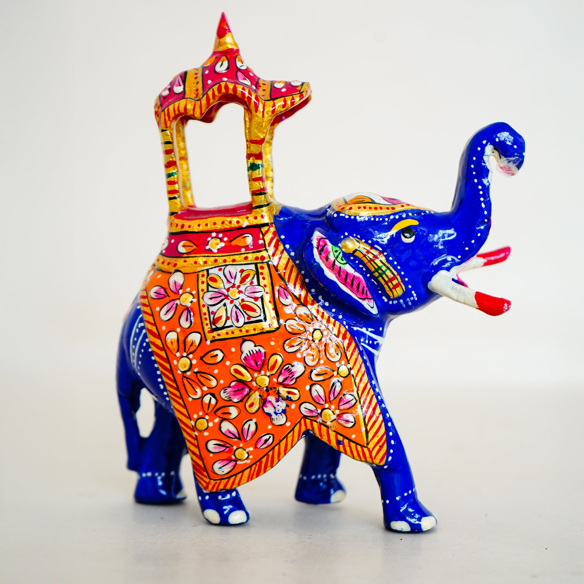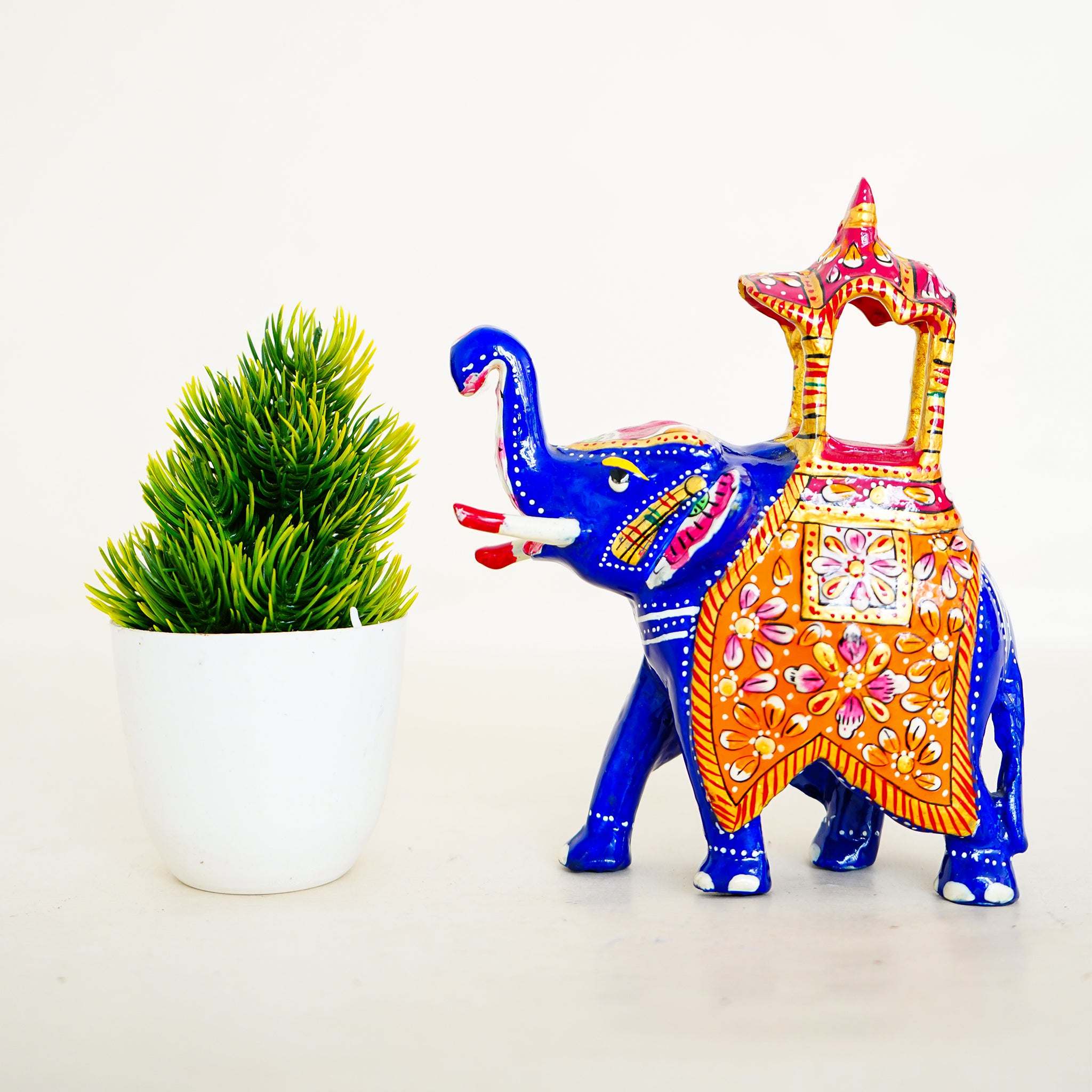 Handcrafted Meenakari Blue Elephant With Howdah Seat
