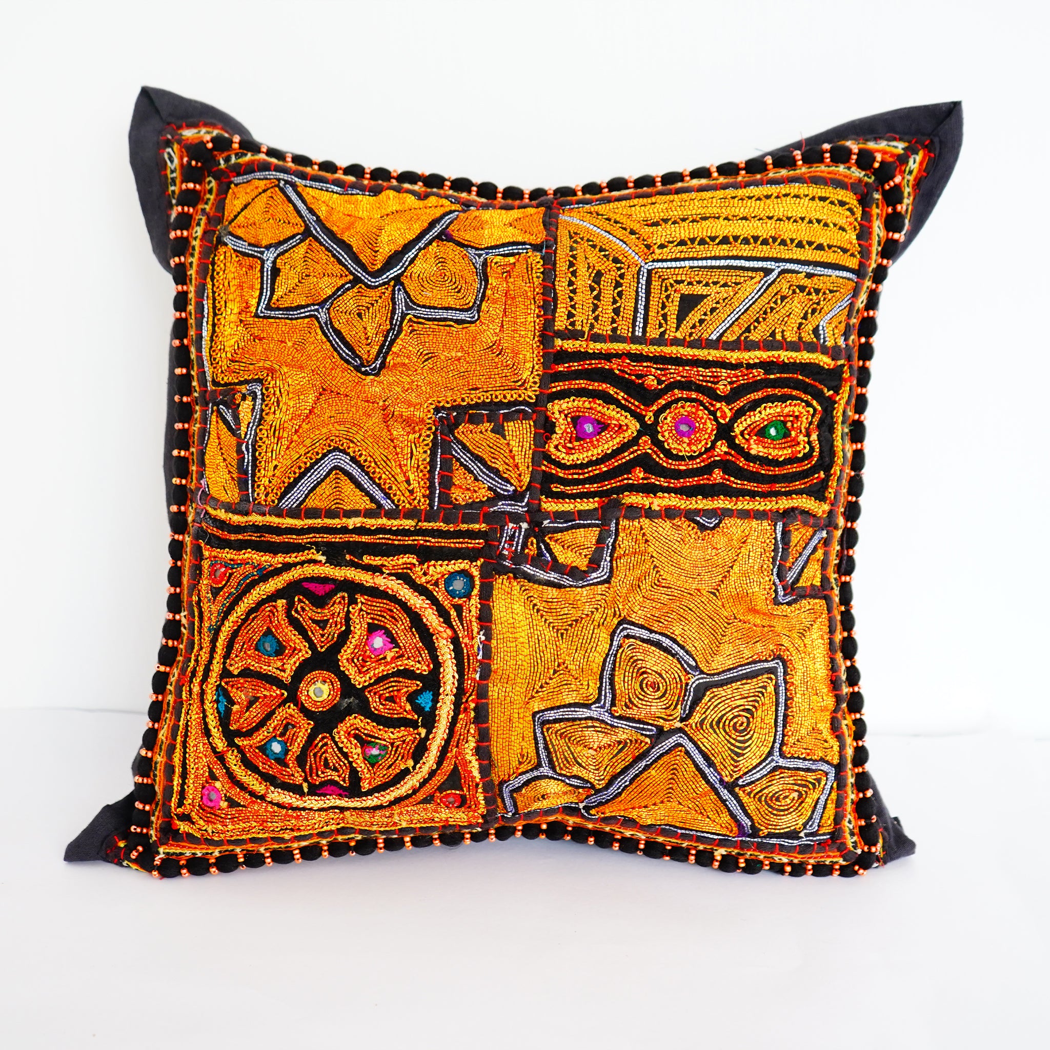 Handcrafted Rabari Embroidery Pillow Cover Tribal Patterns