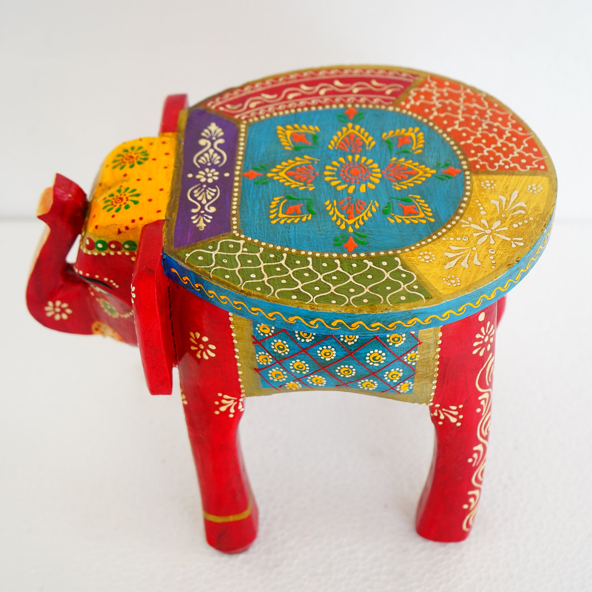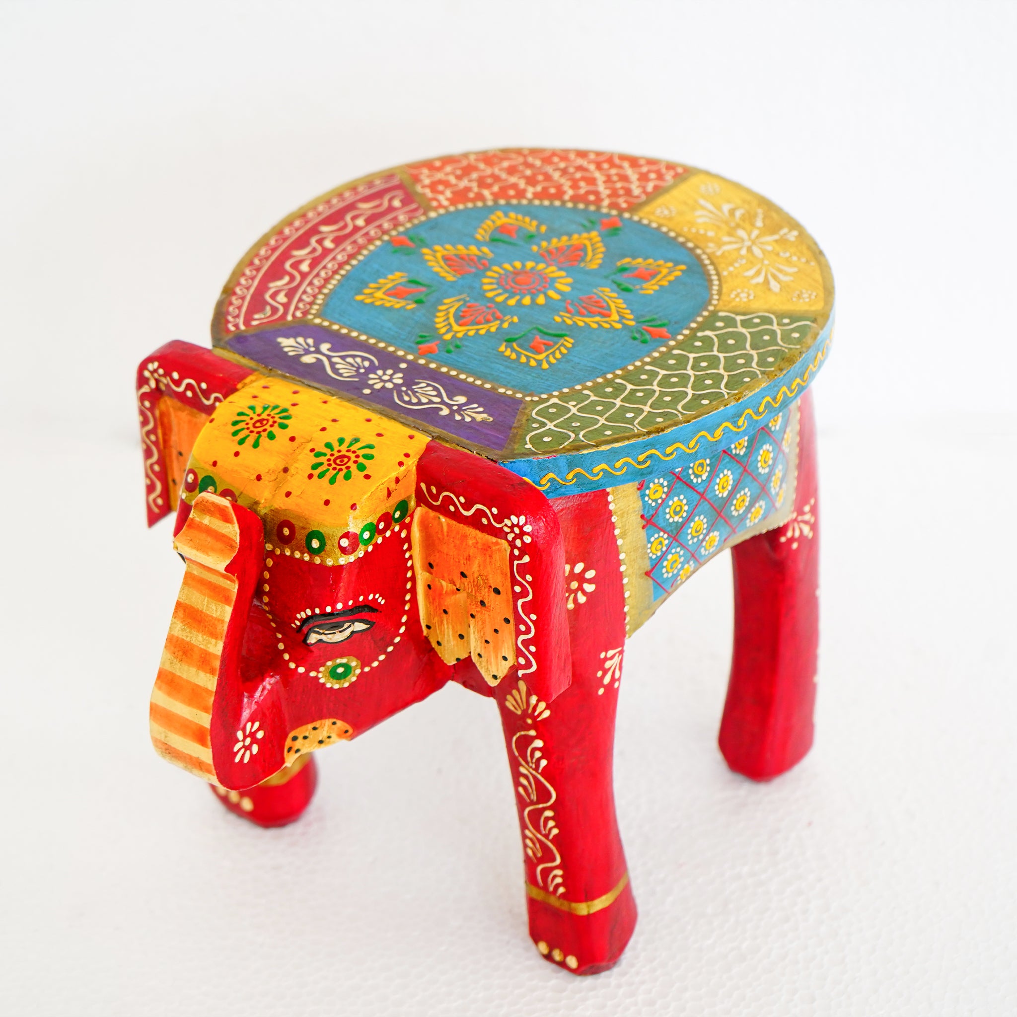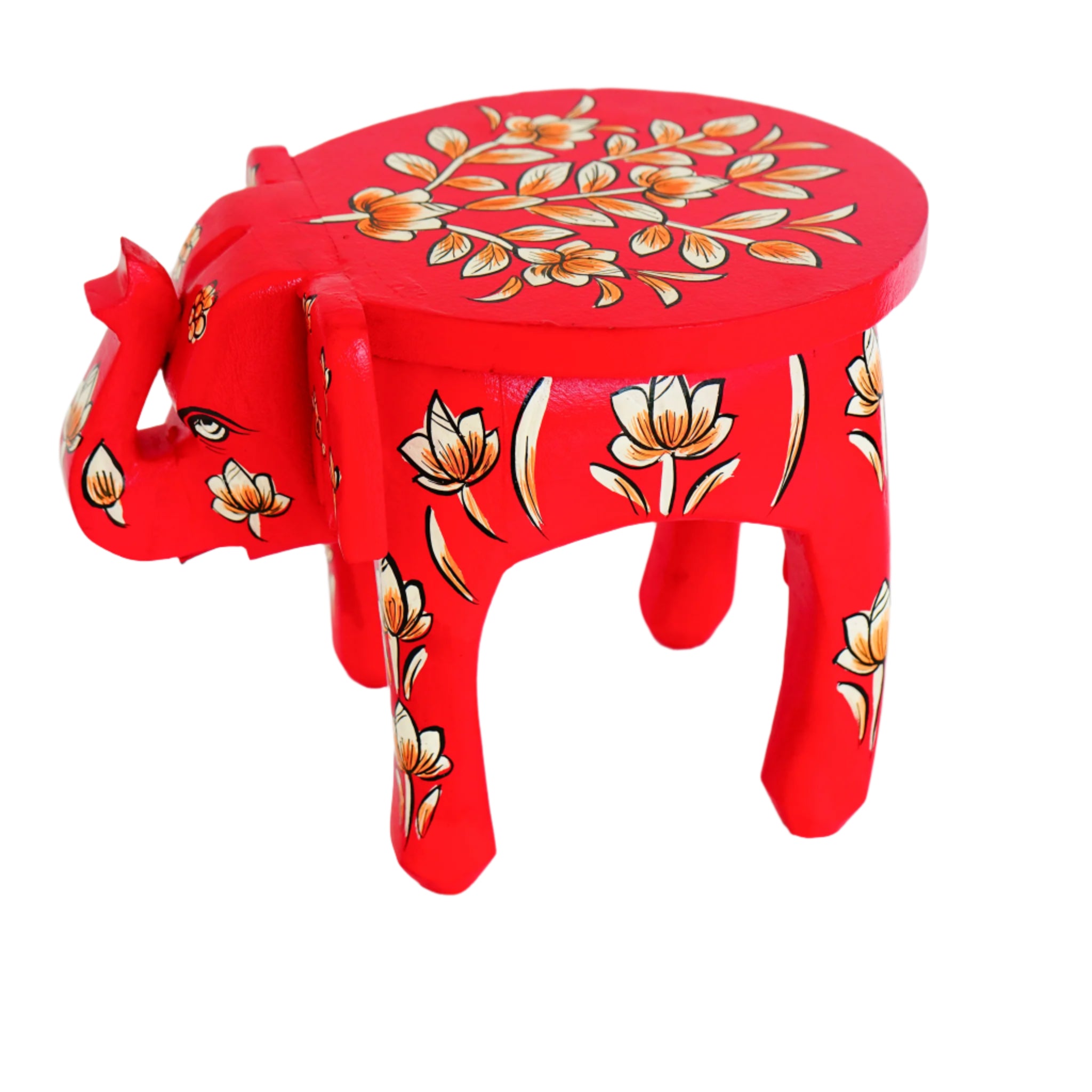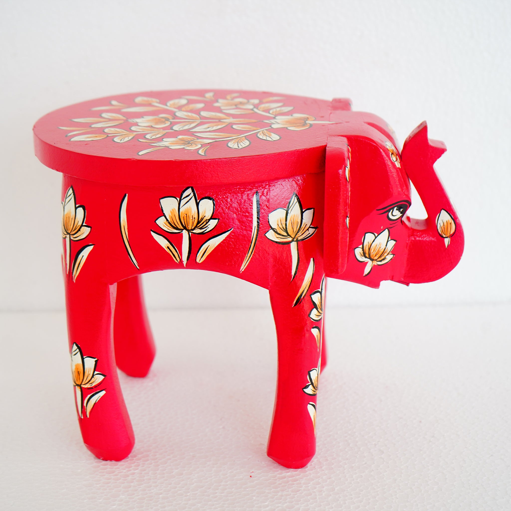 Hand-Painted Wooden Elephant Shape Red Stool