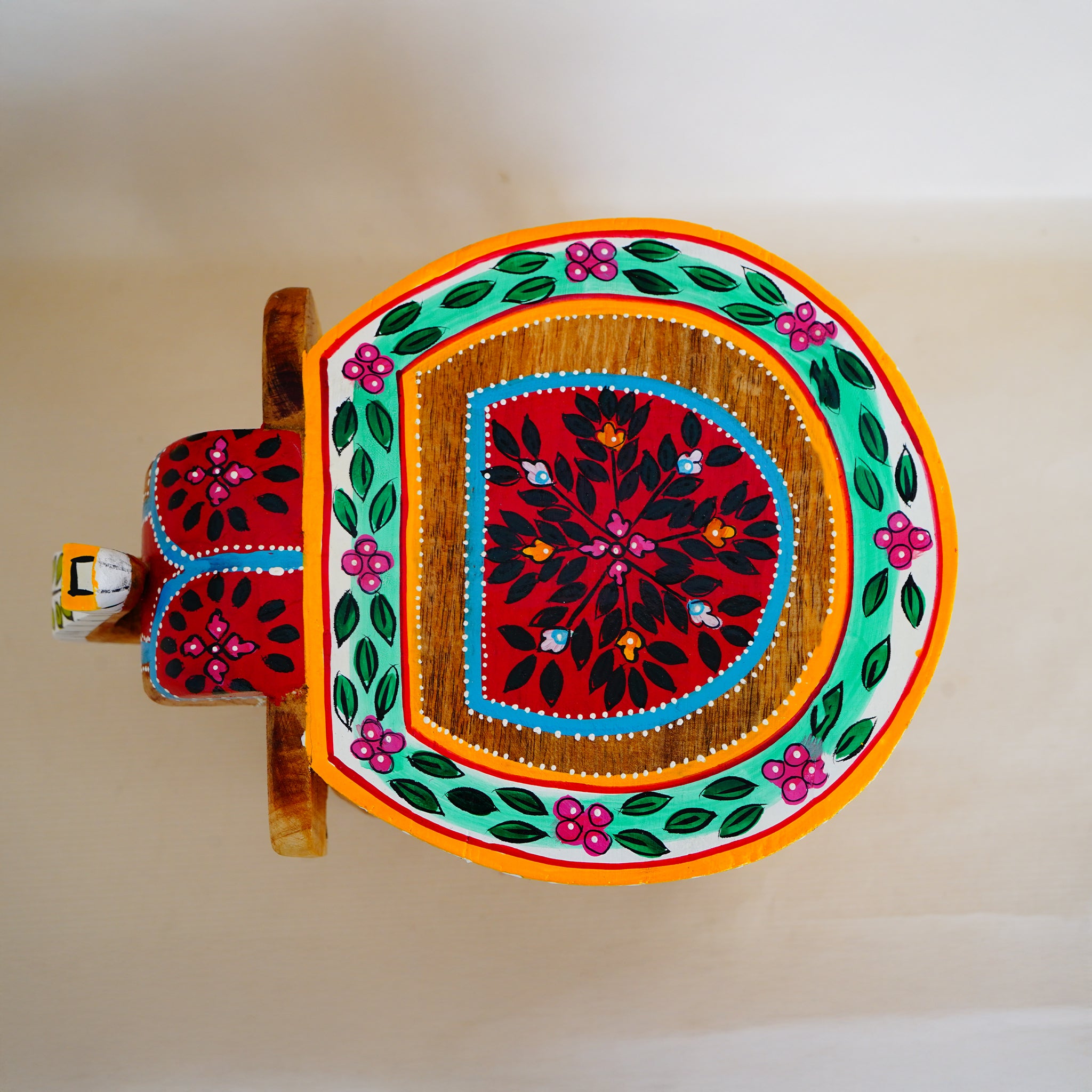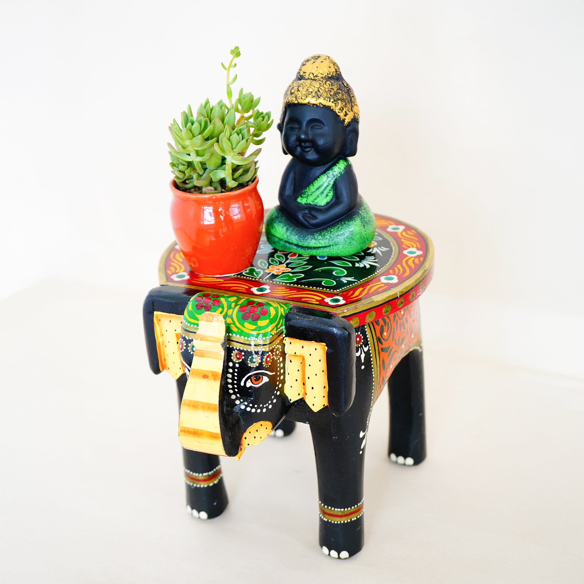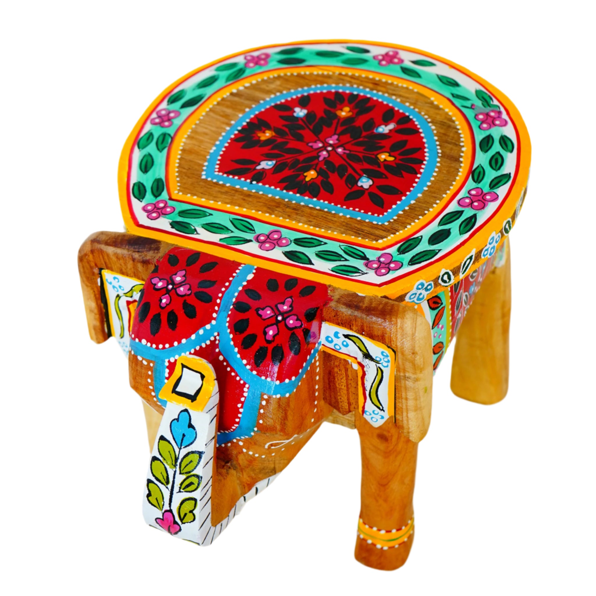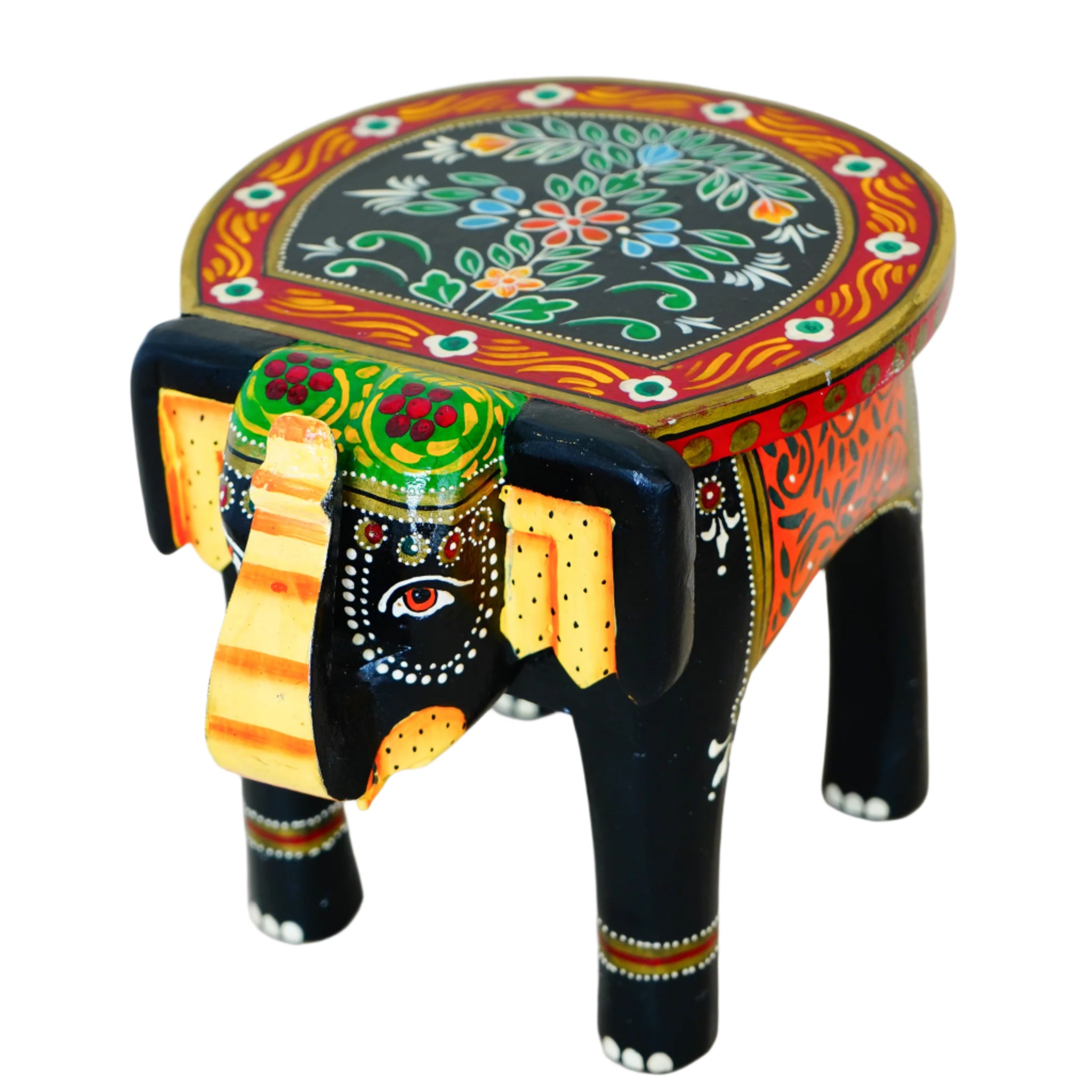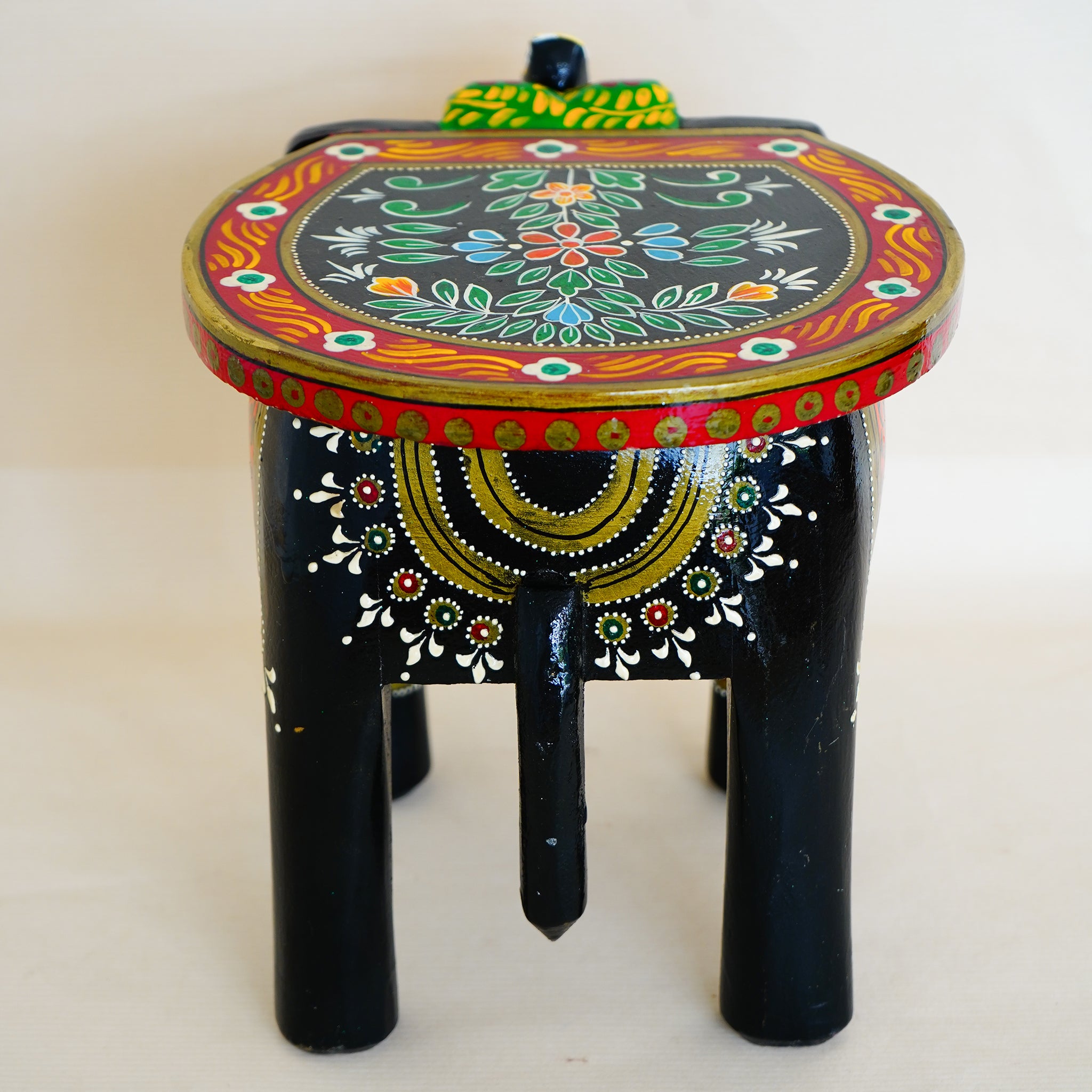 Hand-Painted Wooden Elephant Shape Red Stool