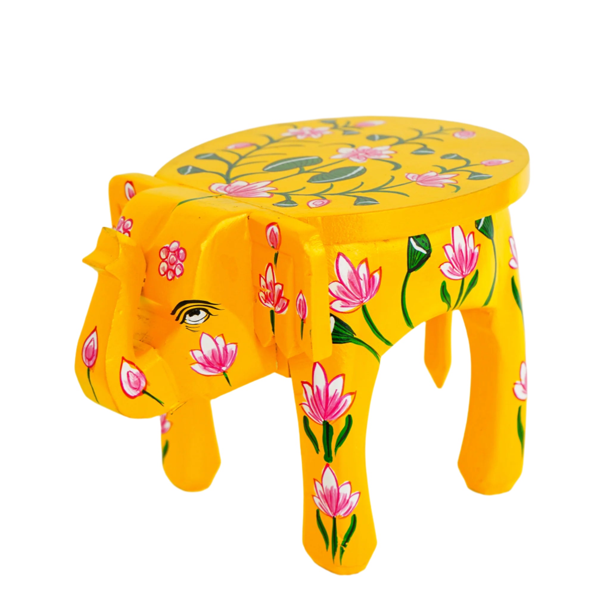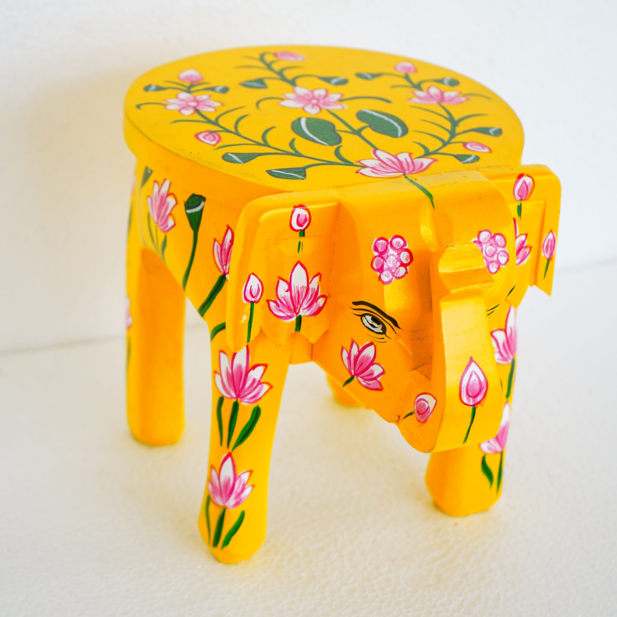 Traditional Three-Headed Wooden Pooram Elephant Stool with Nettipattam