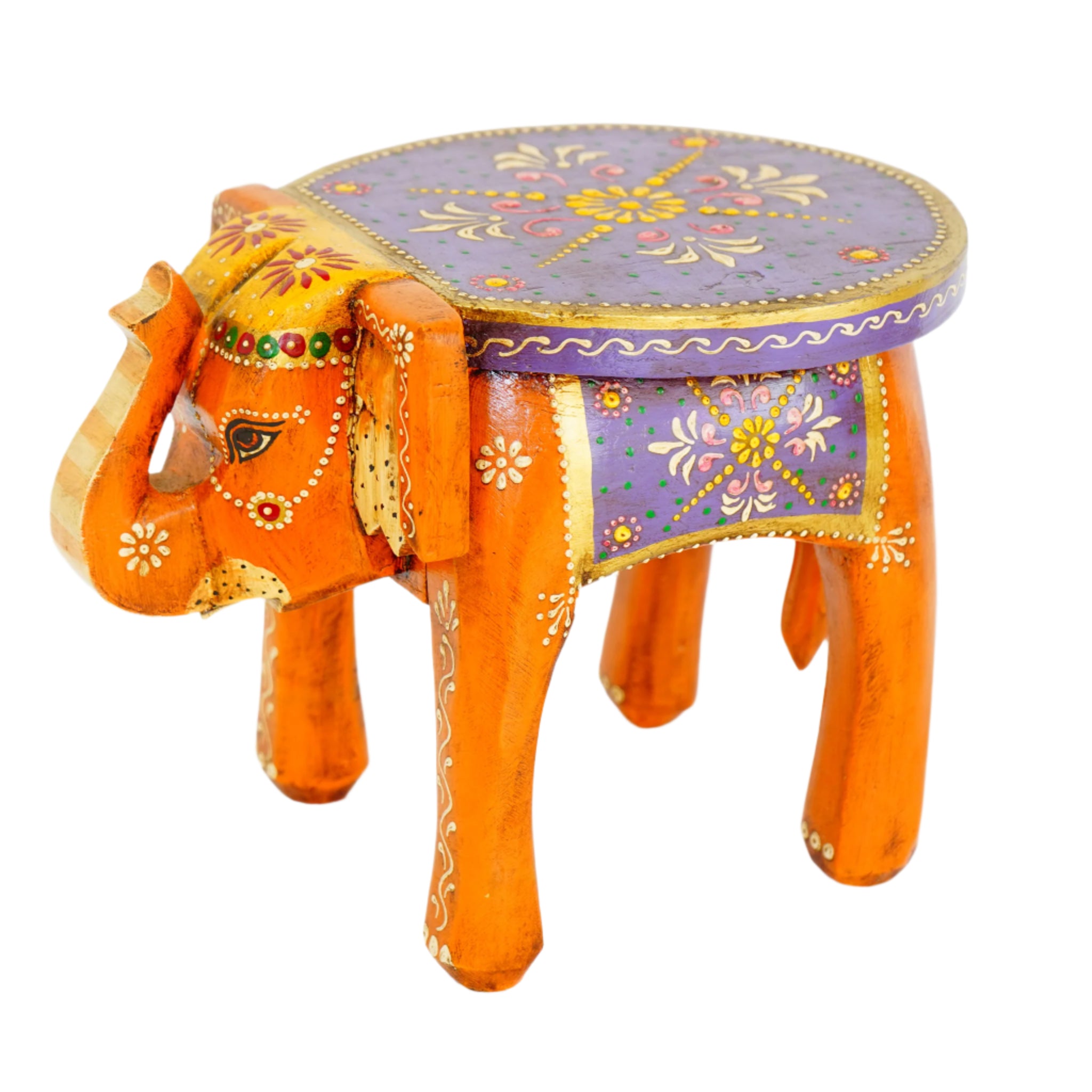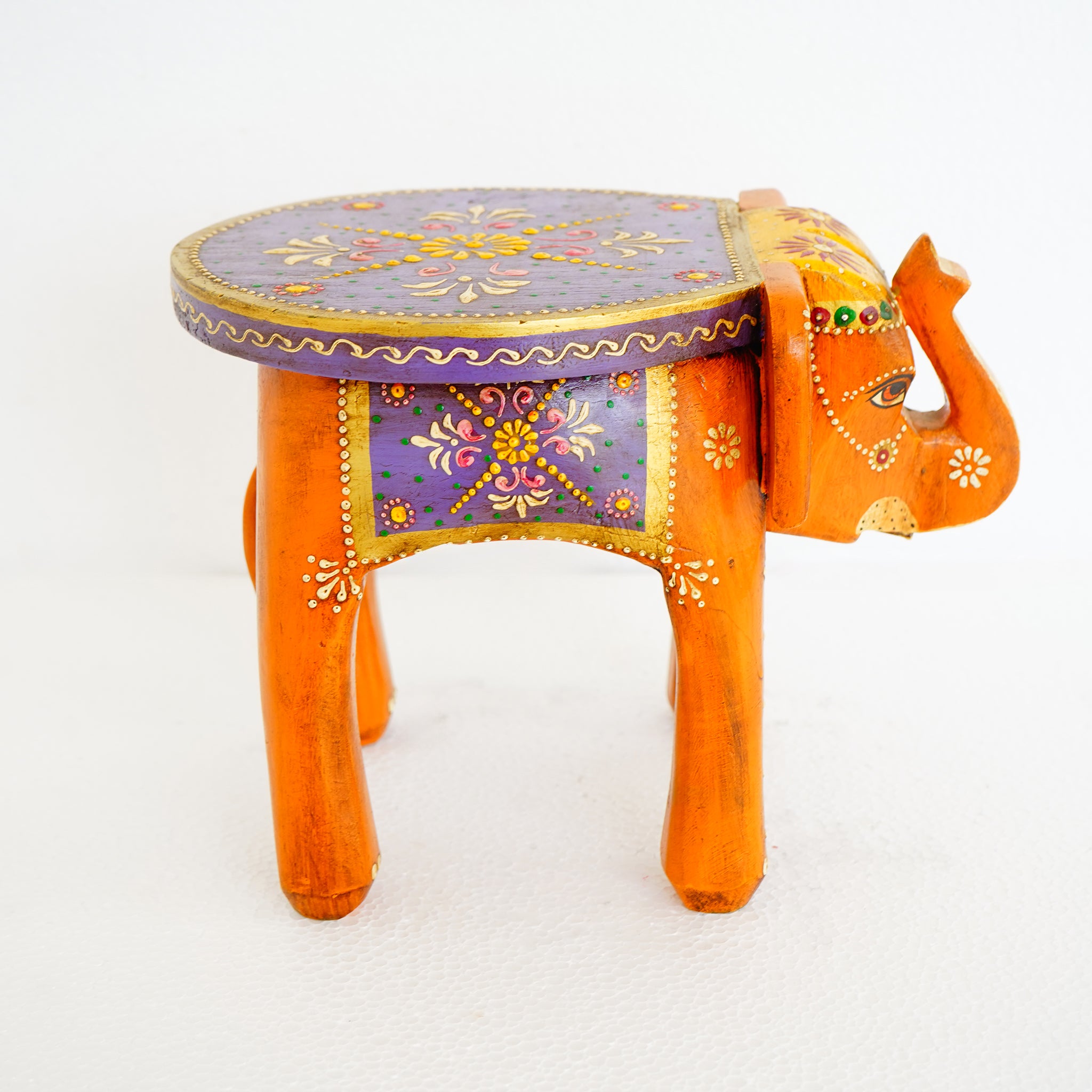 Hand-Painted Wooden Elephant Purple Stool