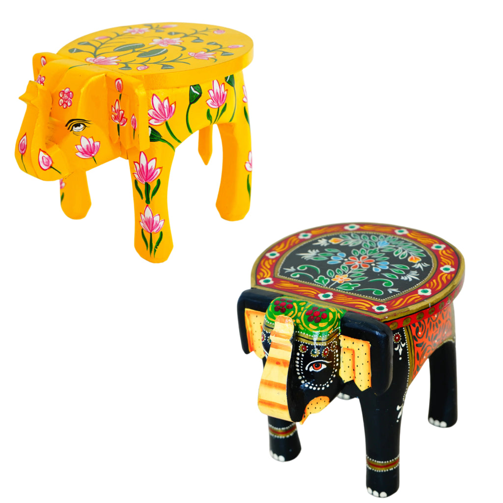 Hand-Painted Wooden Elephant Shaped (Set of 2)