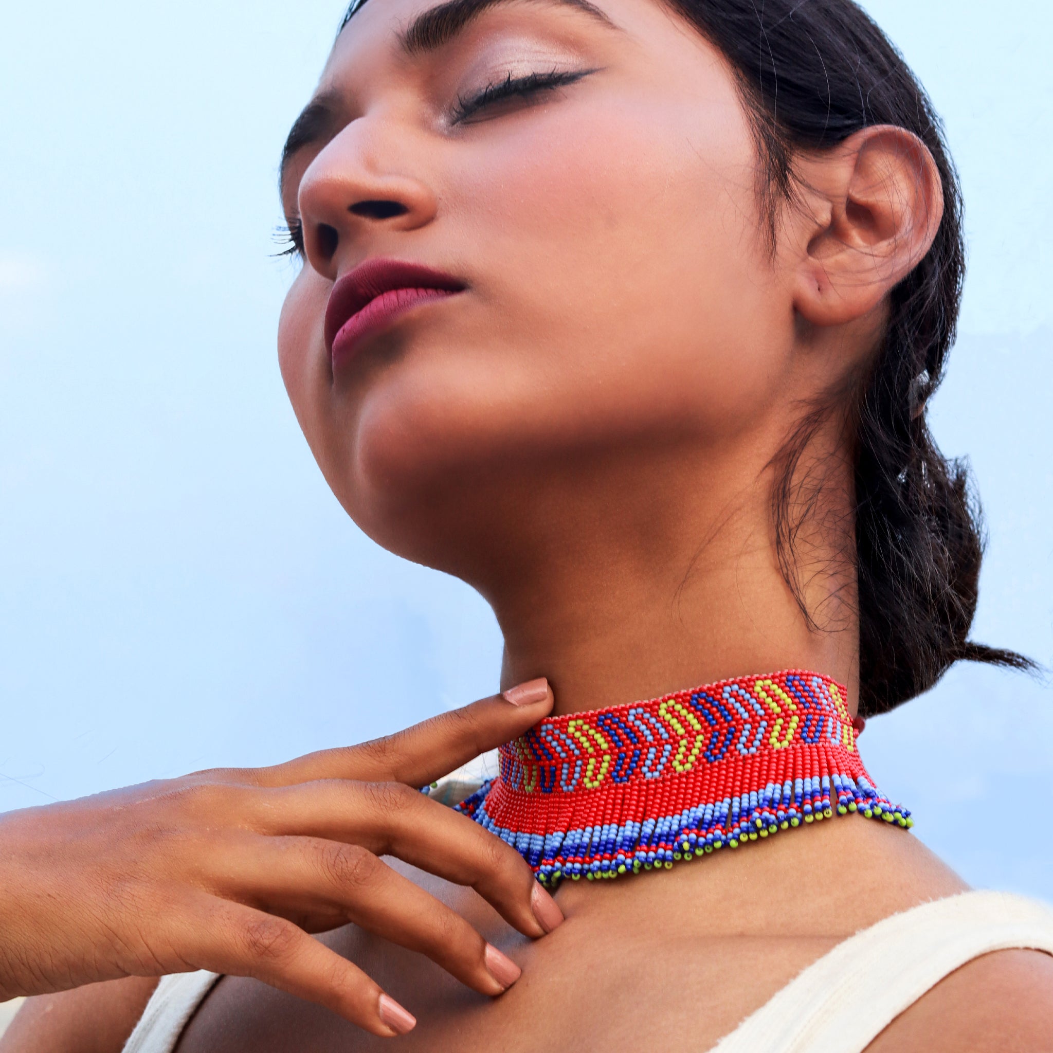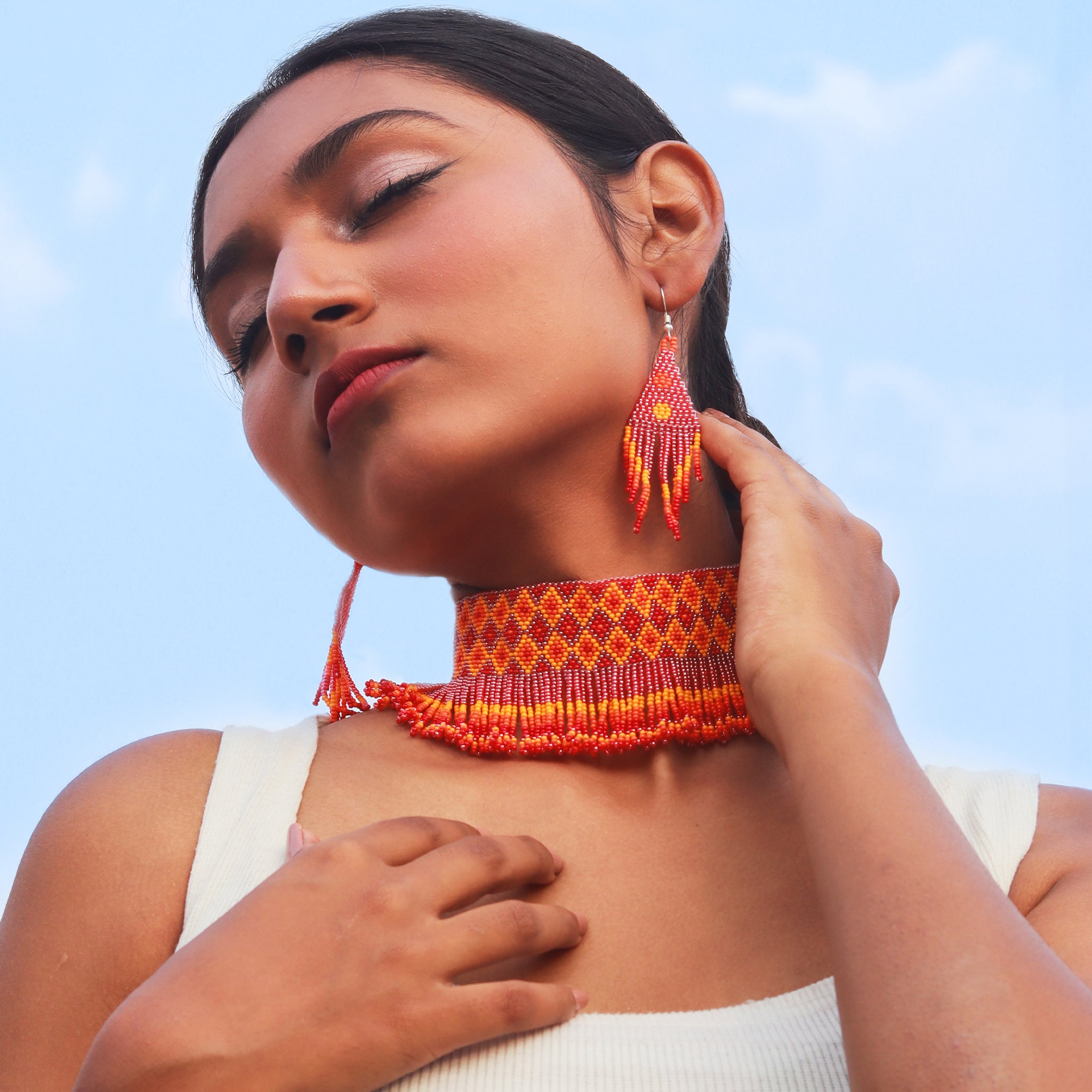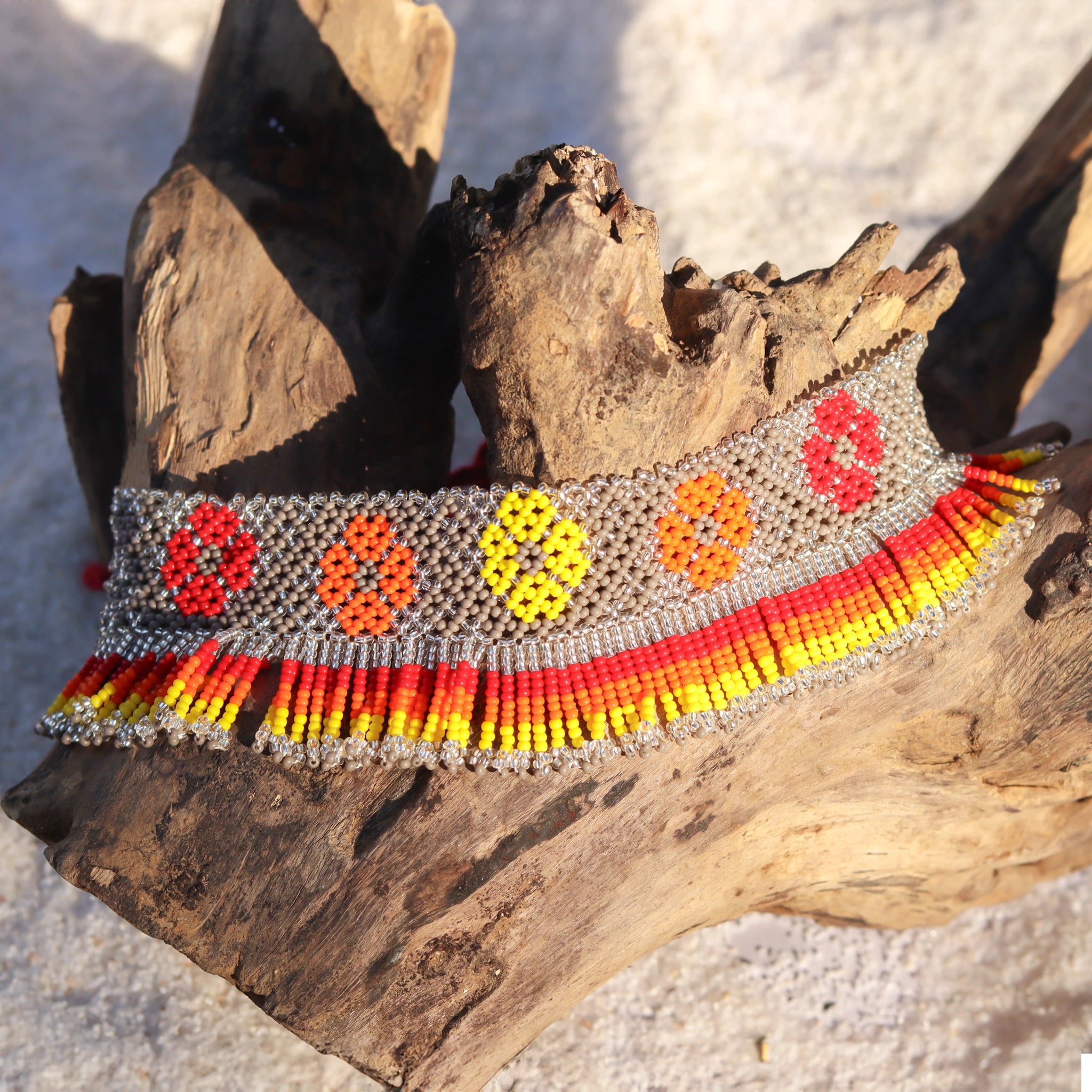 Kutch Bead work Neck piece - Red,Yellow & Orange