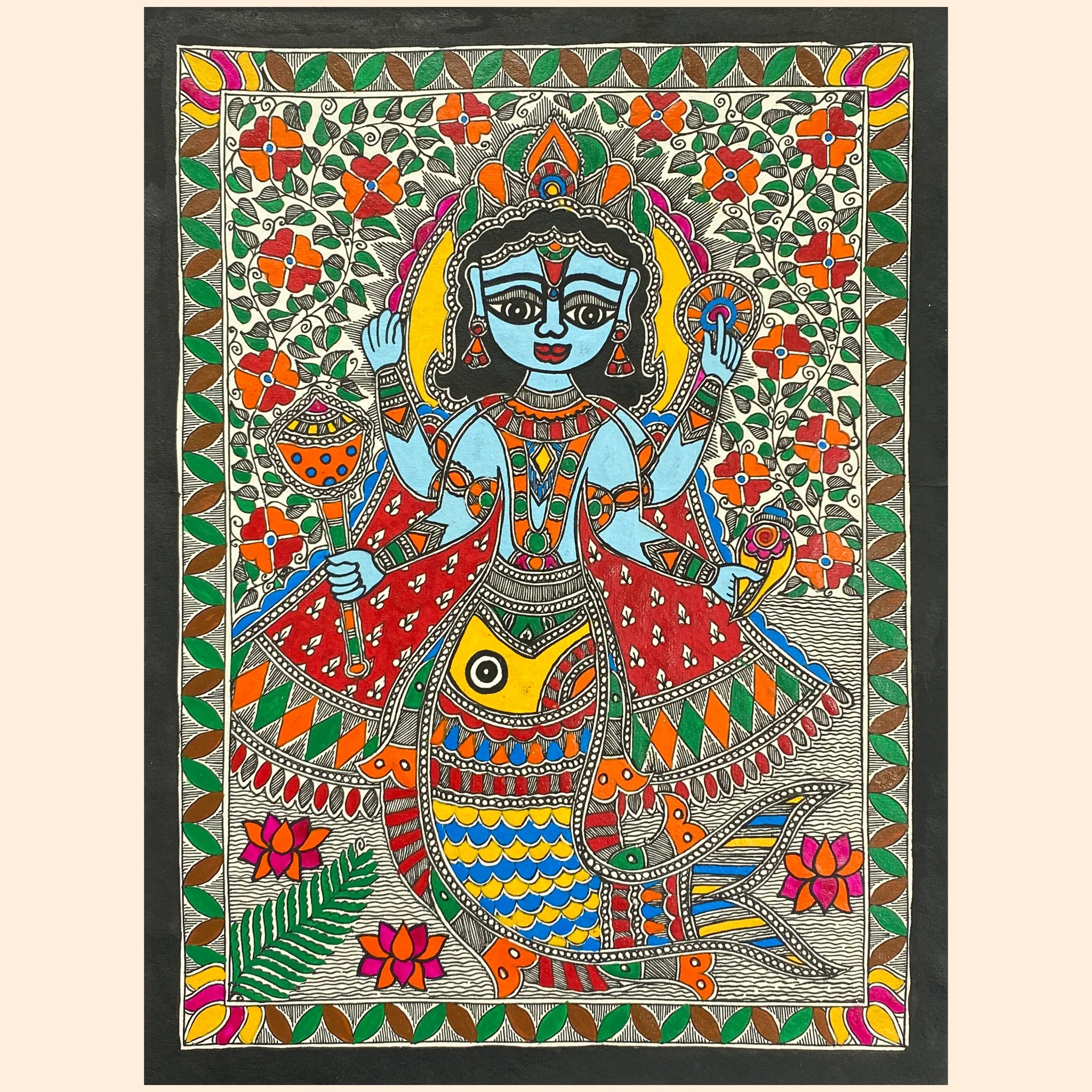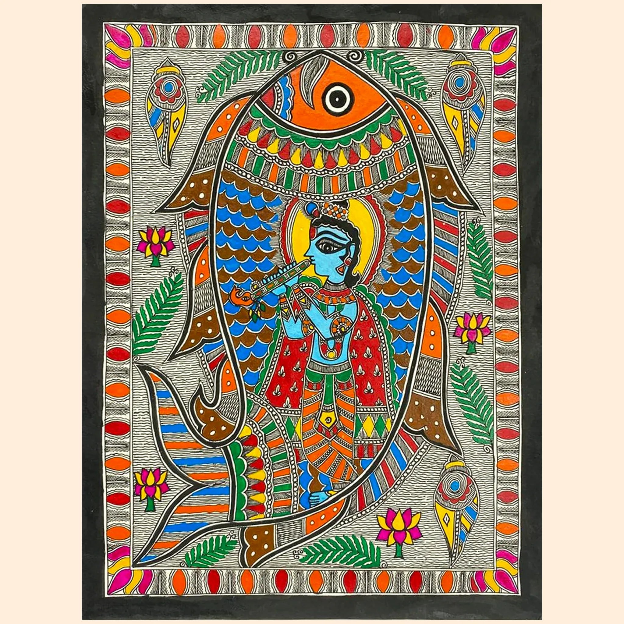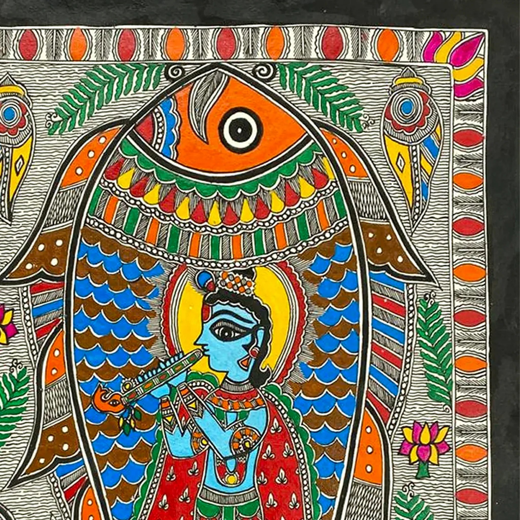 Hand Painted Madhubani Meenmor Art -Made to Order