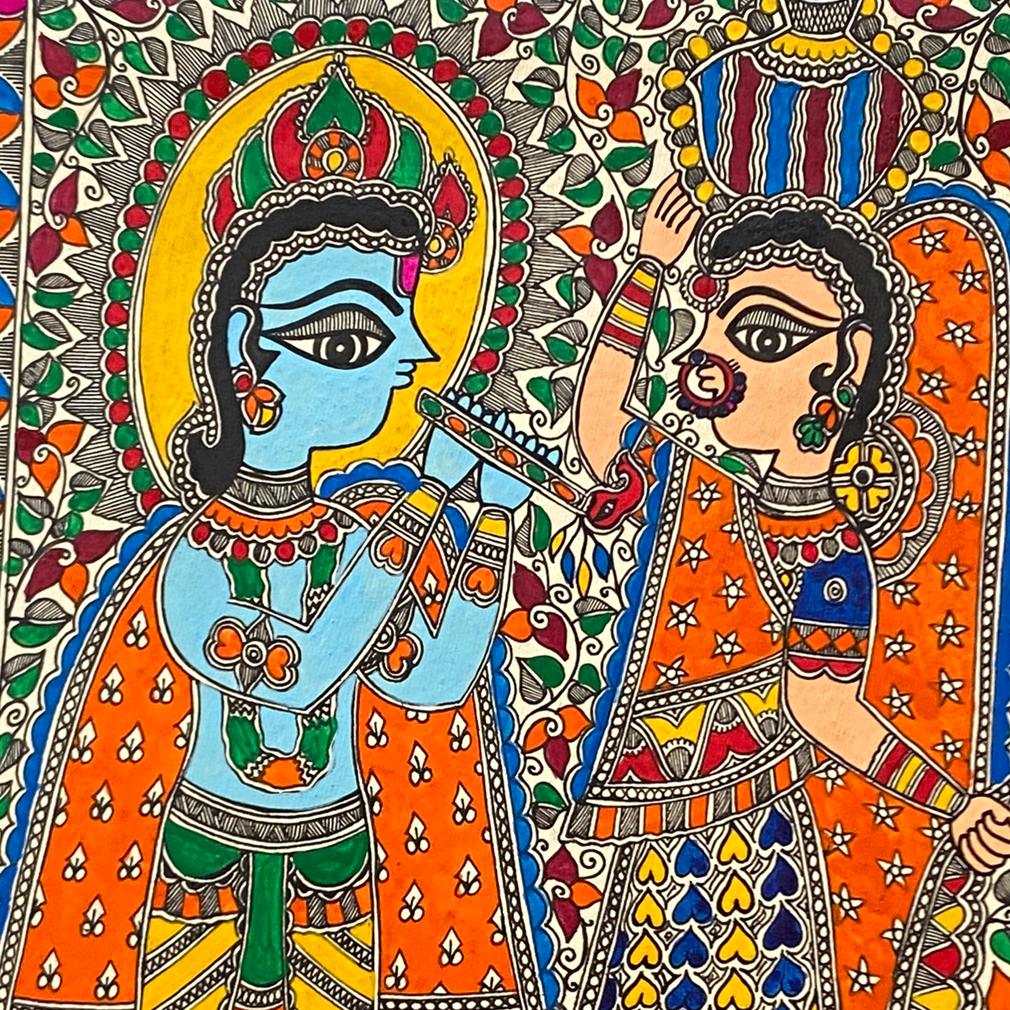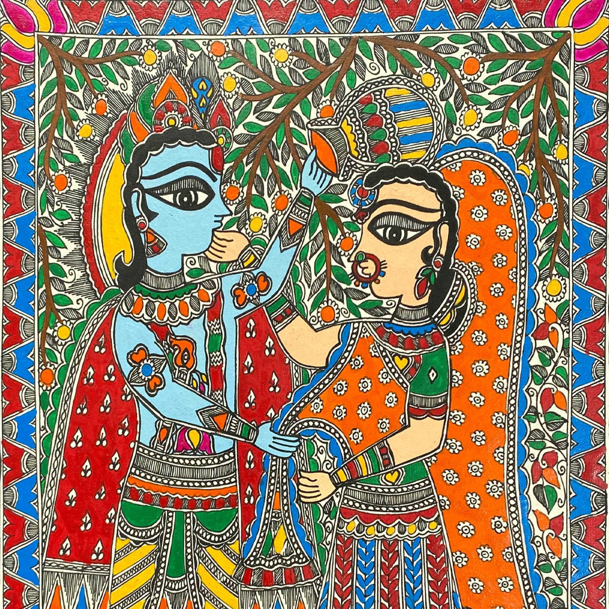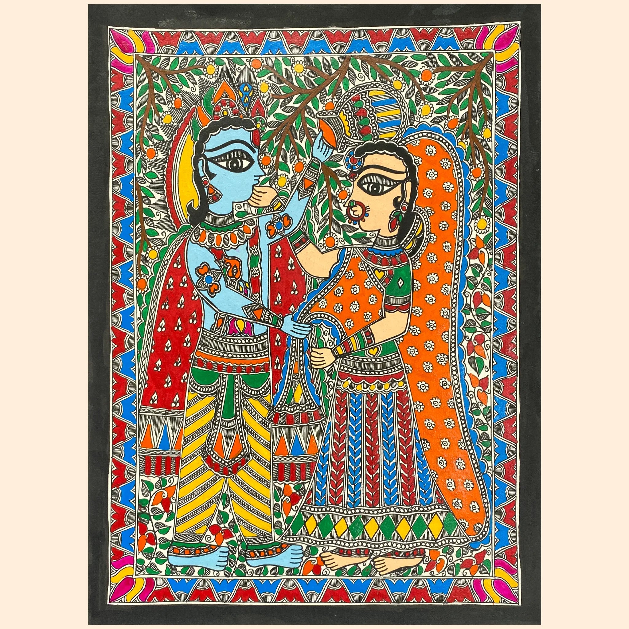 Hand Painted Madhubani Radha Krishna-Made to Order
