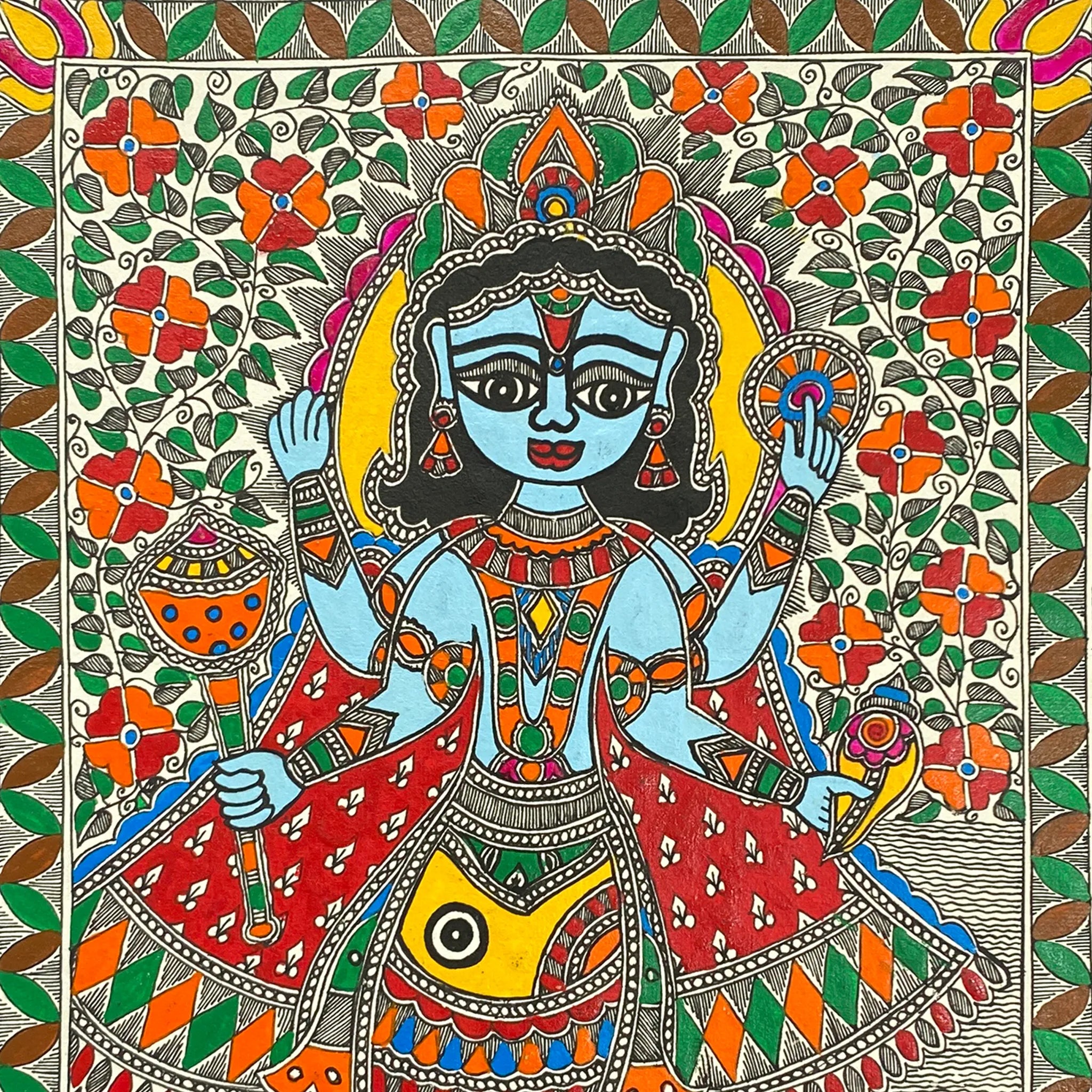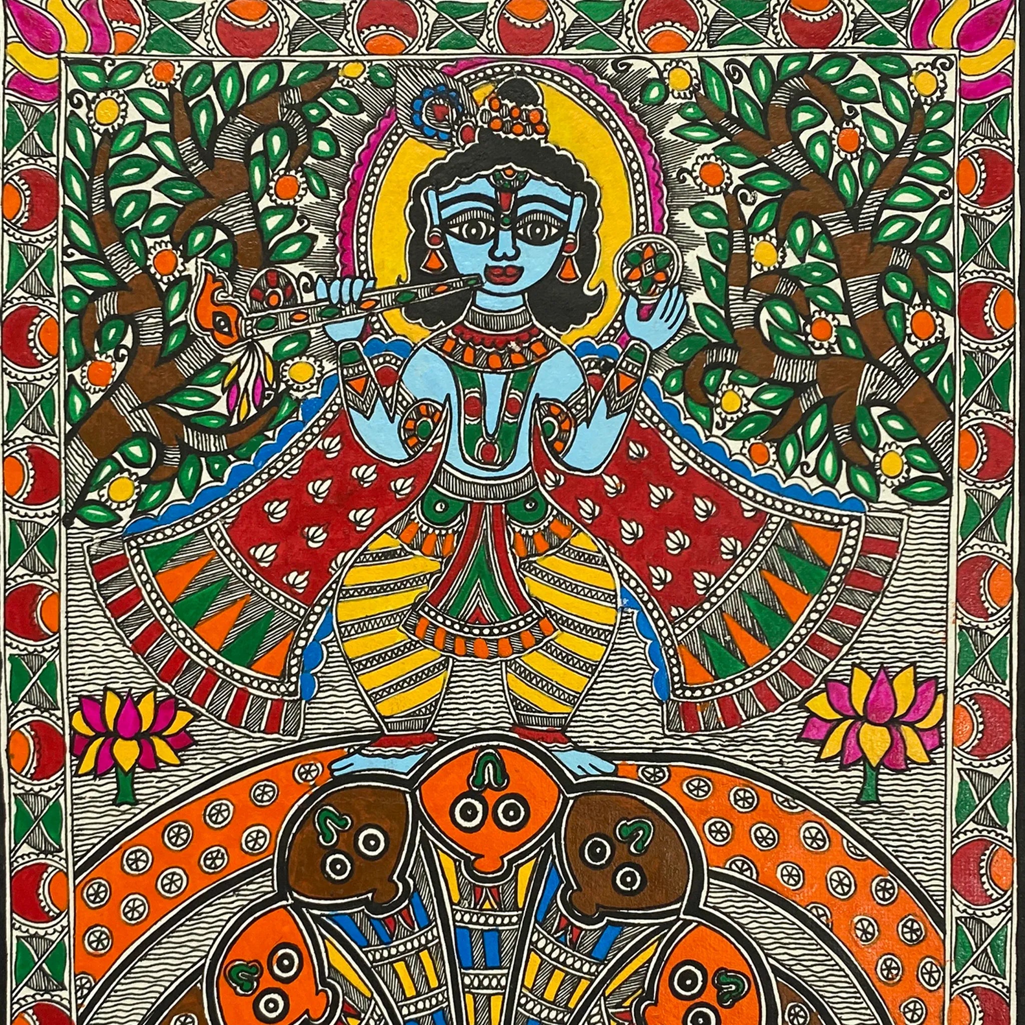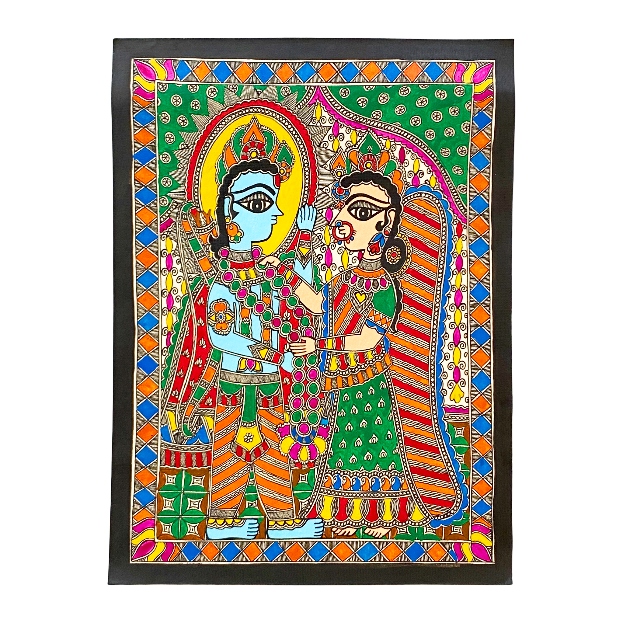 Hand Painted Madhubani Radha Krishna-Made to Order