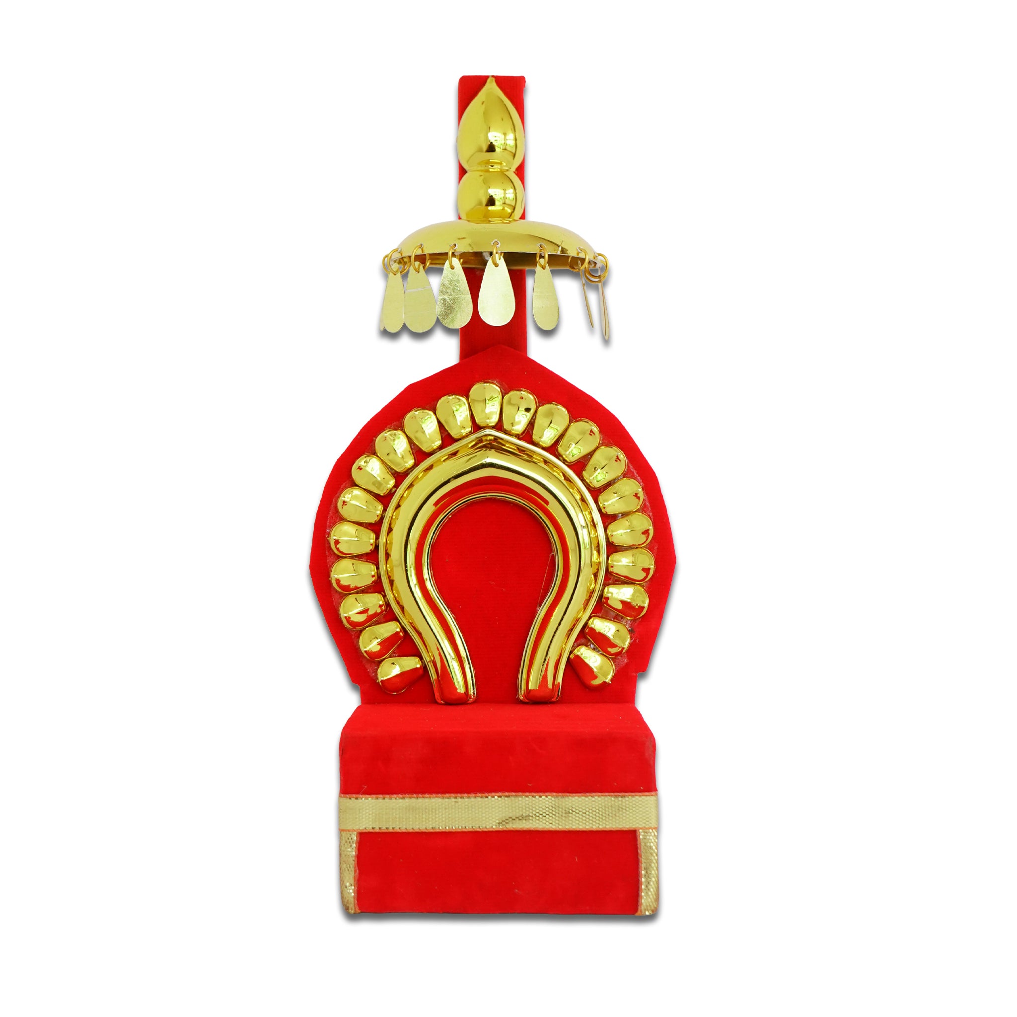 Traditional Three-Headed Wooden Pooram Elephant Stool with Nettipattam