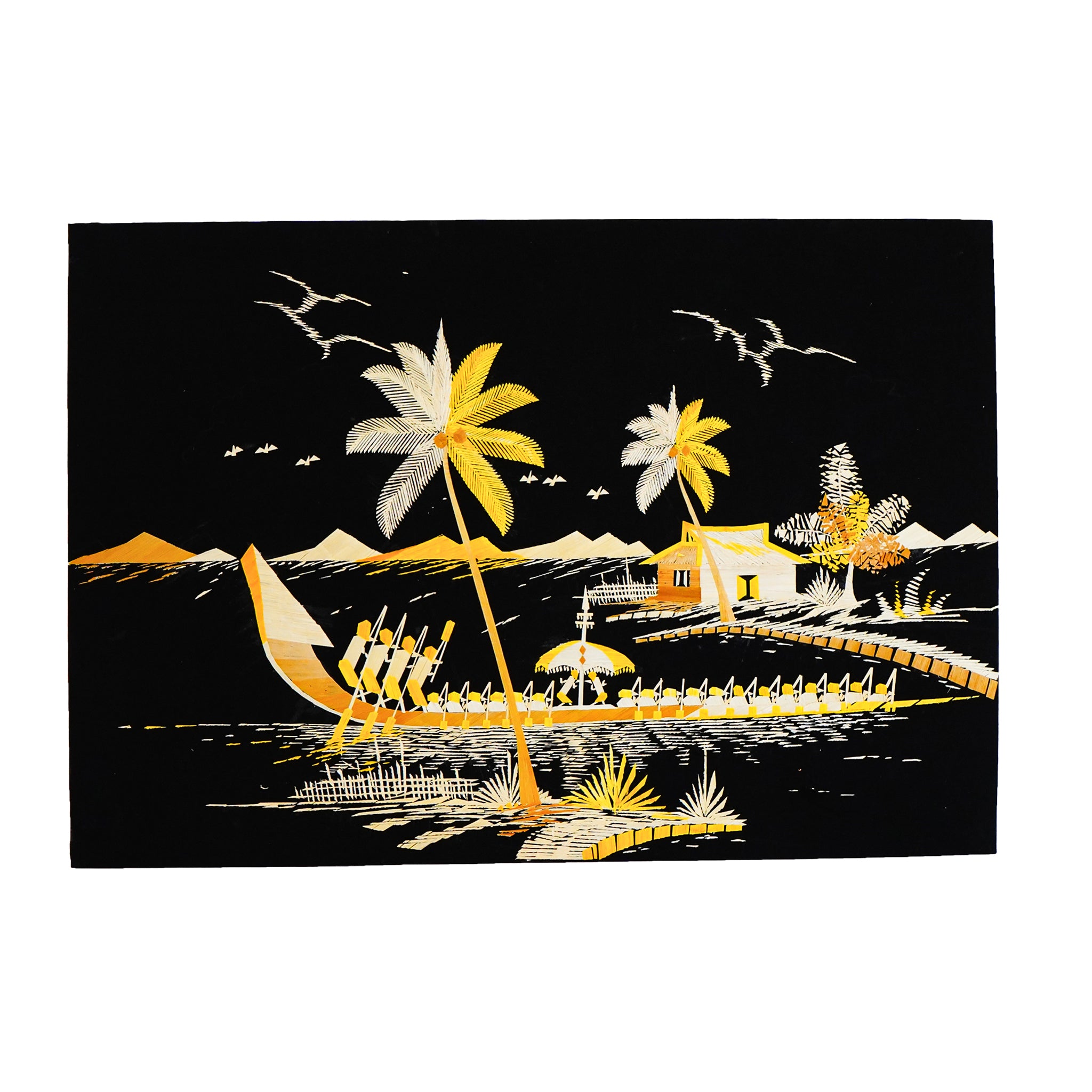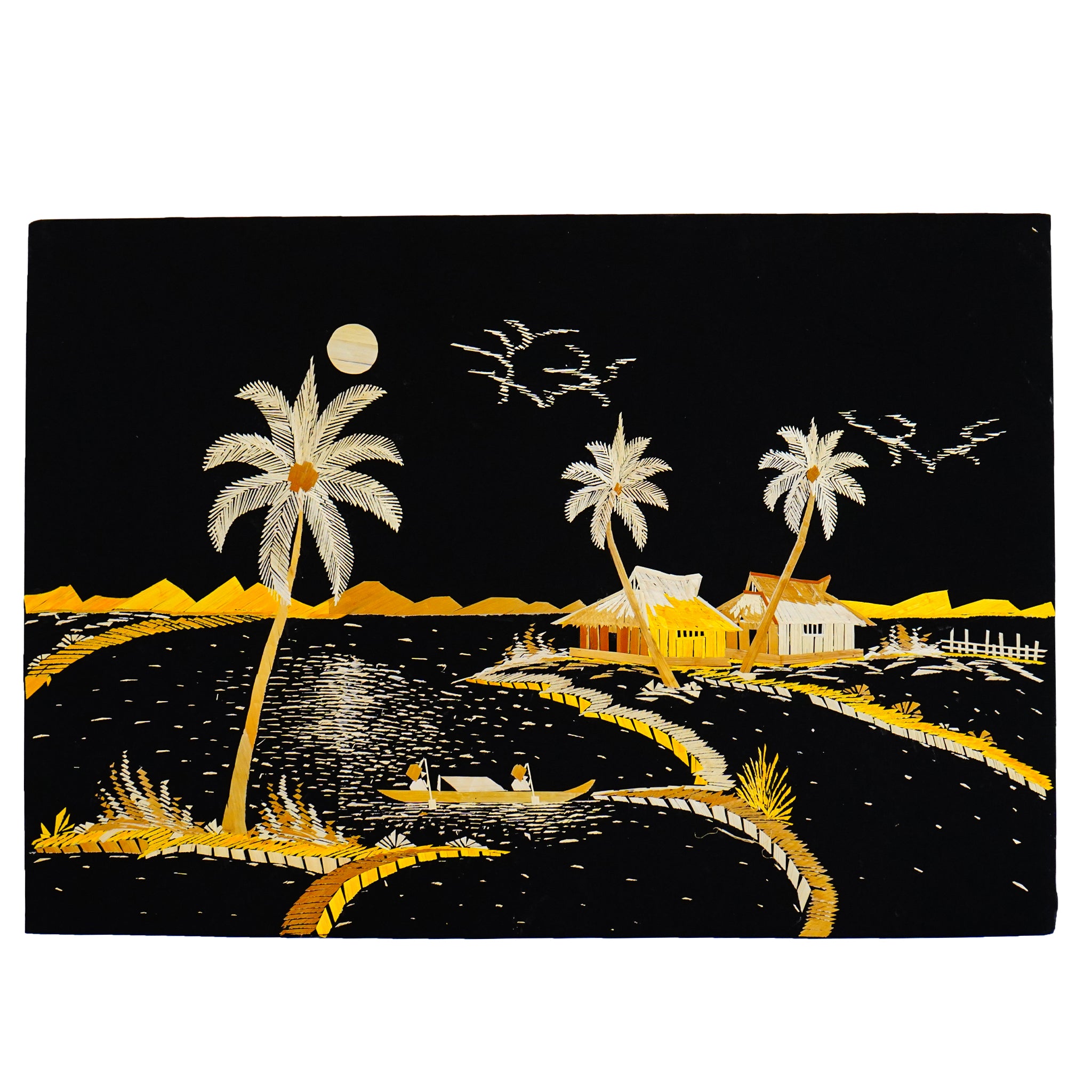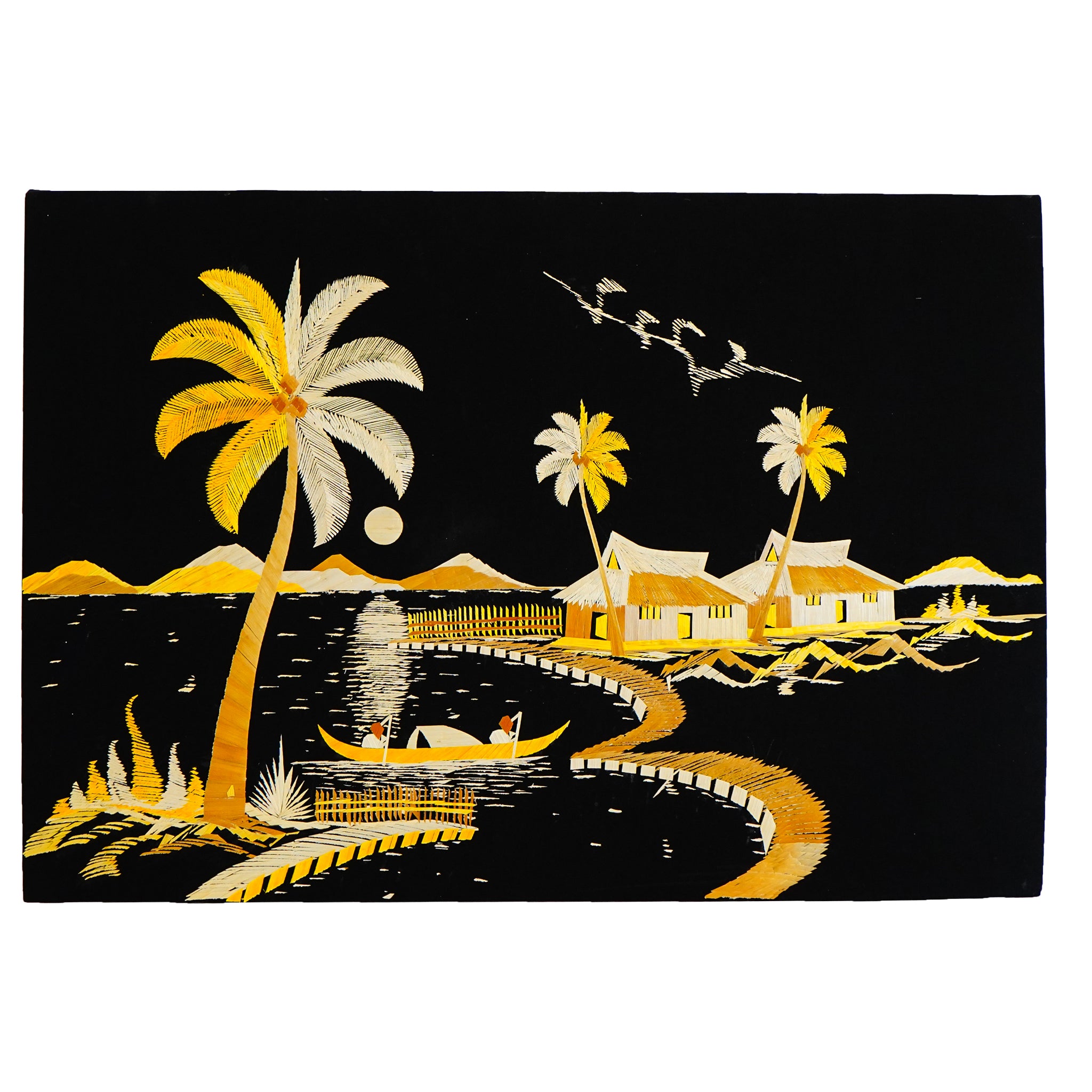 Eco-Friendly Traditional Kerala Straw Art - Village Vistas with Boat [Length - 13.5" Width - 19.5"]