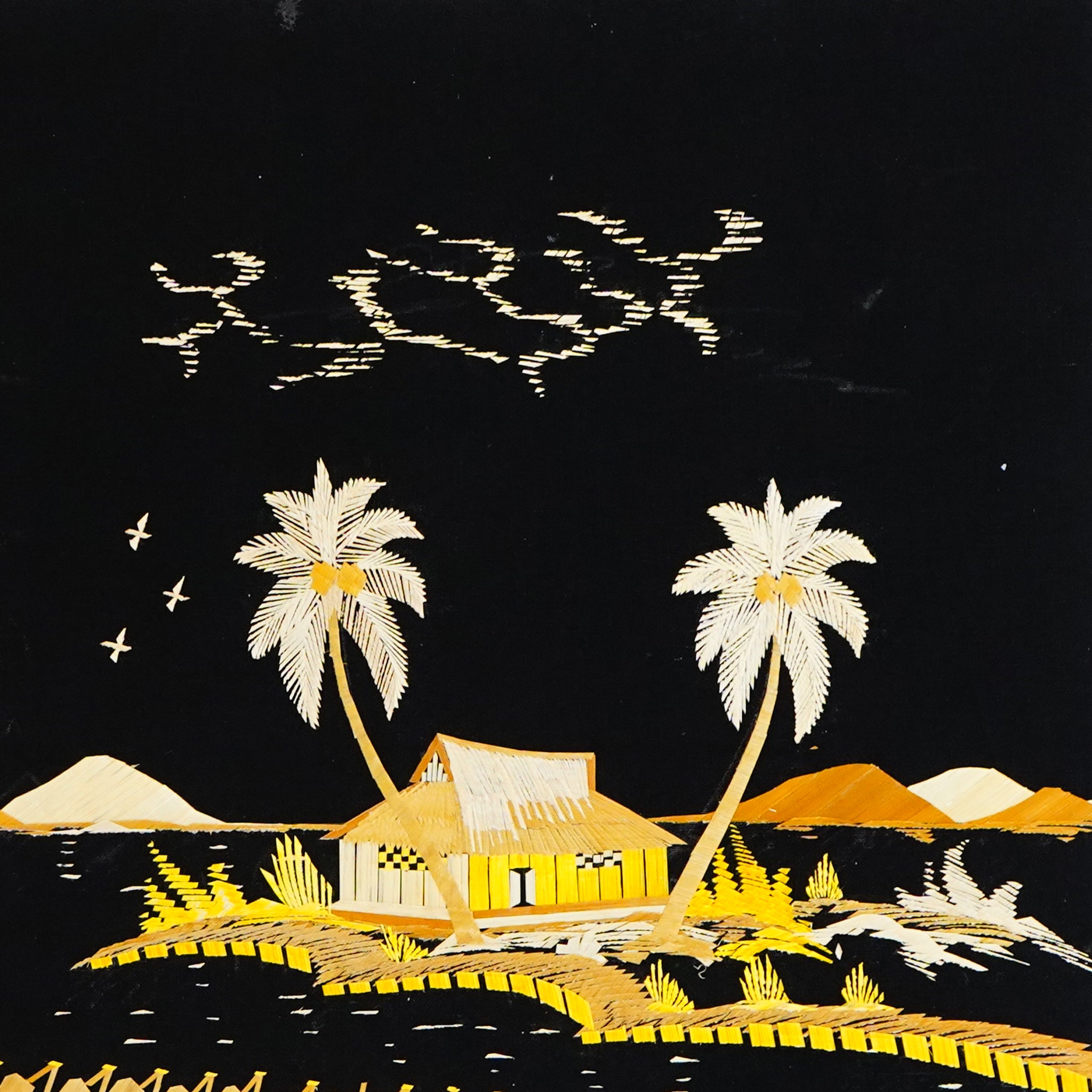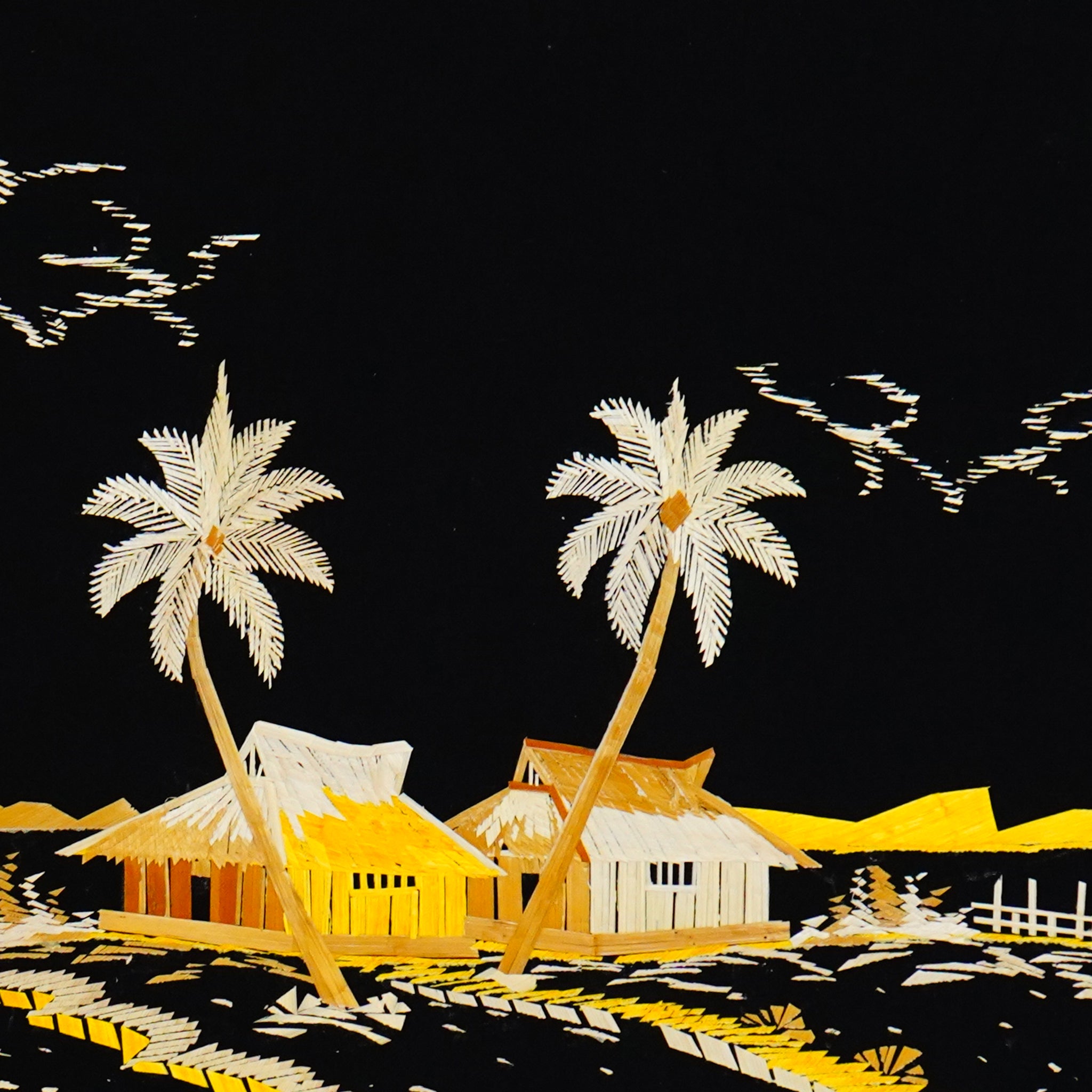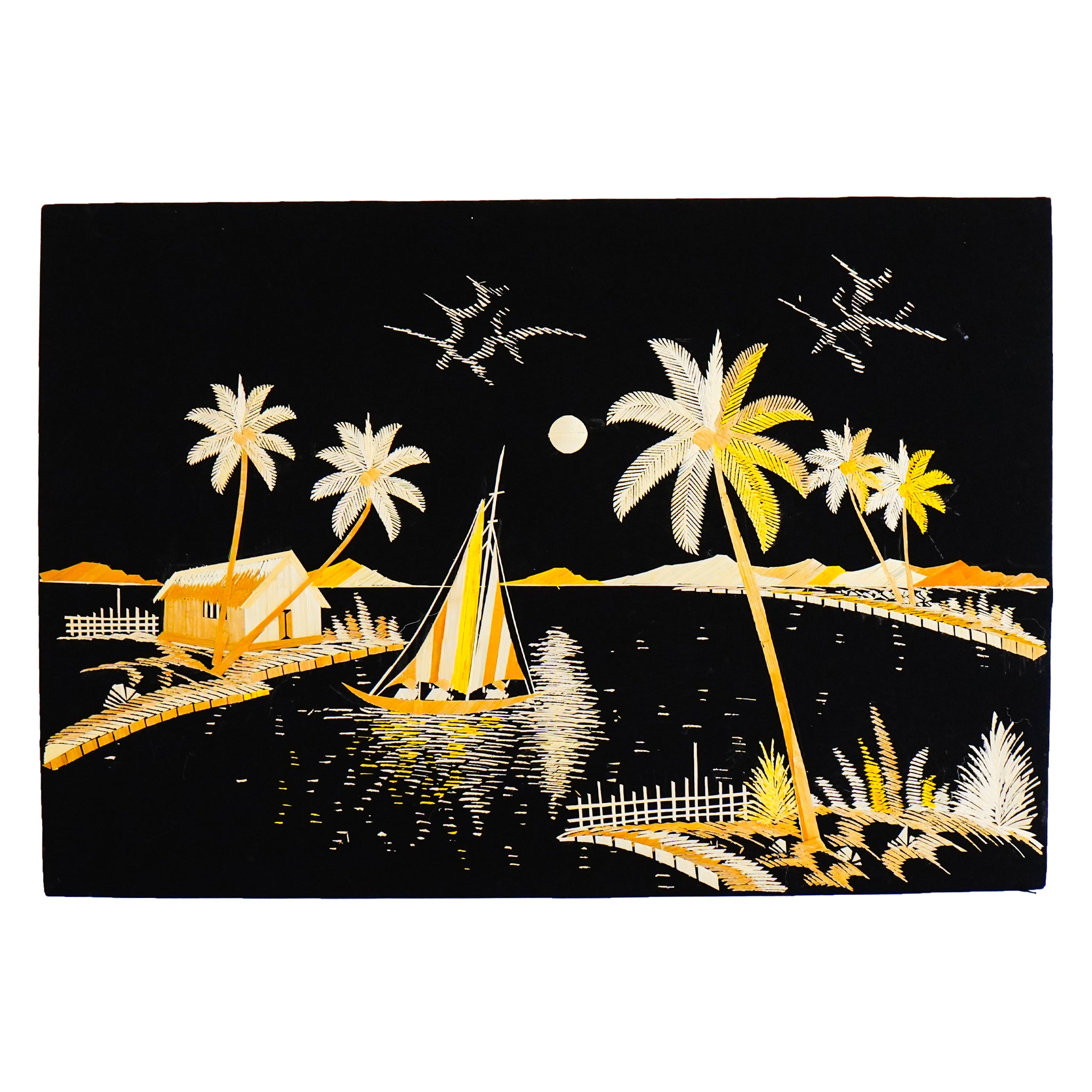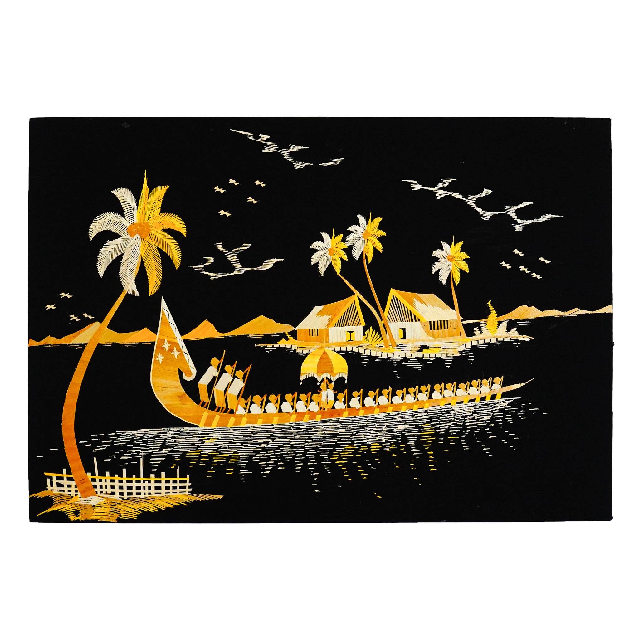 Eco-Friendly Traditional Kerala Straw Art - Village Vistas with Boat [Length - 13.5" Width - 19.5"]