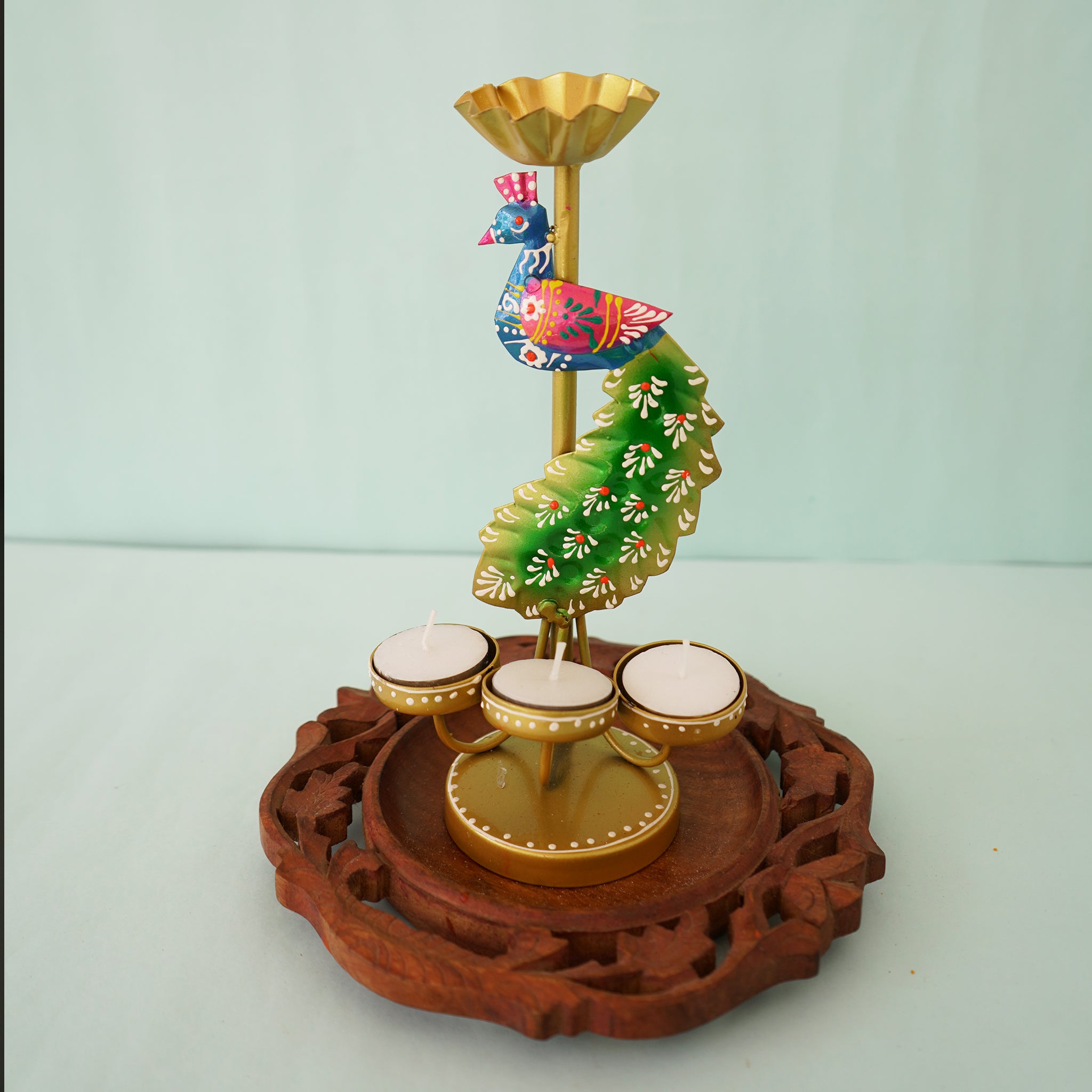 Kishangarh Marble Professional Combo Card Holder and Hand-Painted Peacock Clock