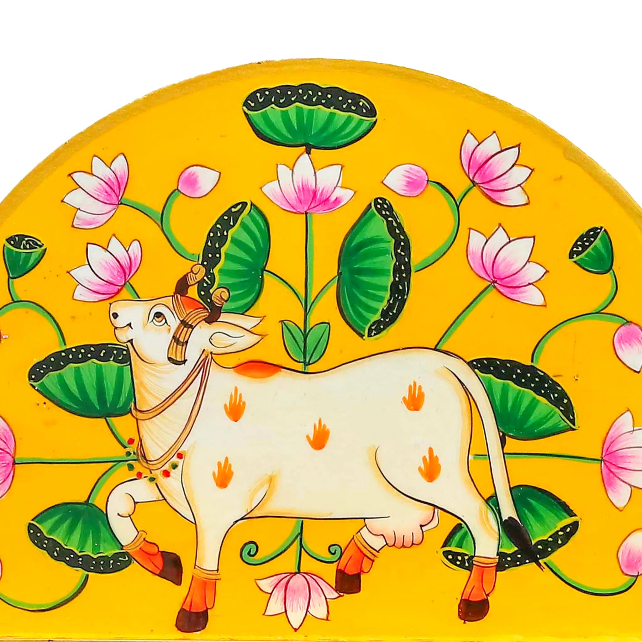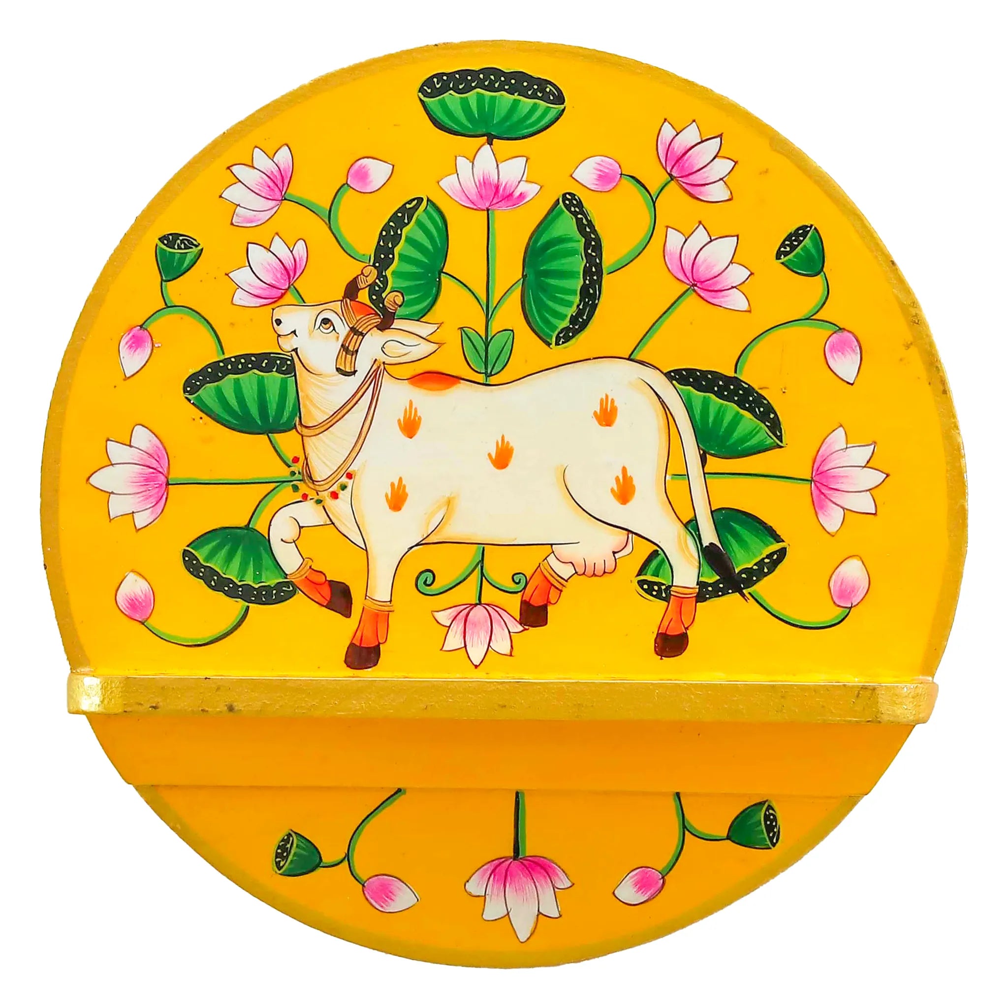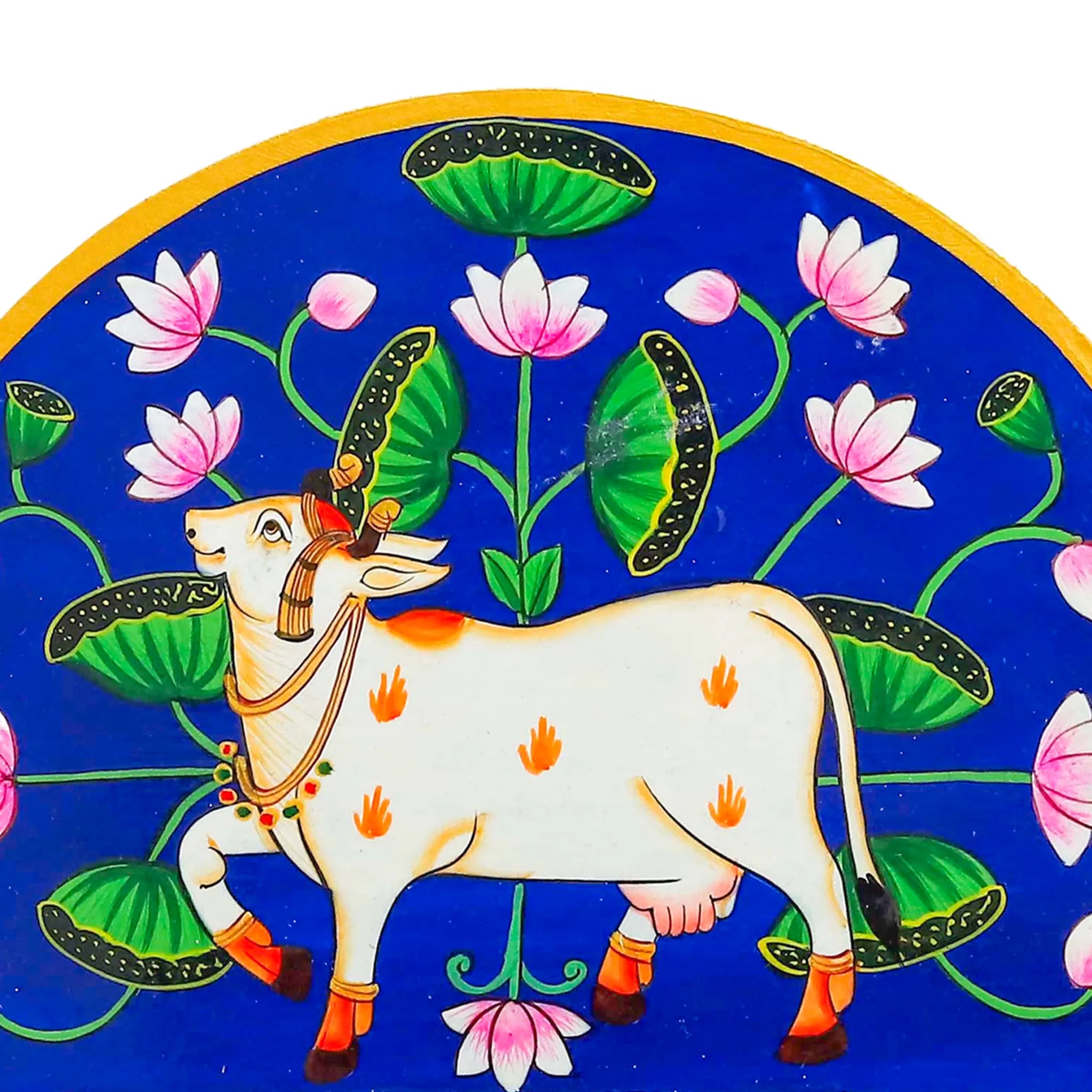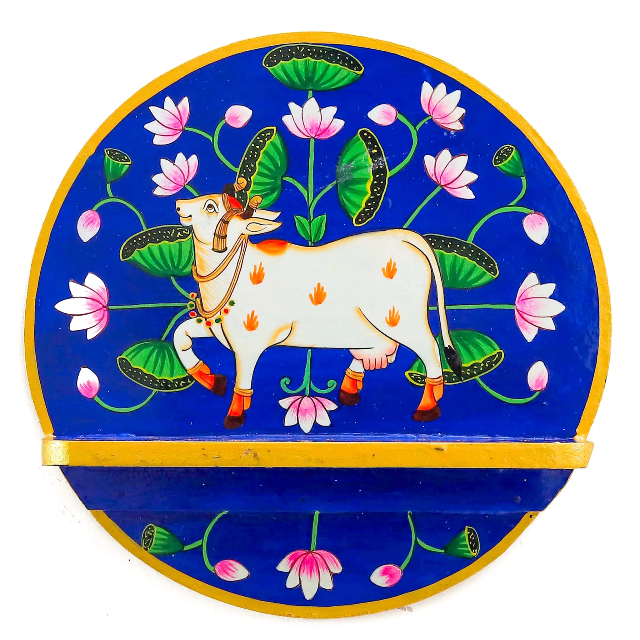 Hand Painted Blue Cow And Lotus Pichwai Wall Shelf